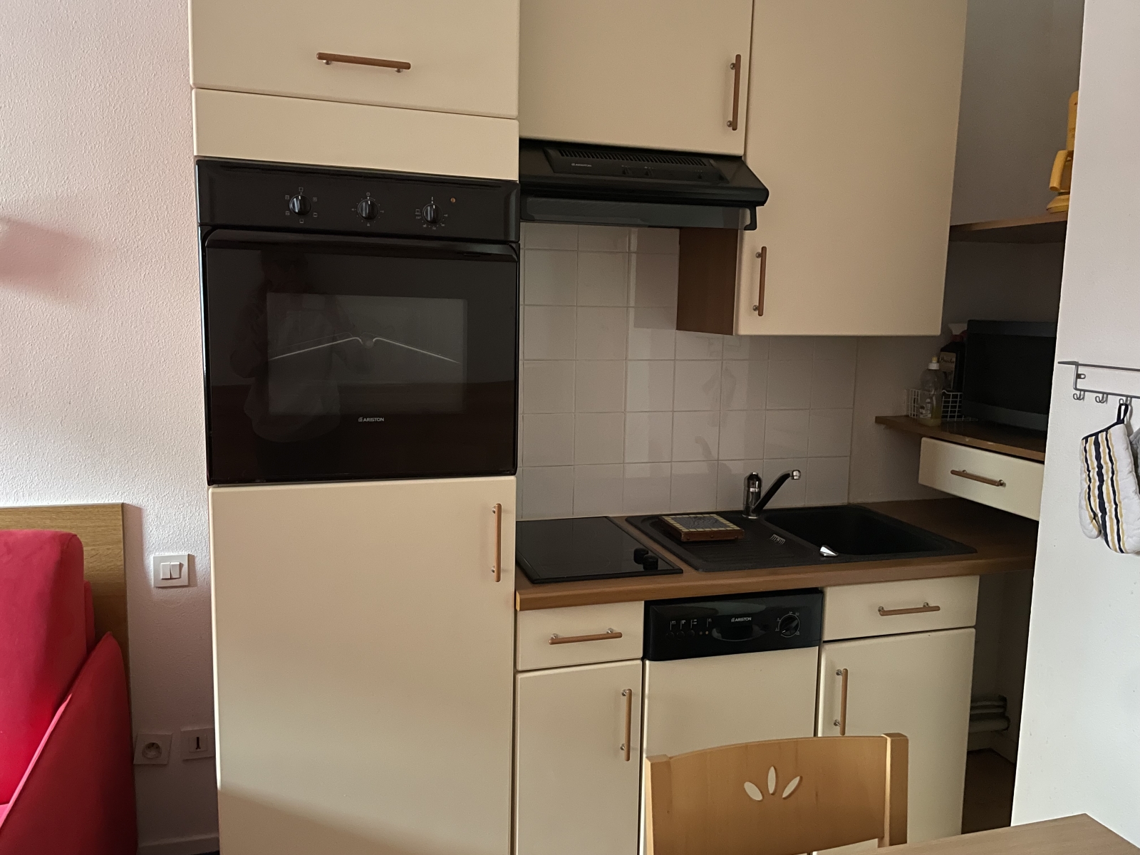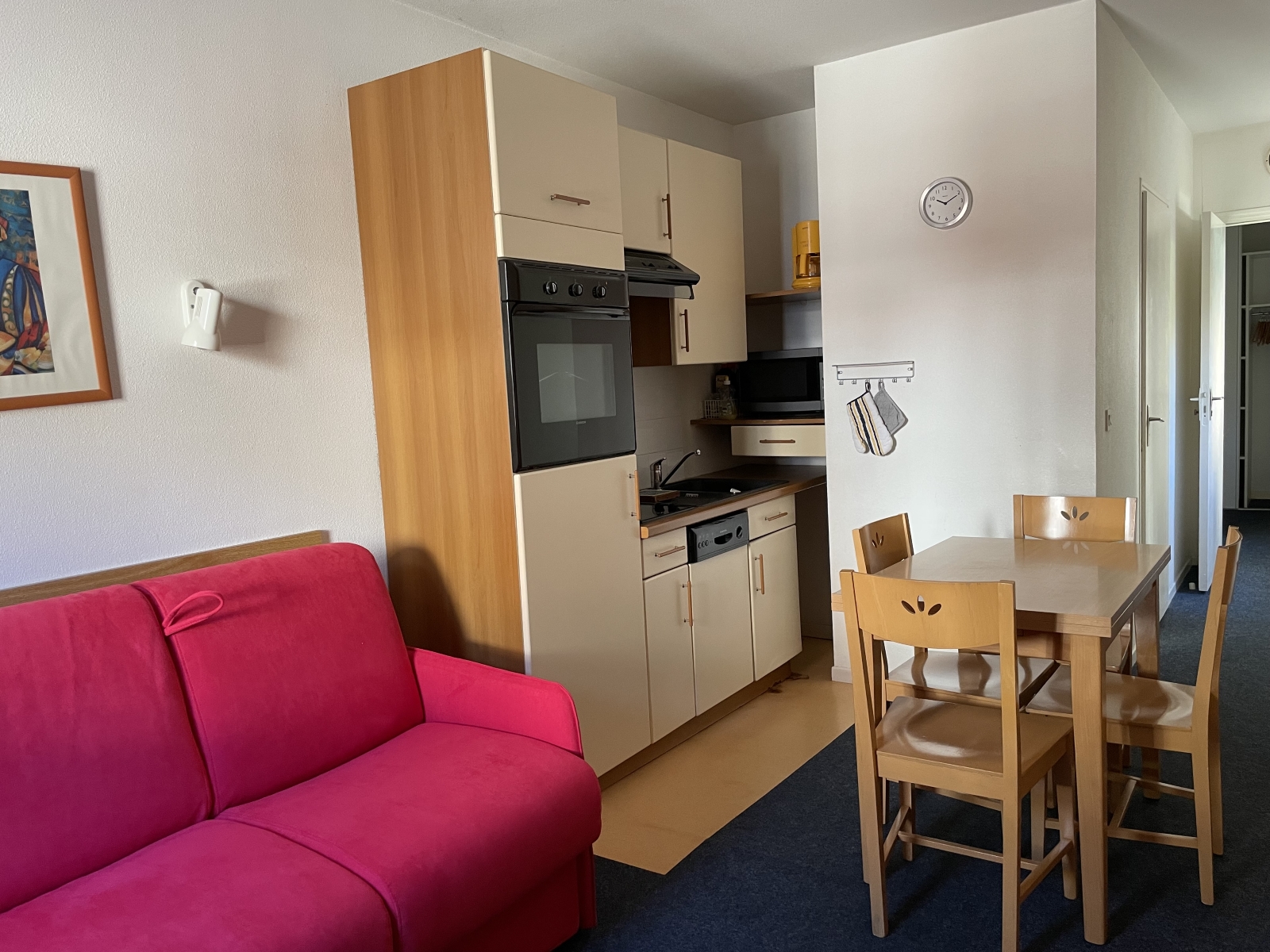 Au premier étage d'une de la résidence LE CHALET avec ascenseur, ce studio de 27m2 bénéficie d'une exposition Nord-Est. Il est équipé d'un lave-vaisselle, d'un réfrigérateur, de 2 plaques de cuisson vitro céramique, d'un four, d'un micro-ondes et d'une cafetière, d'un grille pain, d'une bouilloire pour votre confort.