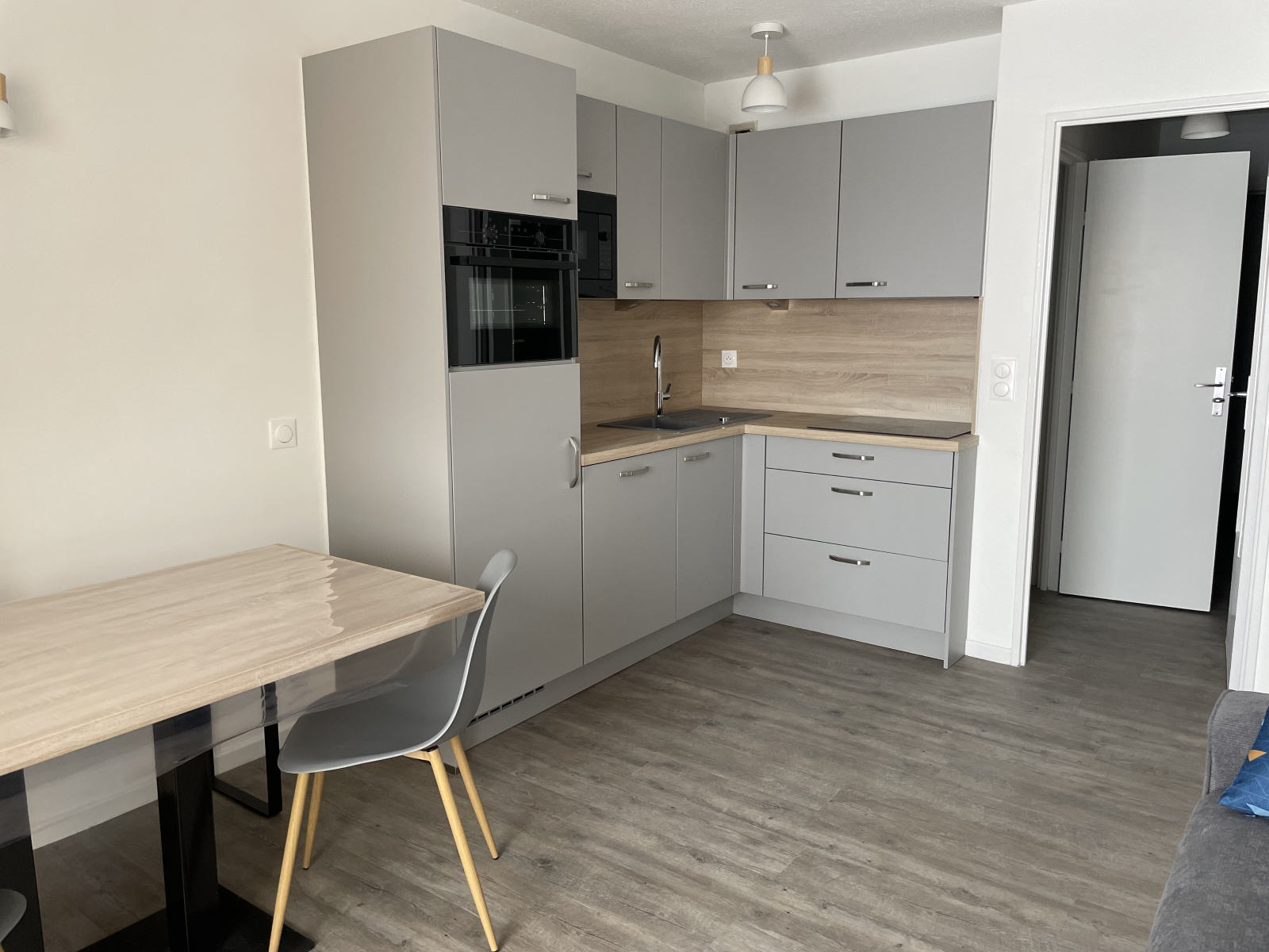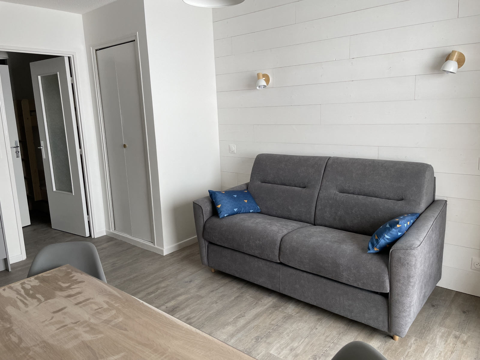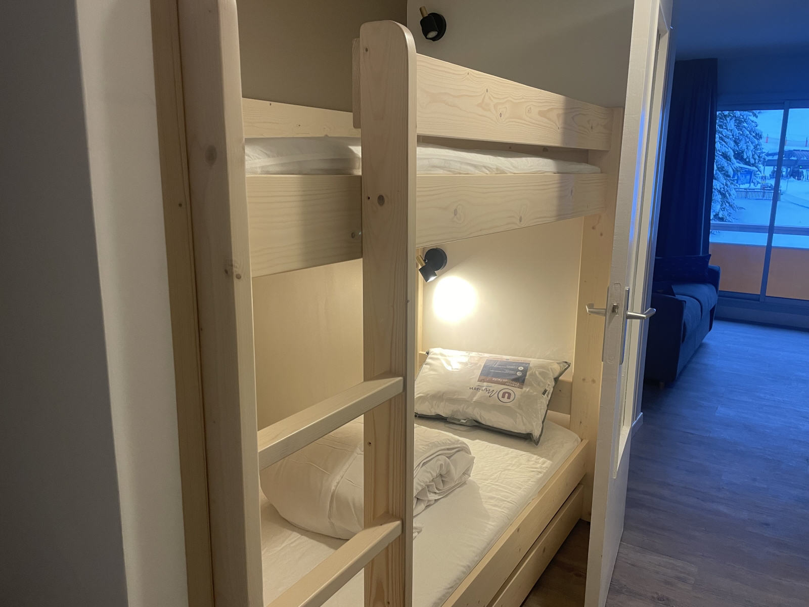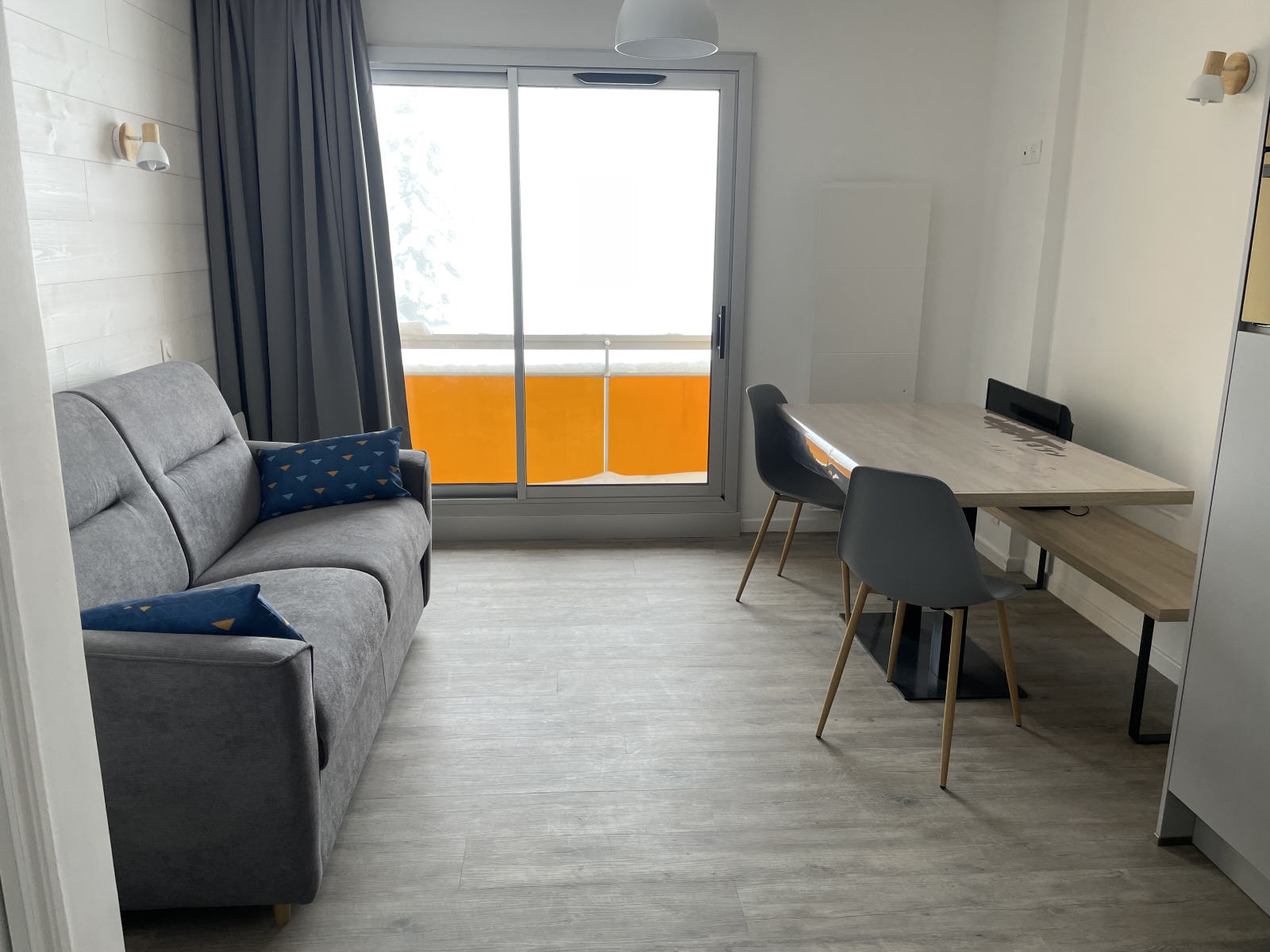 Studio confort équipé et meublé pour 4 pers, 4°étage, vue pistes, 26m² , balcon expo Sud-est, chauffage élec. Entrée alcôve 2 lits sup, sdb lavabo, douche. WC indépendants. Séjour canapé lit 2 pl, TV. Coin cuisine: plaque vitro 4 feux, four, Mo., frigo, LV, cafetière électrique, grille pain, robot. NON FUMEUR. Draps fournis.