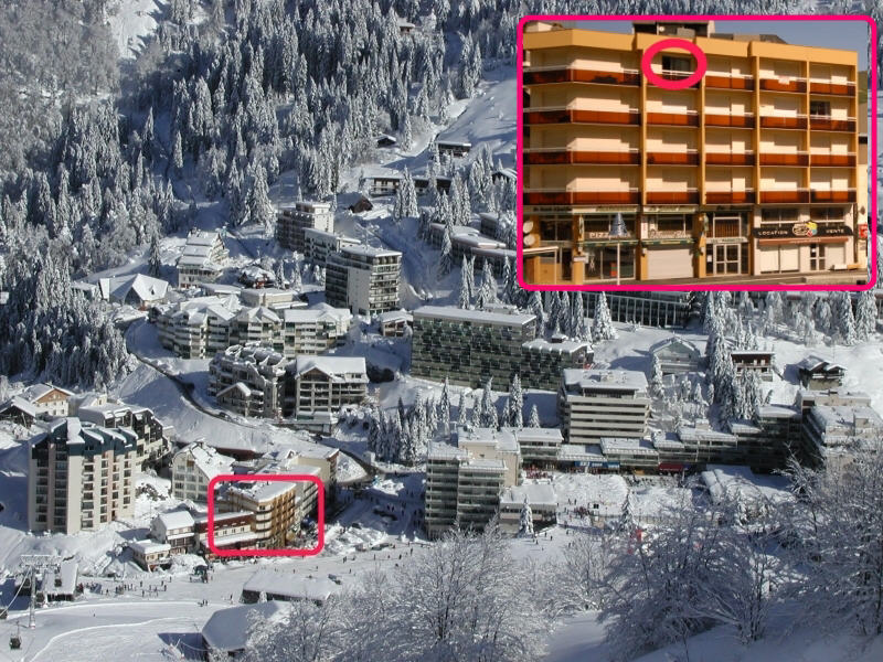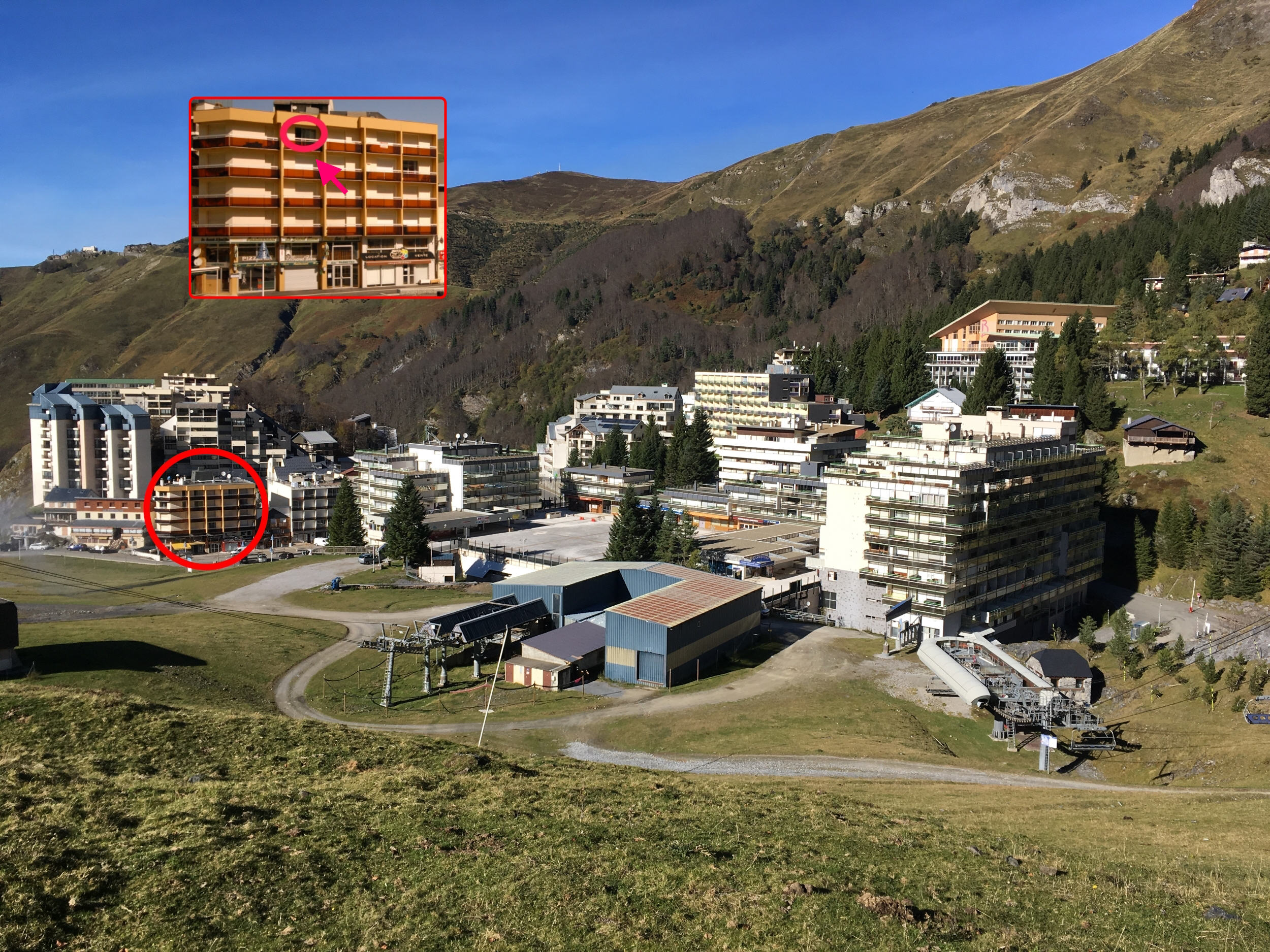 Rés Les Marmottes n°17 sur le plan station, à 30m des pistes, place Sarrière, ascenseur. Commerces à 150m.