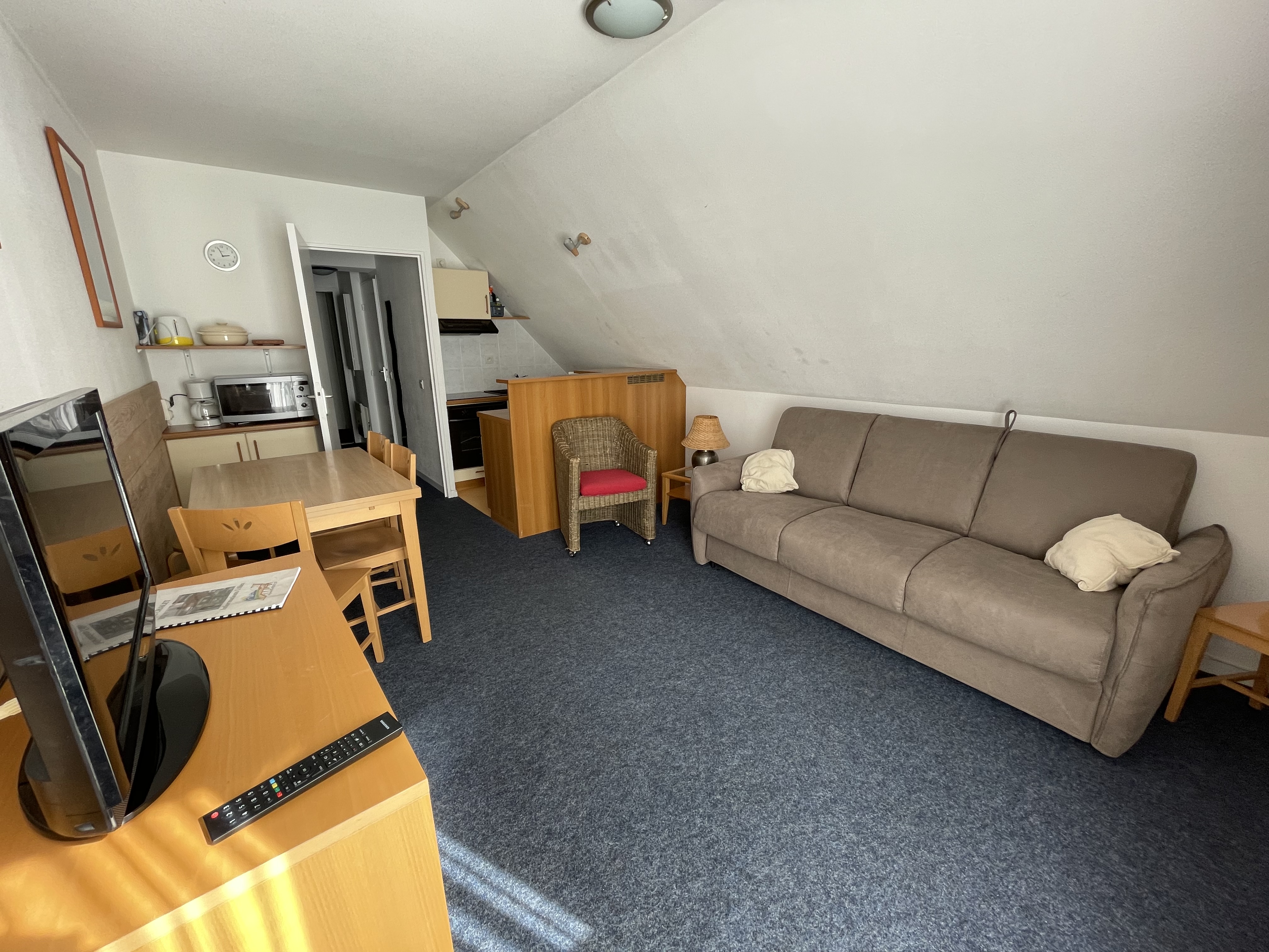 Studio mansardé équipé et meublé pour 4 pers, 3°étage, vue pistes, 27m² , expo Sud-Ouest, placard à ski, chauffage élec.