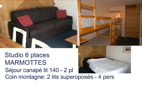 Studio confort équipé et meublé pour 6 pers, 3°étage, vue pistes, 29m², expo S.E., placard à ski, chauffage élec. Entrée coin montagne 4 lits sup., sdb lavabo, baignoire. WC indépendants. Séjour canapé lit 2 pl, TV. Cuisine: plaque 4 feux, MO/Four, lave-vaisselle, frigo bac conservateur, cafetière électrique, grille pain. NON FUMEUR. DRAPS FOURNIS.