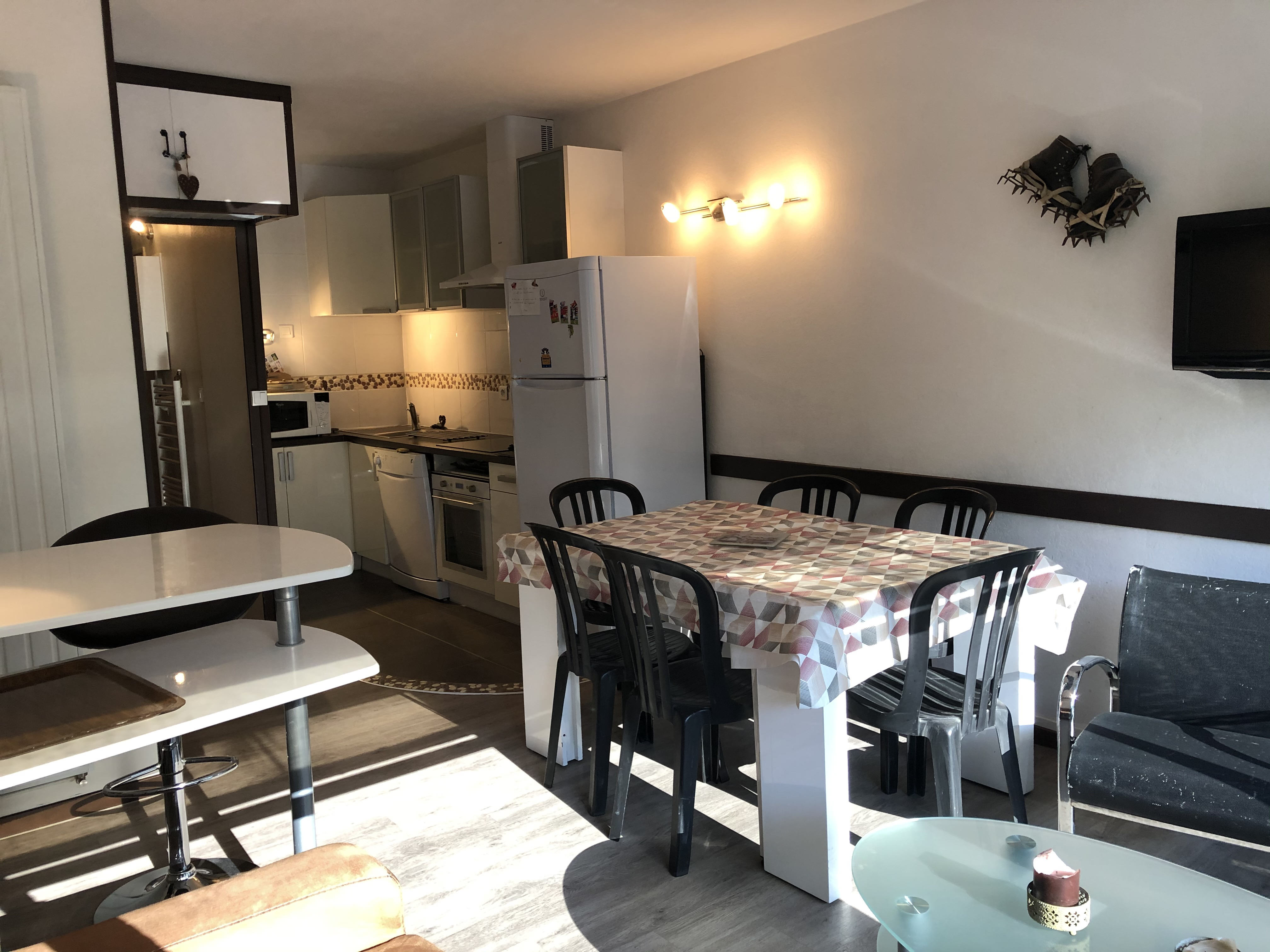 Studio équipé et meublé pour 6 pers, 1°étage, vue montagne, 27m² , expo est, chauffage collectif. Entrée alcôve 2*2 lits sup., sdb lavabo, douche et WC indépendants. Séjour canapé lit 2 pl, TV. cuisine: plaque vitro 4 feux, Four/MO, frigo avec bac conservateur, lave-vaisselle, cafetière électrique, grille pain. WIFI