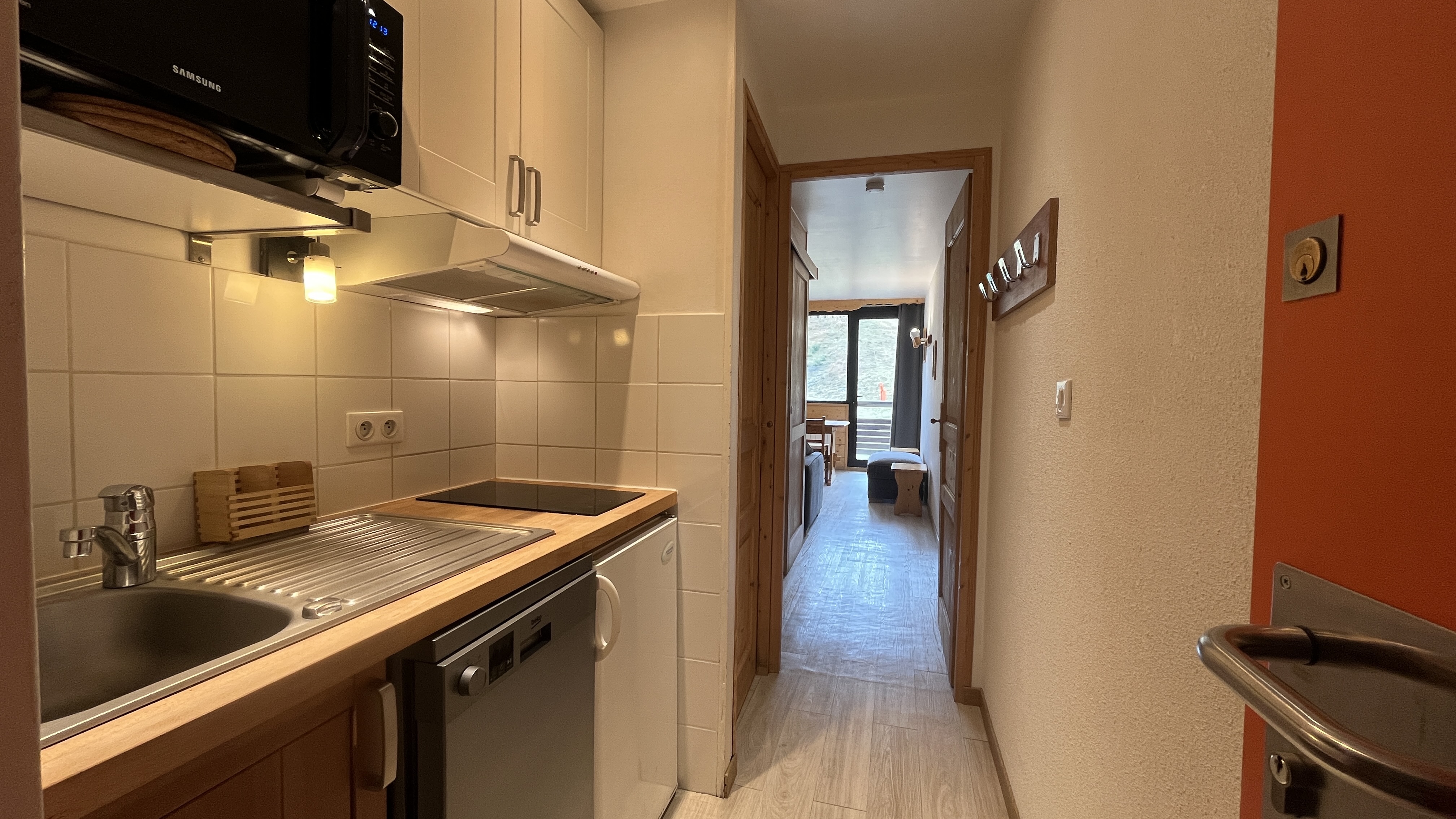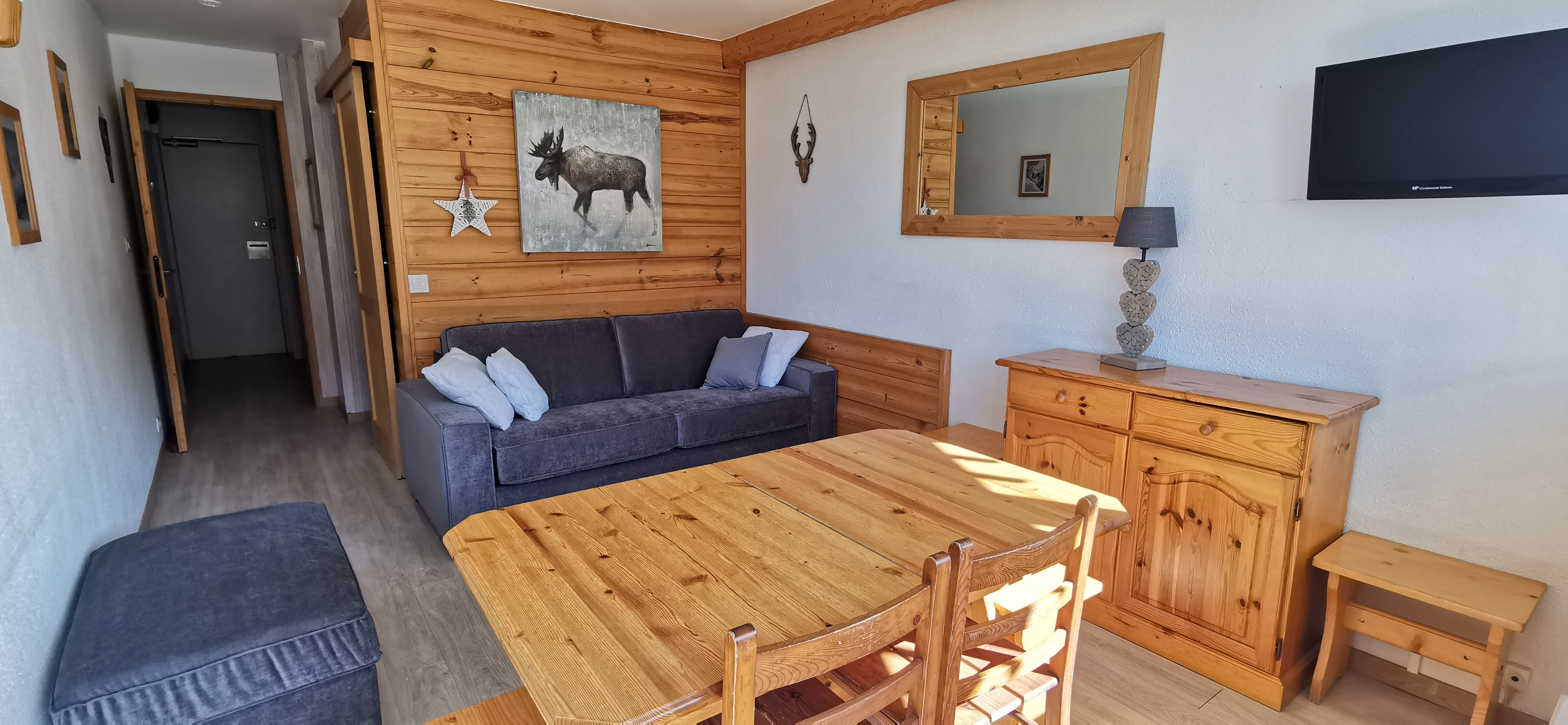 Ce très joli studio d'environ 26 m² entièrement rénové bénéficie d'un coin nuit fermé et un balcon exposé Sud/Ouest avec vue sur les pistes.