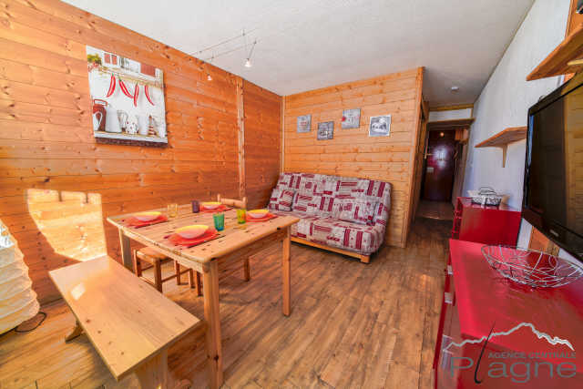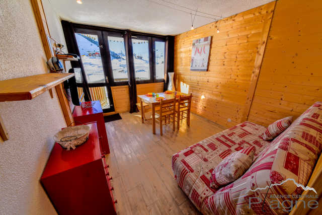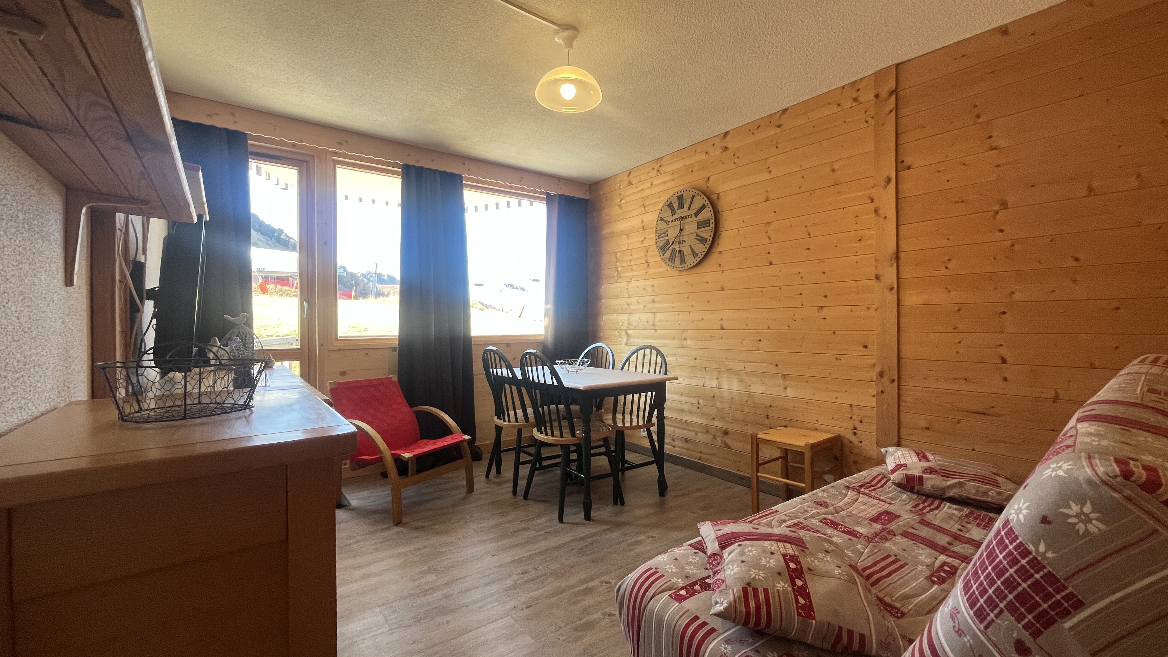 Ce très beau studio d'environ 26 m² entièrement rénové bénéficie d'un coin nuit et d'un balcon exposé Sud/Ouest avec vue sur les pistes.