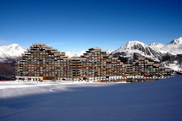 Immeuble situé au pied des pistes avec un départ direct vers 4 directions et stations différentes qui bénéficie d'une Galerie Commerciale intérieure avec tous ses commerces, loisirs et services à bord et qui est également reliée à la station de Plagne Centre par le Télémétro (6mns).