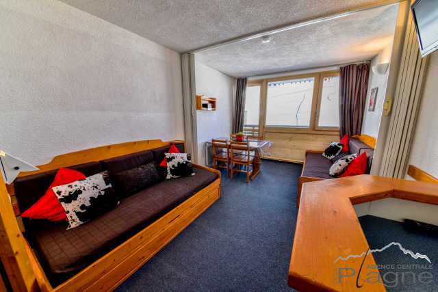 Immeuble situé au pied des pistes avec un départ direct vers 4 directions et stations différentes qui bénéficie d'une Galerie Commerciale intérieure avec tous ses commerces, loisirs et services à bord et qui est également reliée à la station de Plagne Centre par le Télémétro (6mns).
