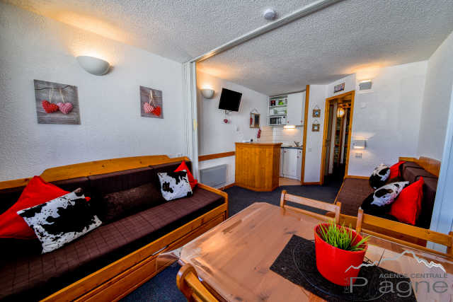 Ce joli studio d'environ 26 m² rénové bénéficie d'un balcon exposé Sud/Ouest avec vue sur les pistes.