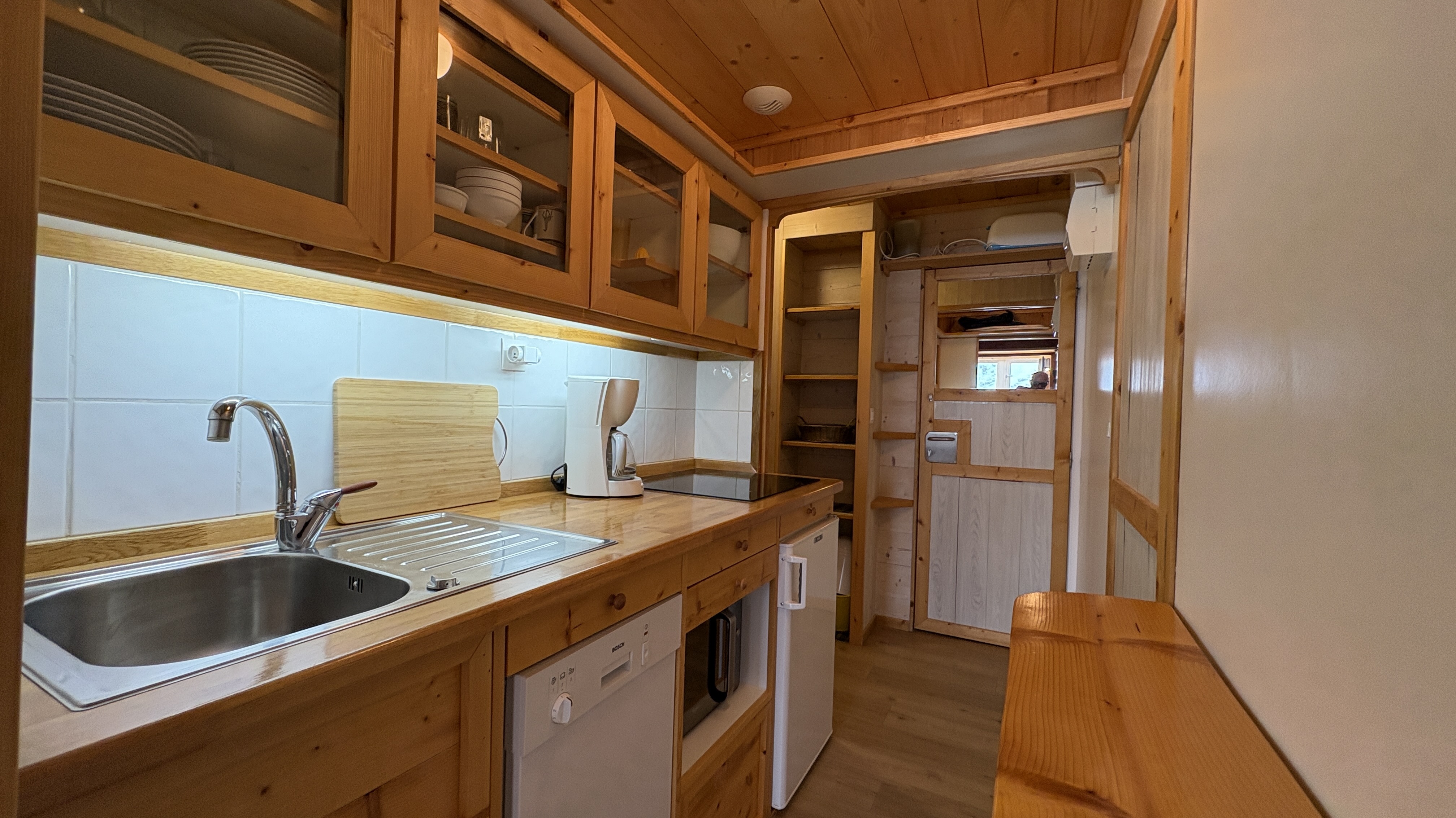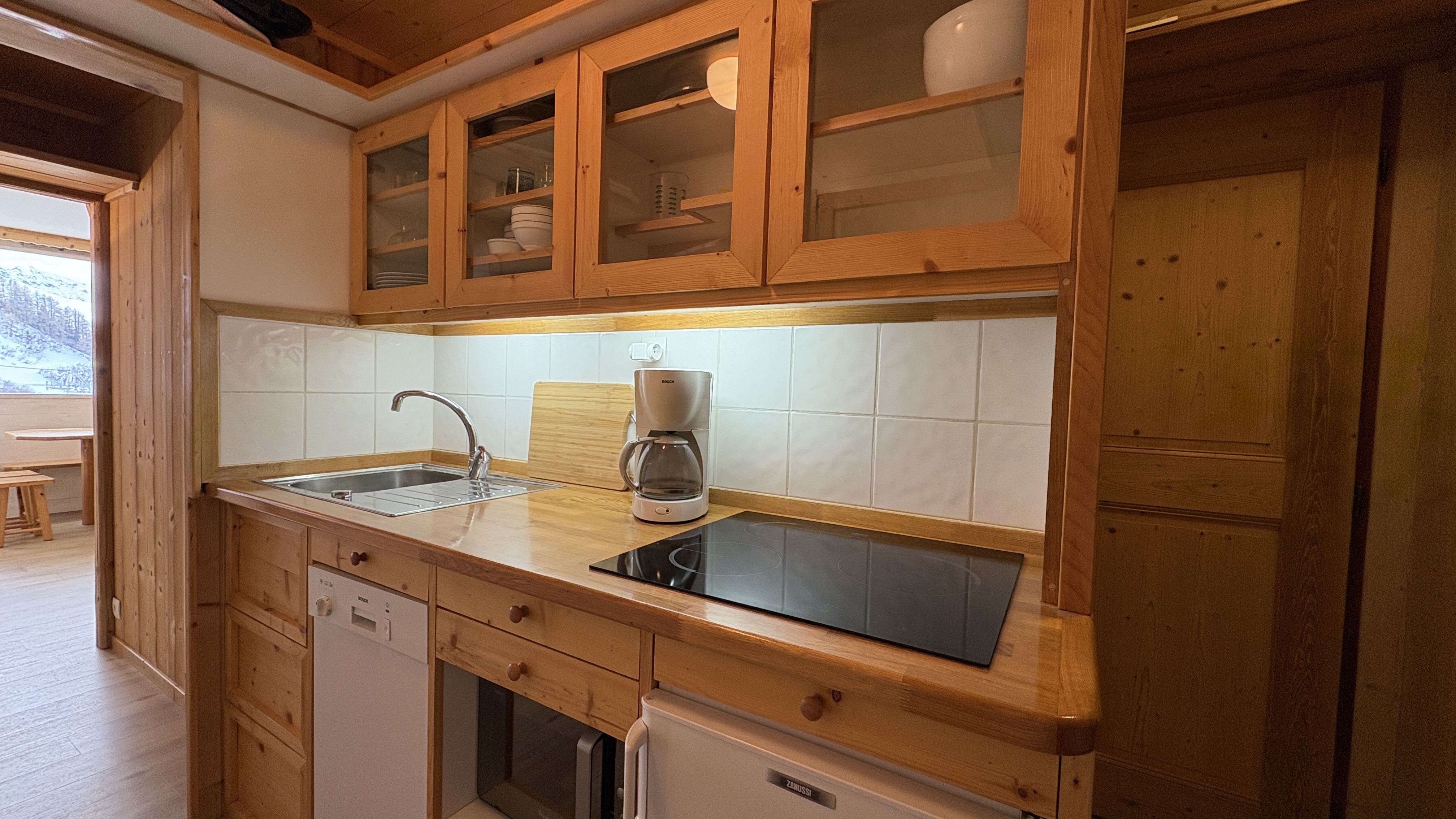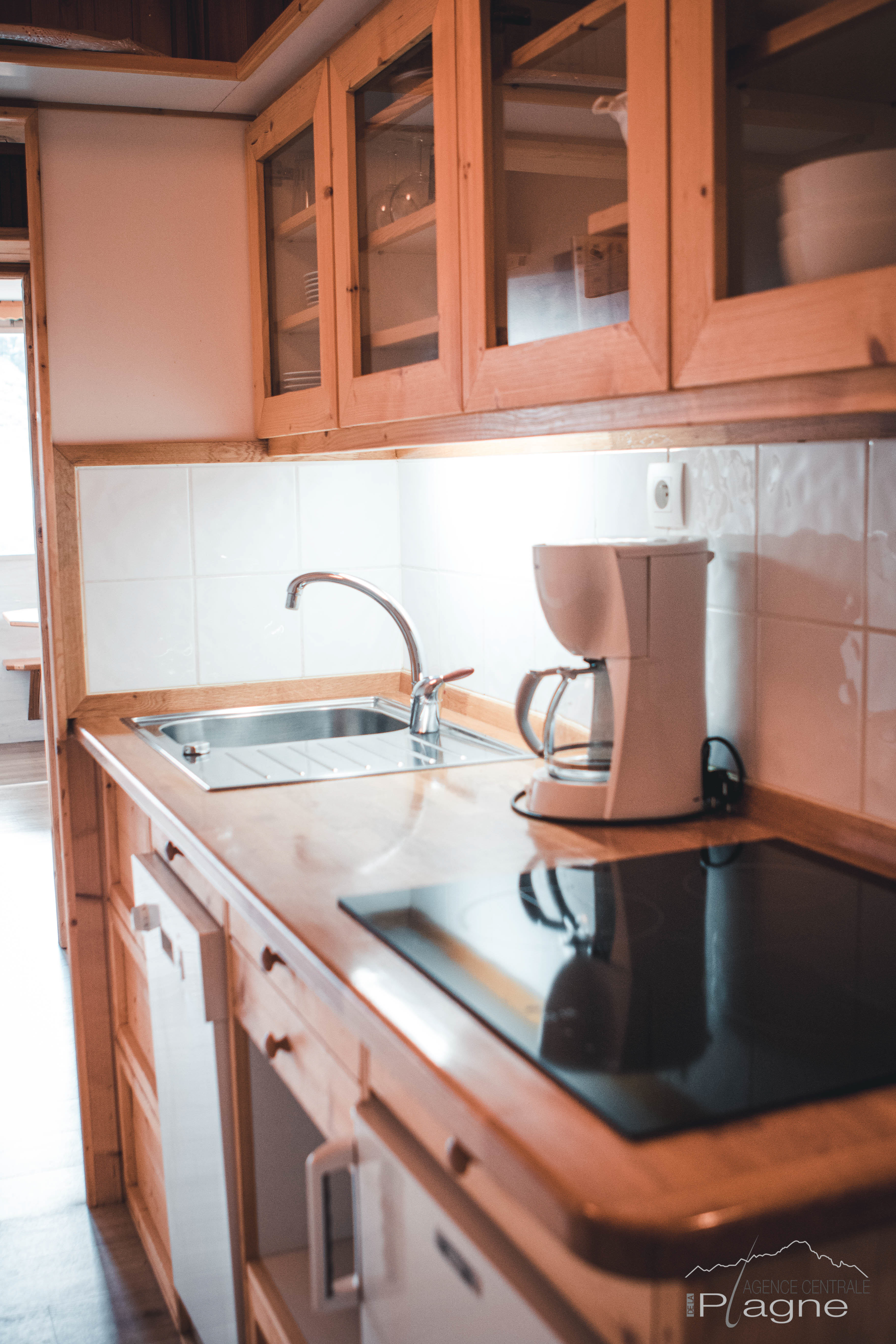 Cuisine : 3 Plaques vitro, 1 micro ondes, 1 LV, cafetière électrique