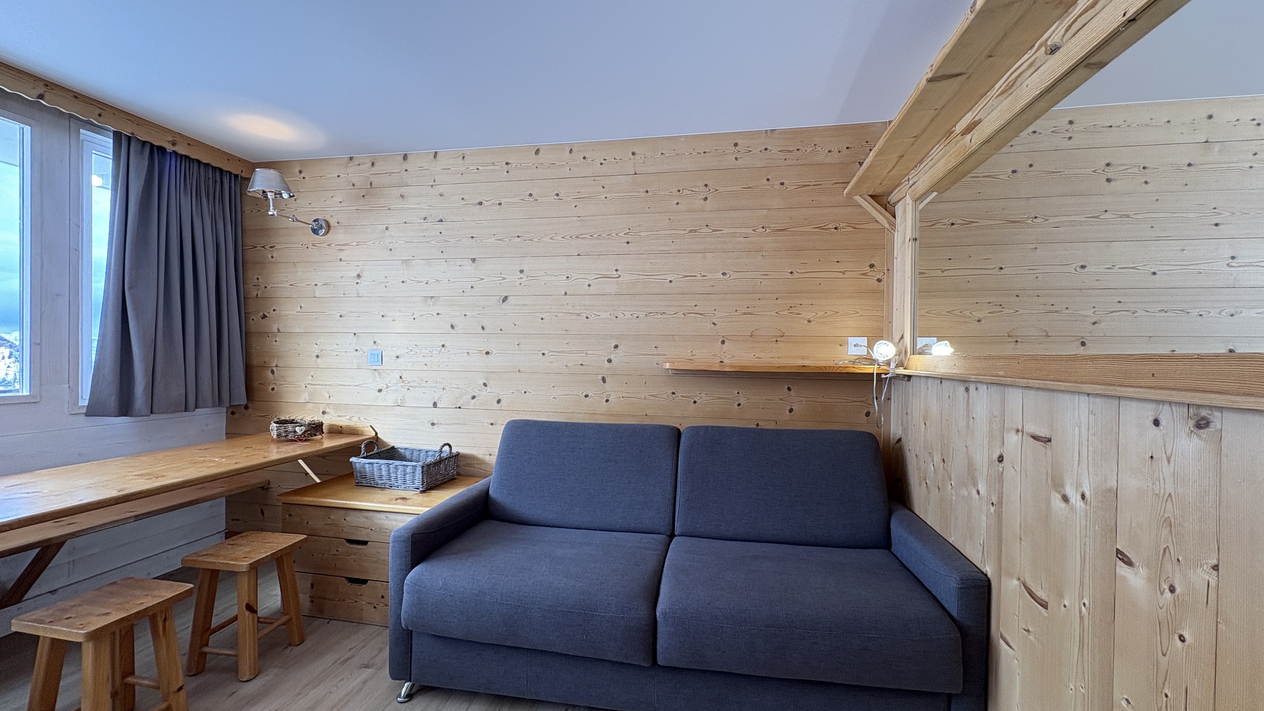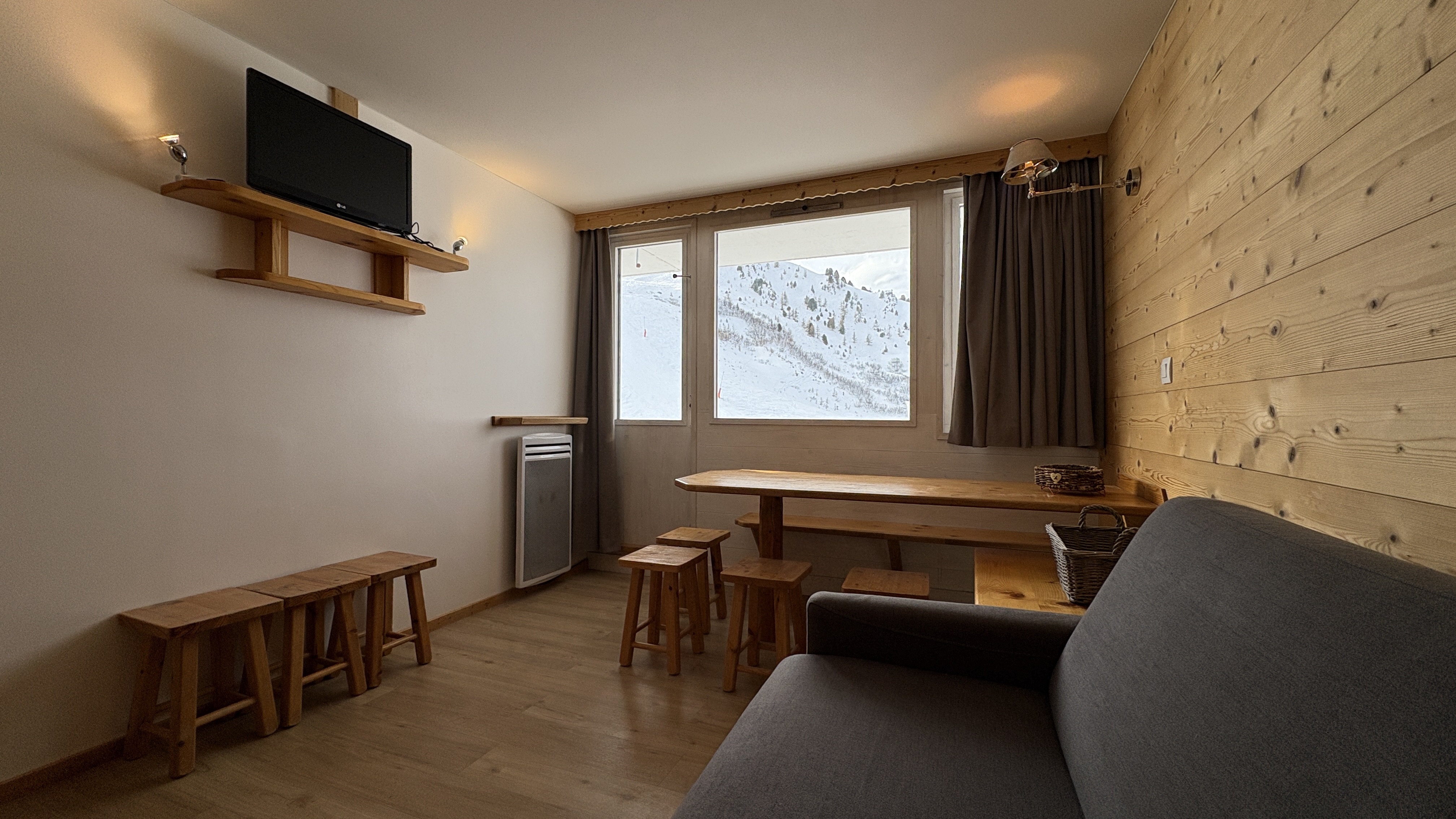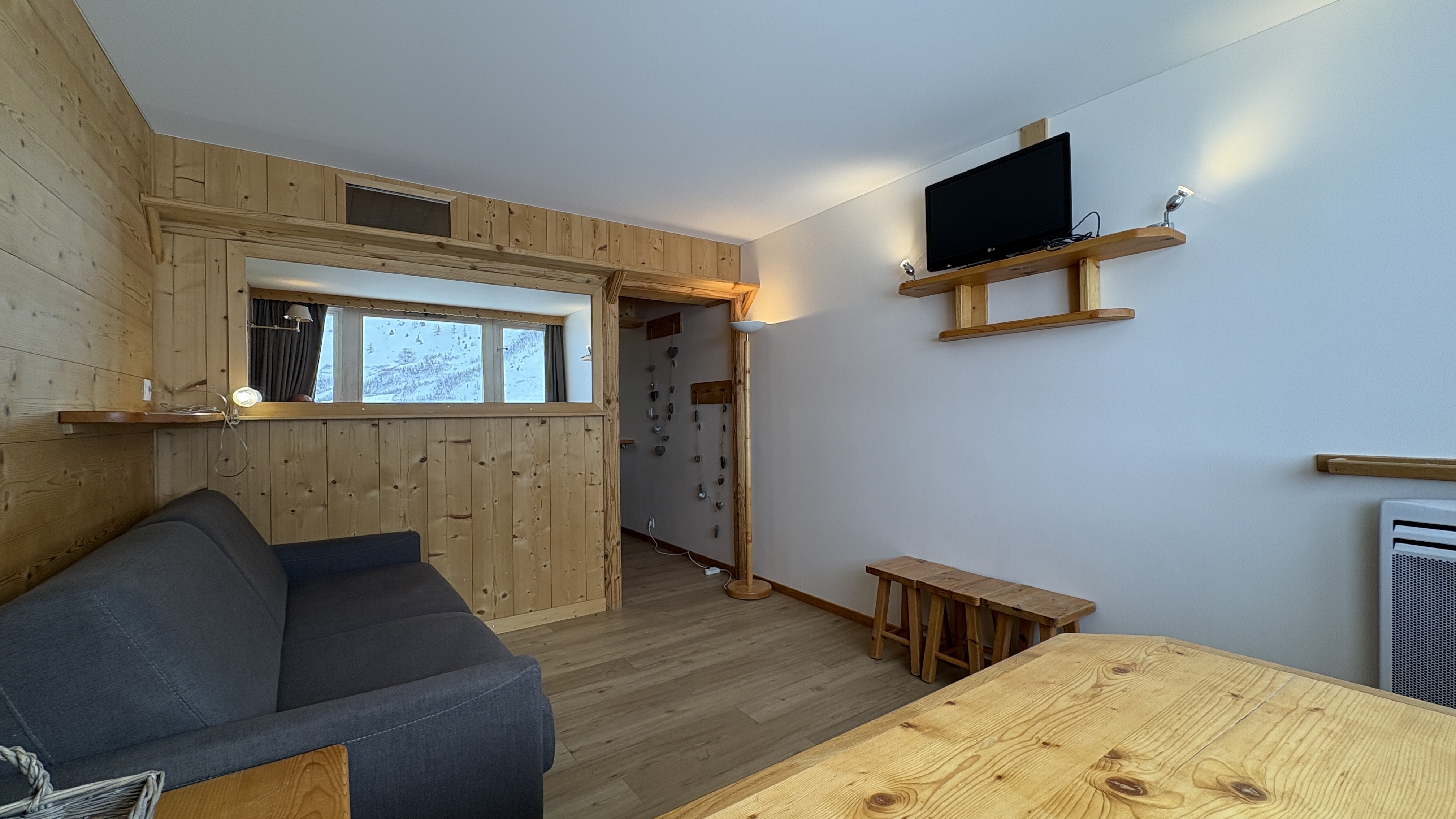 Ce très beau studio d'environ 26 m² entièrement rénové bénéficie d'une petite chambre fermée et d'un balcon exposé Sud/Ouest avec vue sur les pistes.