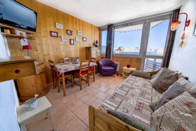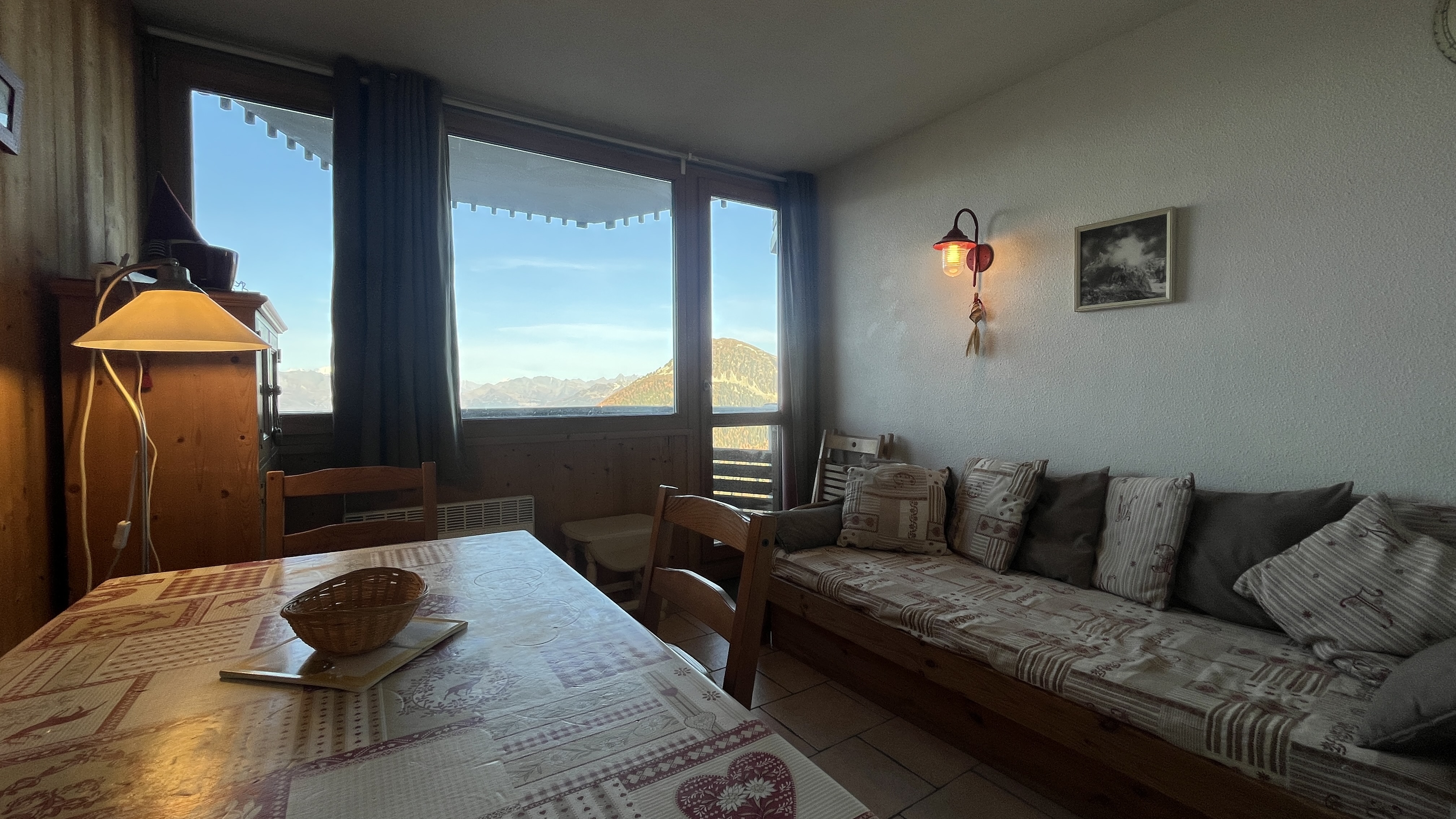 Immeuble situé au pied des pistes avec un départ direct vers 4 directions et stations différentes qui bénéficie d'une Galerie Commerciale intérieure avec tous ses commerces, loisirs et services à bord et qui est également reliée à la station de Plagne Centre par le Télémétro (6mns).