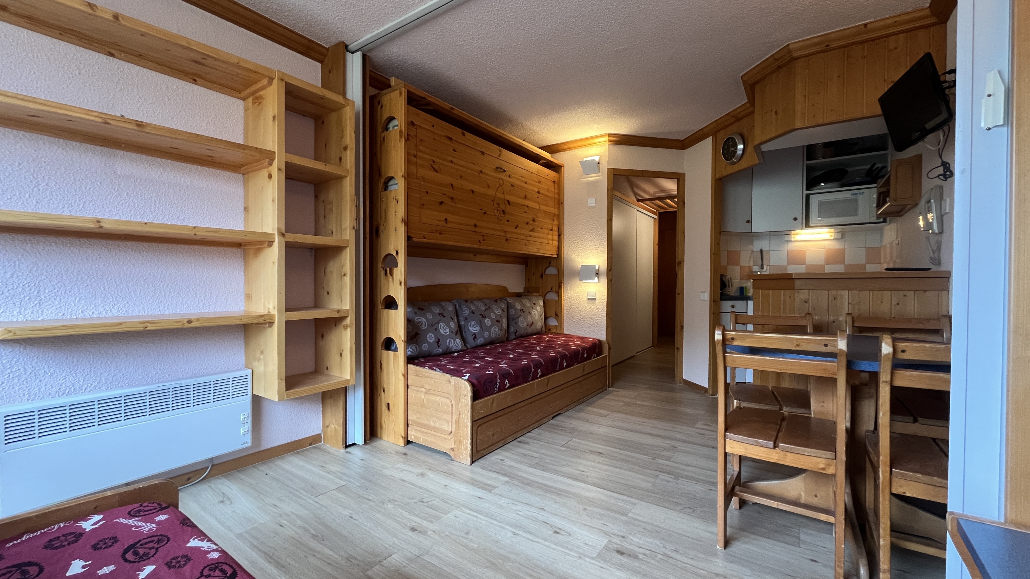 Ce joli studio d'environ 26 m² rénové bénéficie d'un balcon exposé Sud/Ouest avec vue sur les pistes.