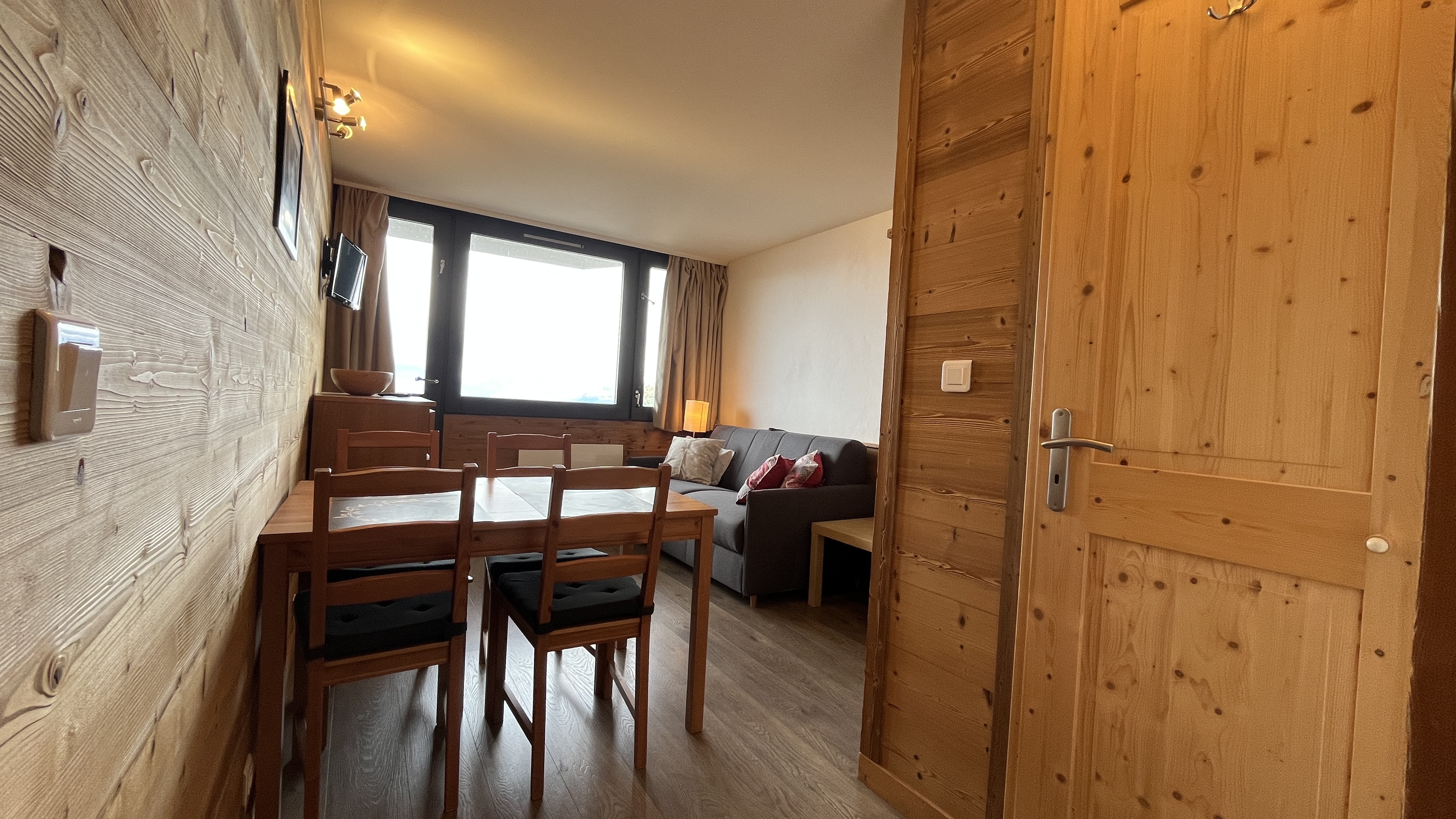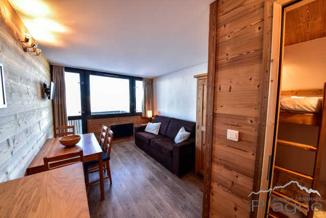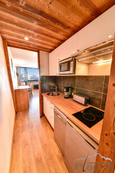 Immeuble situé au pied des pistes avec un départ direct vers 4 directions et stations différentes qui bénéficie d'une Galerie Commerciale intérieure avec tous ses commerces, loisirs et services à bord et qui est également reliée à la station de Plagne Centre par le Télémétro (6mns).
