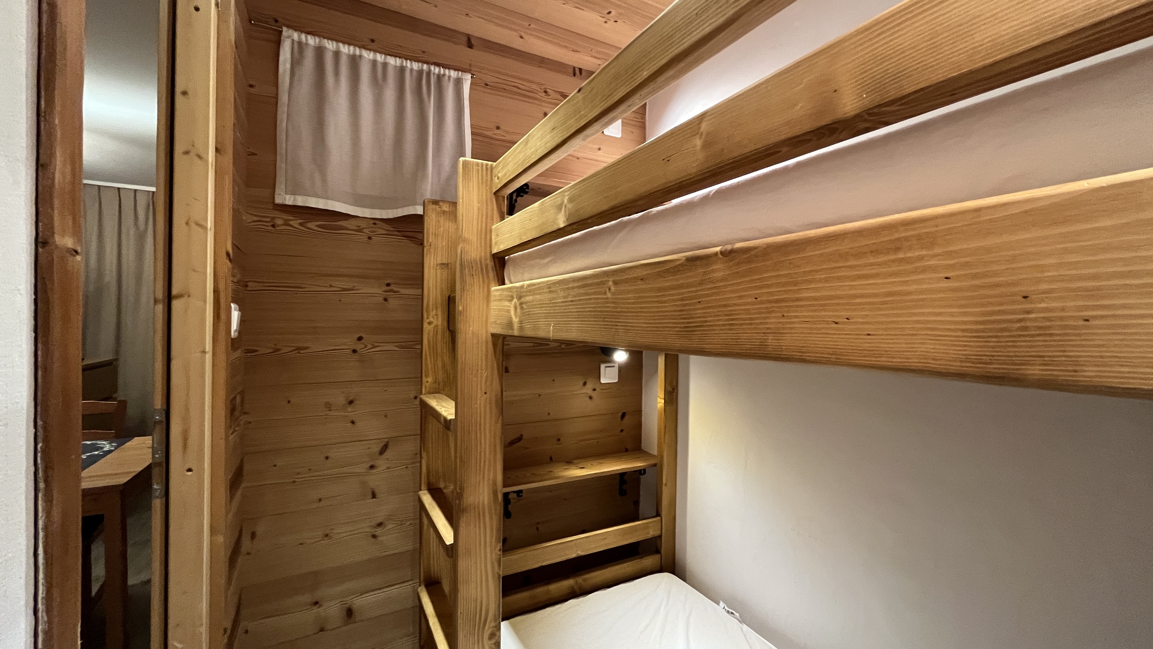 Ce très beau studio d'environ 26 m² entièrement rénové bénéficie d'une petite chambre fermée et d'un balcon exposé Nord/Est avec très belle vue sur le Mont Blanc.