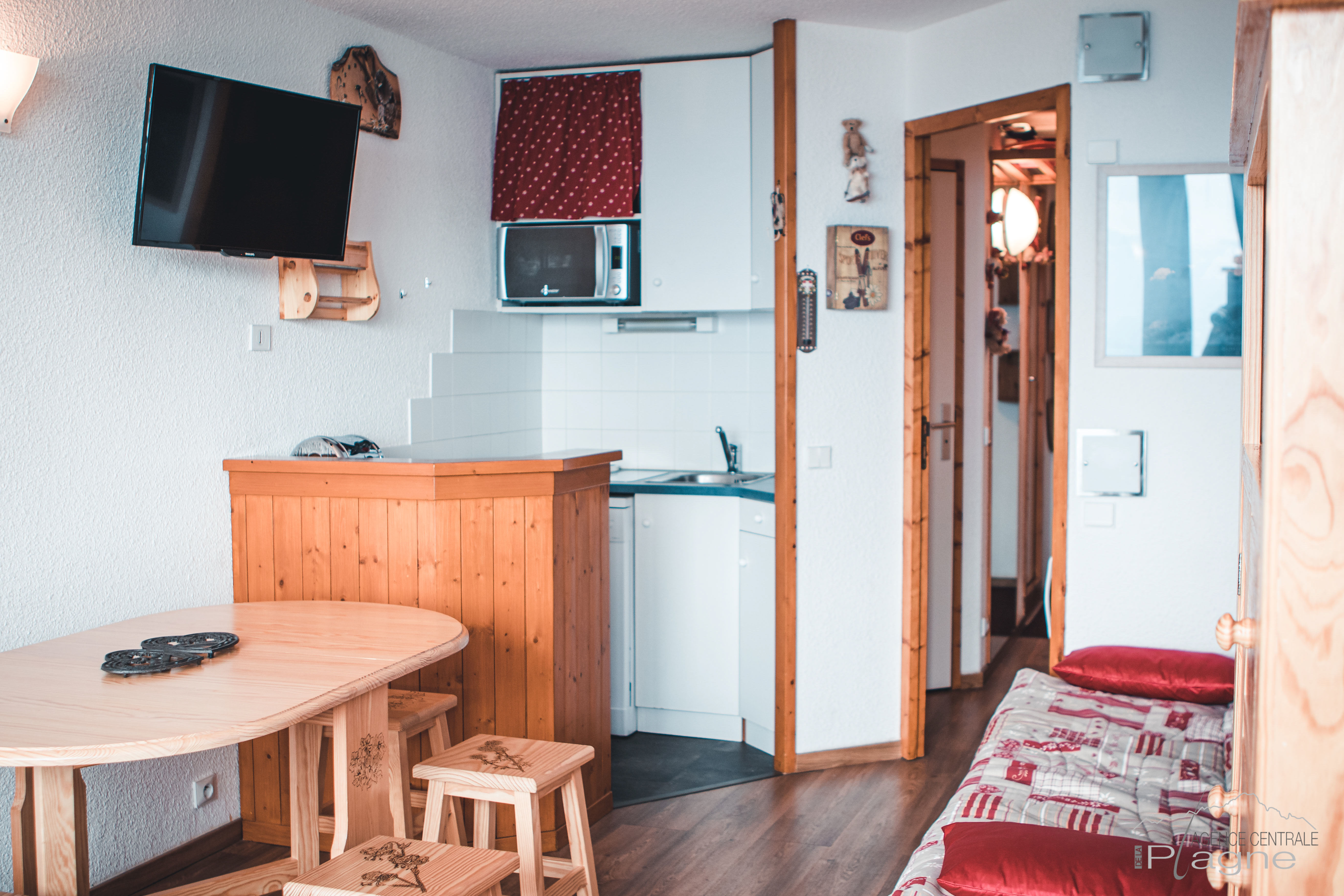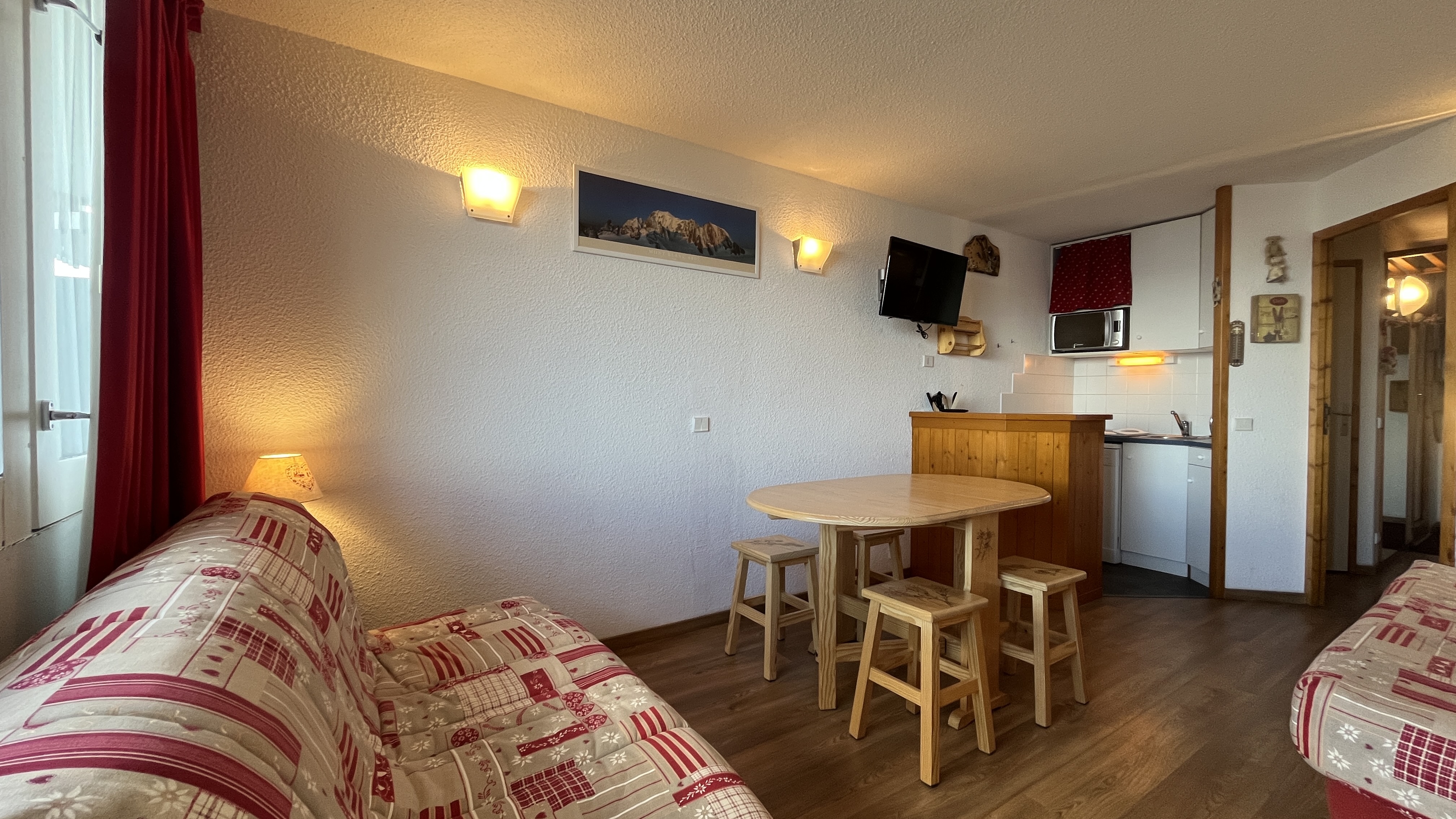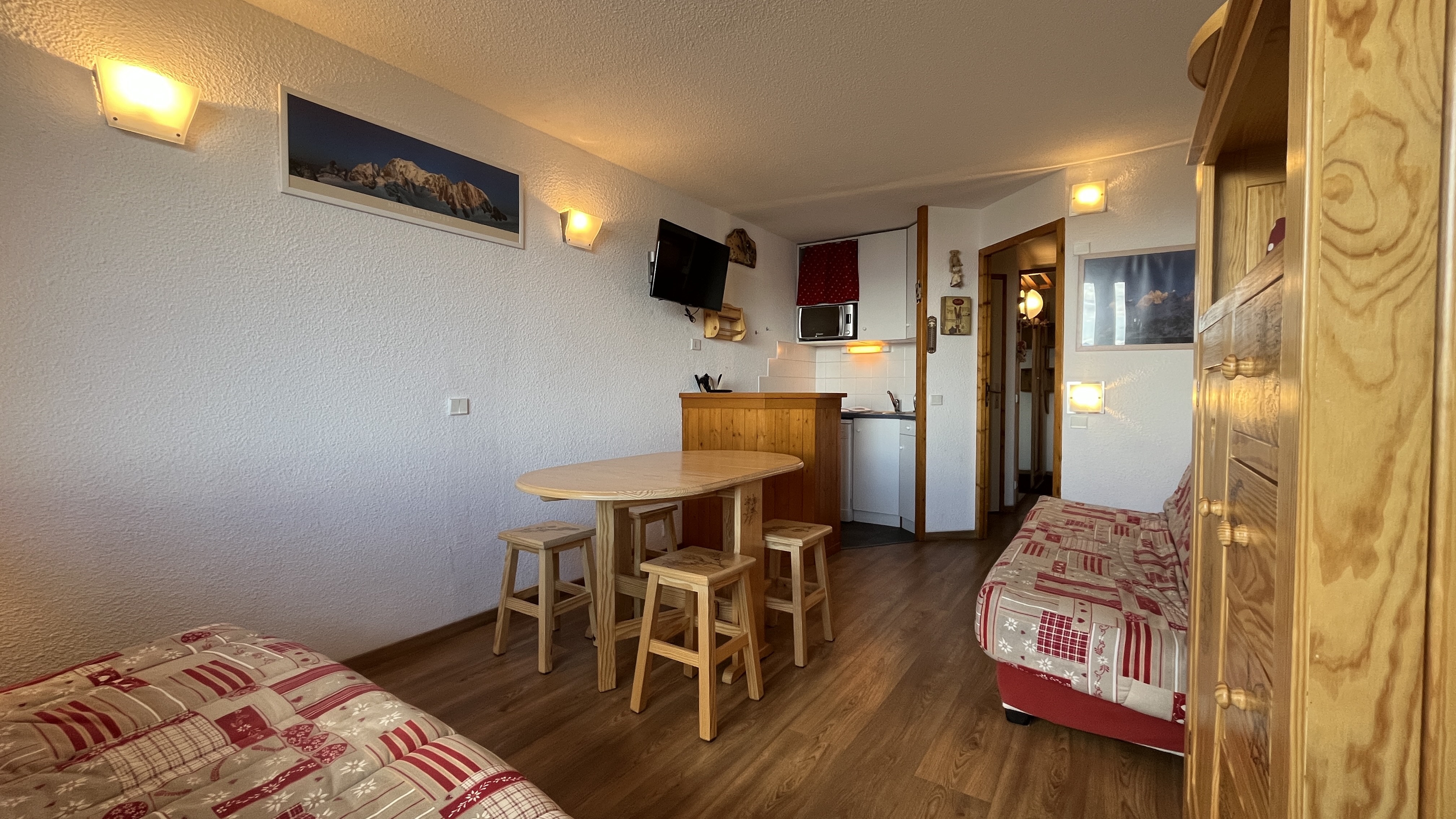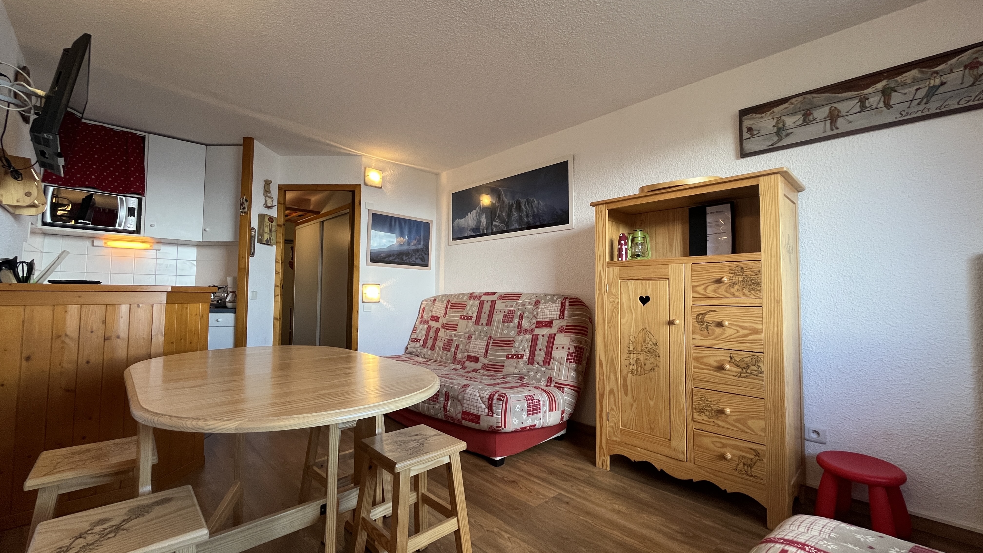 Ce joli studio d'environ 32 m² rénové est meublé et équipé pour 4 personnes. Il bénéficie d'une chambre cabine fermée.