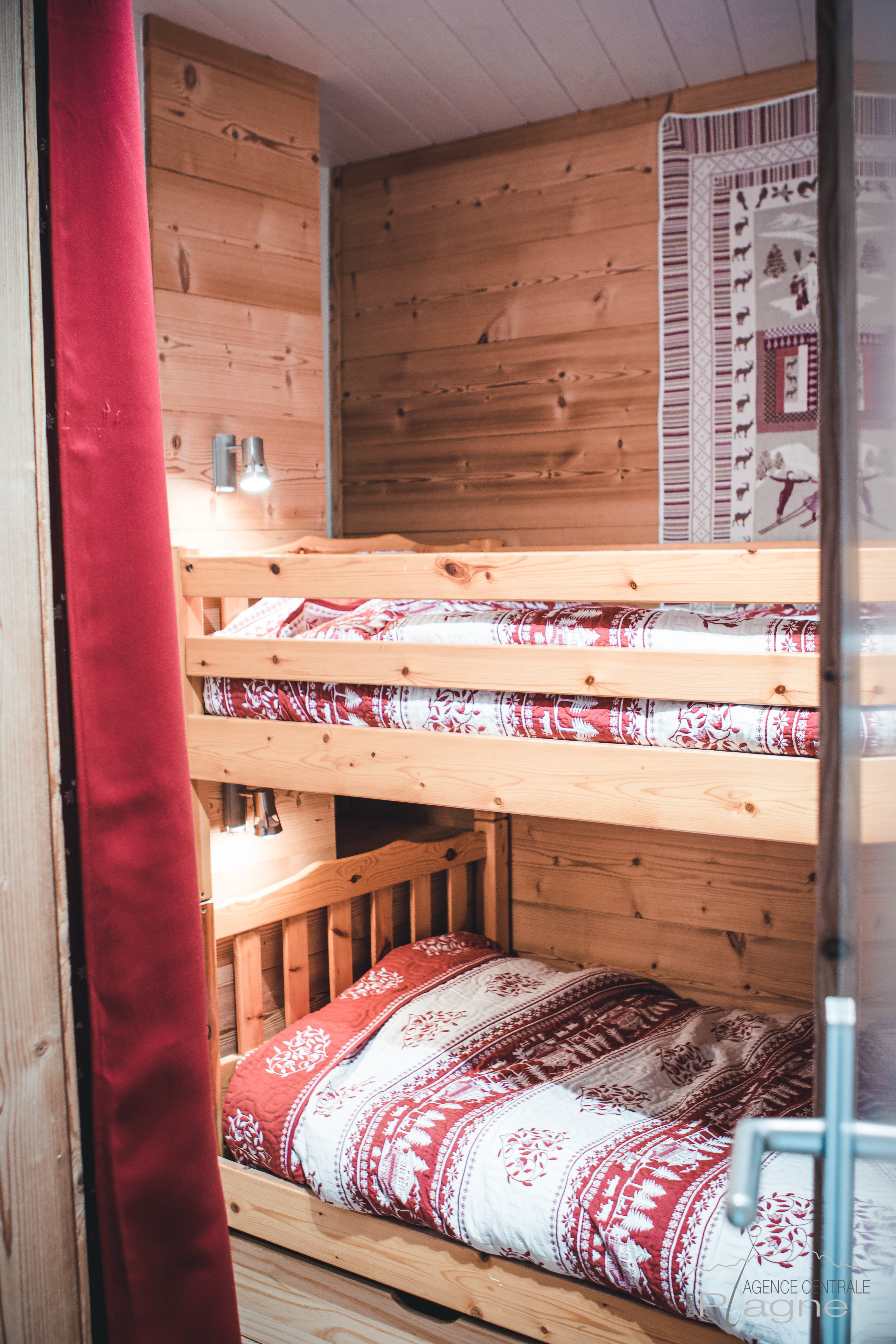 Chambre cabine : 2 Lits 1pers superposés 90 (couettes)