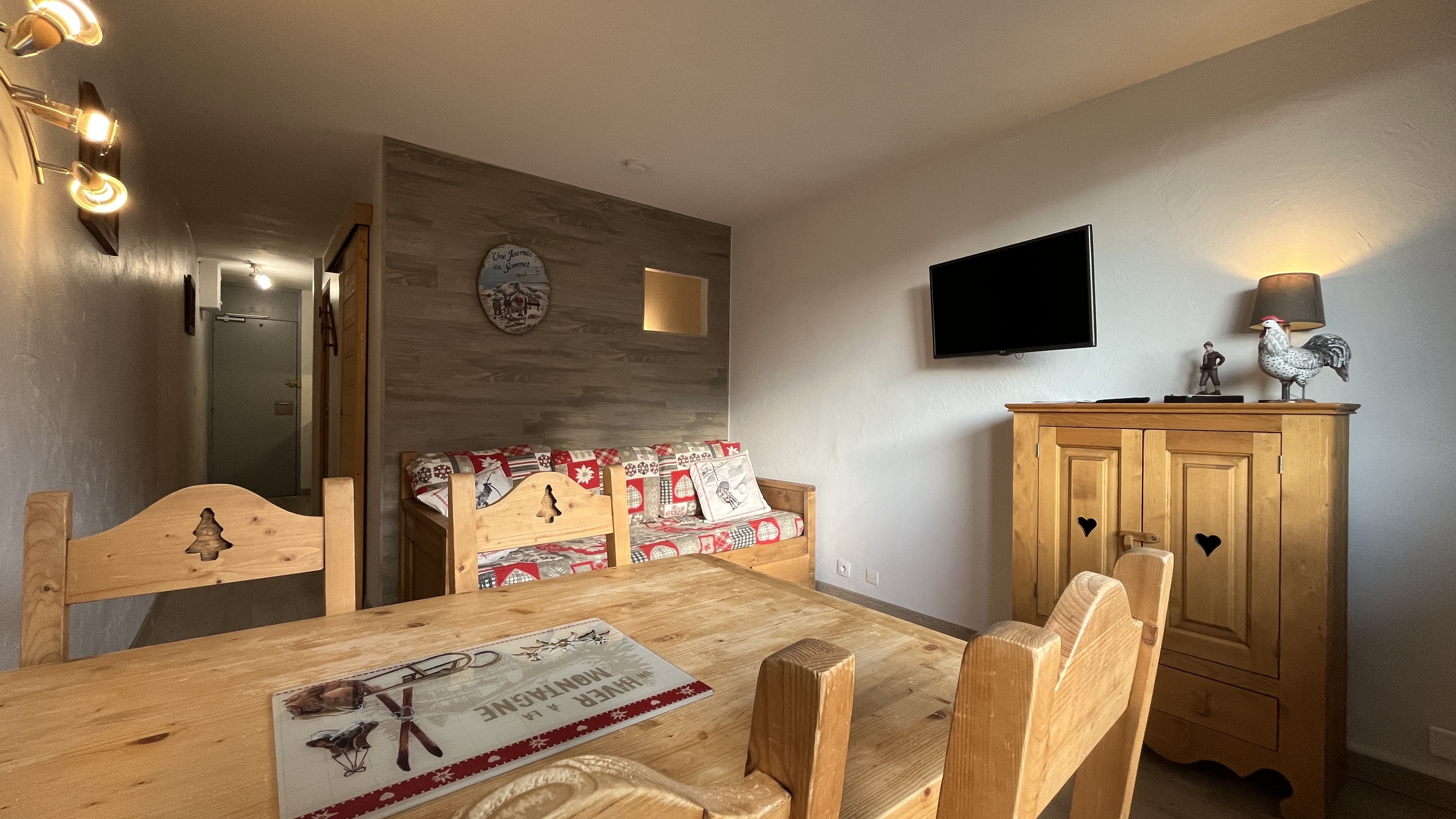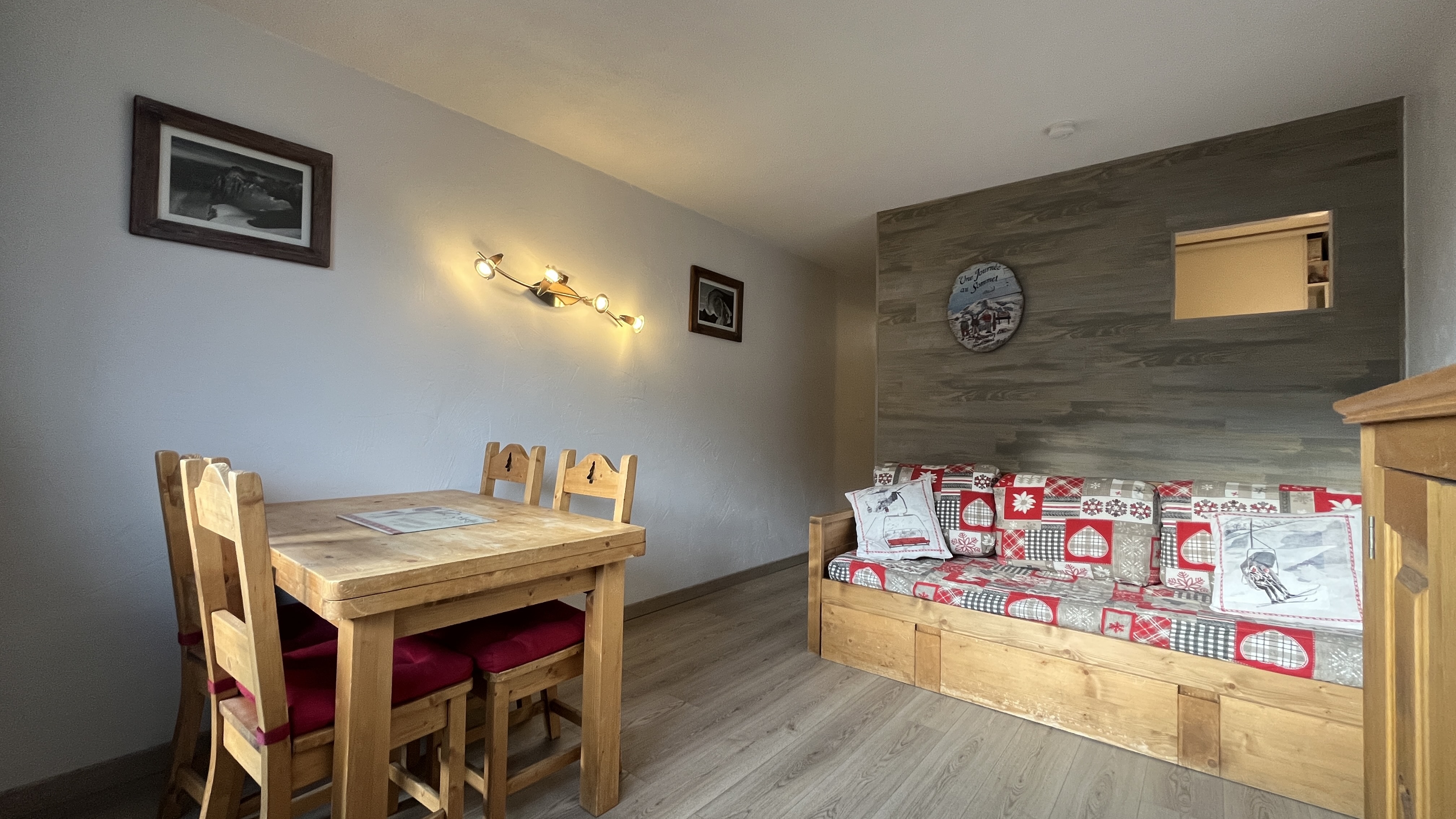 Ce très joli studio d'environ 26 m² entièrement rénové bénéficie d'un coin nuit fermé et un balcon exposé Sud/Ouest avec vue sur les pistes.