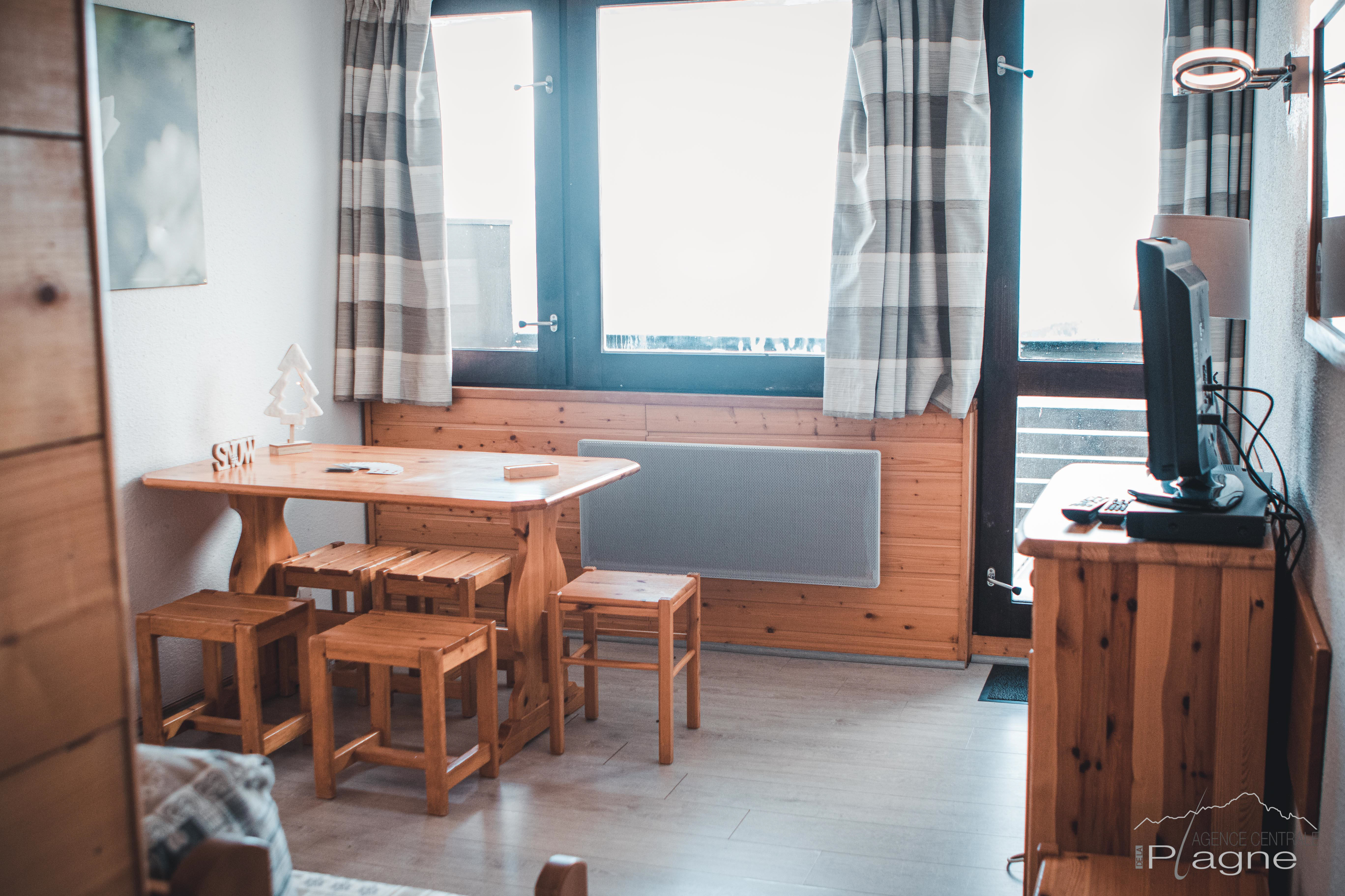 Immeuble situé au pied des pistes avec un départ direct vers 4 directions et stations différentes qui bénéficie d'une Galerie Commerciale intérieure avec tous ses commerces, loisirs et services à bord et qui est également reliée à la station de Plagne Centre par le Télémétro (6mns).