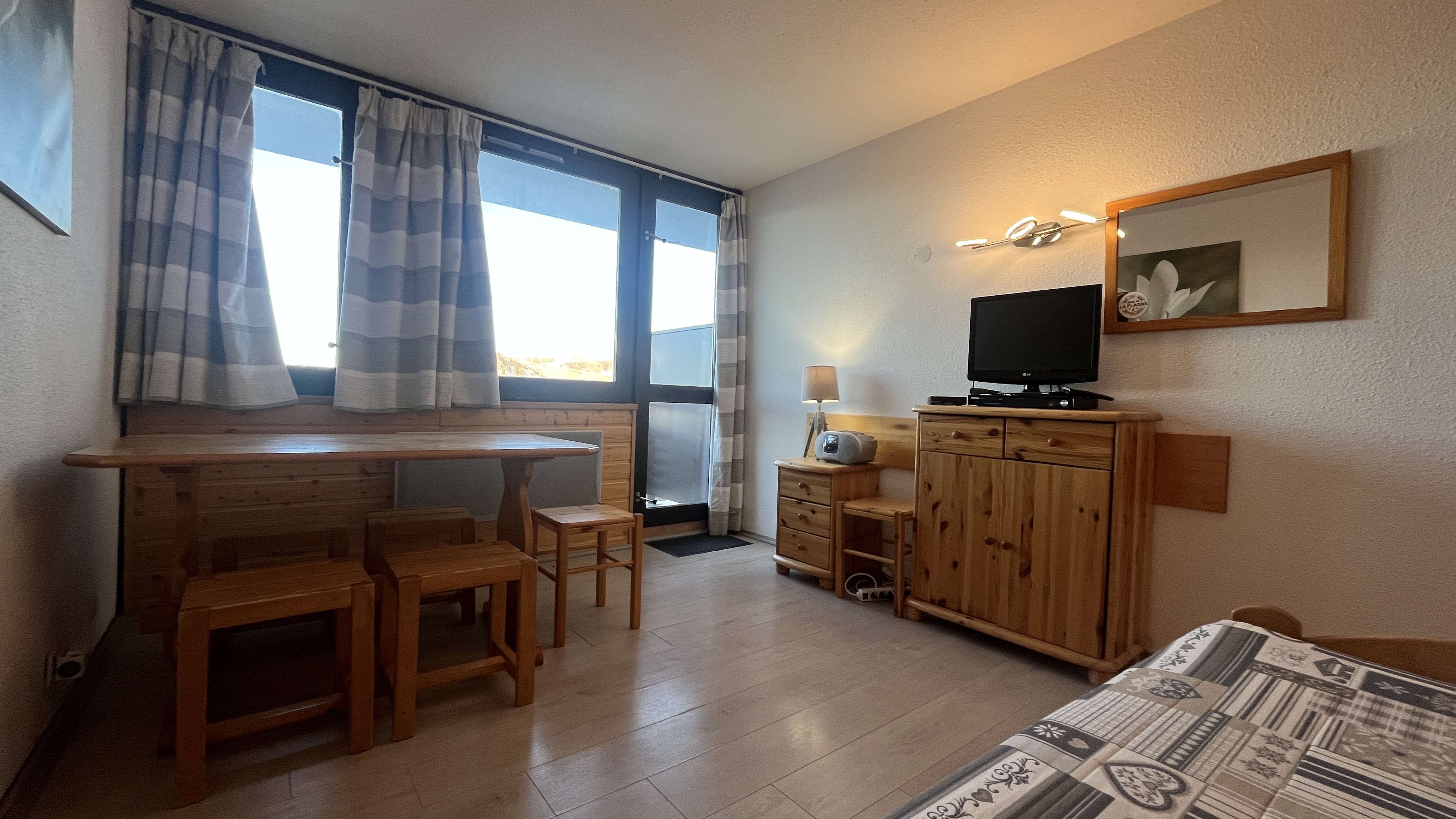 Ce studio d'environ 26 m2 bénéficie d'un balcon avec une très belle vue sur la vallée et le Mont-Blanc.