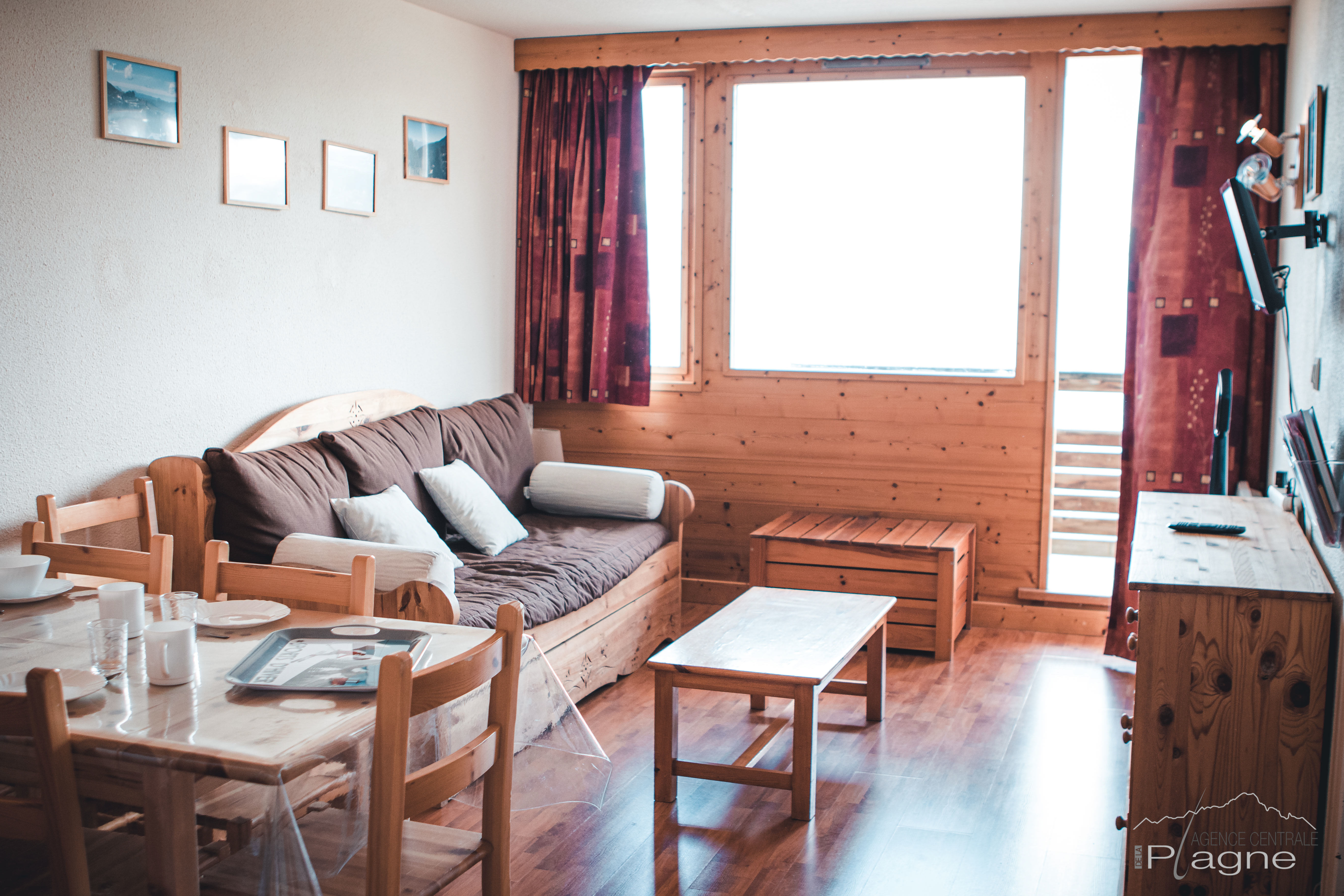 Immeuble situé au pied des pistes avec un départ direct vers 4 directions et stations différentes qui bénéficie d'une Galerie Commerciale intérieure avec tous ses commerces, loisirs et services à bord et qui est également reliée à la station de Plagne Centre par le Télémétro (6mns).