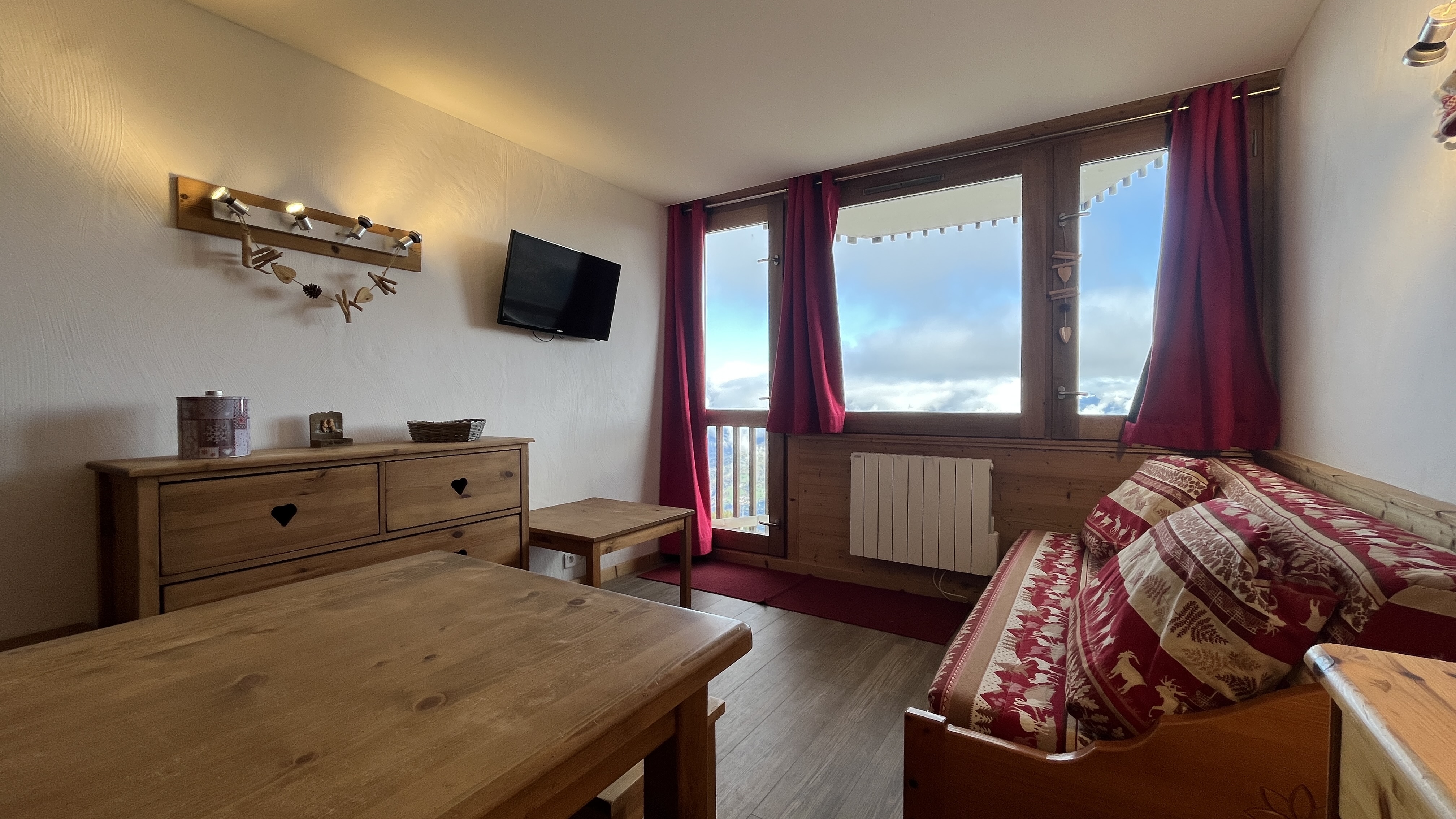 Ce très joli studio d'environ 26 m² entièrement rénové bénéficie d'un coin nuit fermé et un balcon exposé Nord/Est avec vue sur le Mont-Blanc.