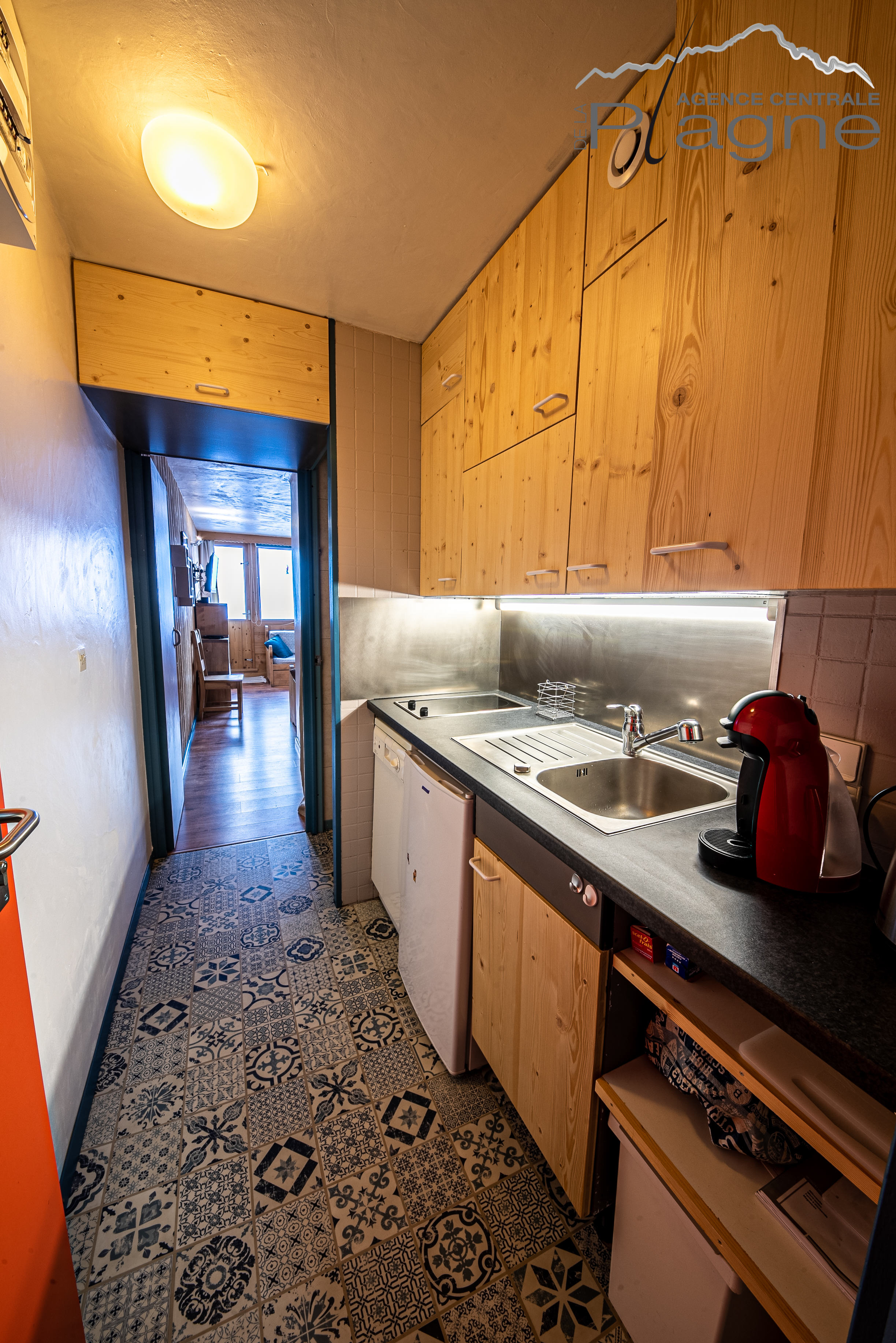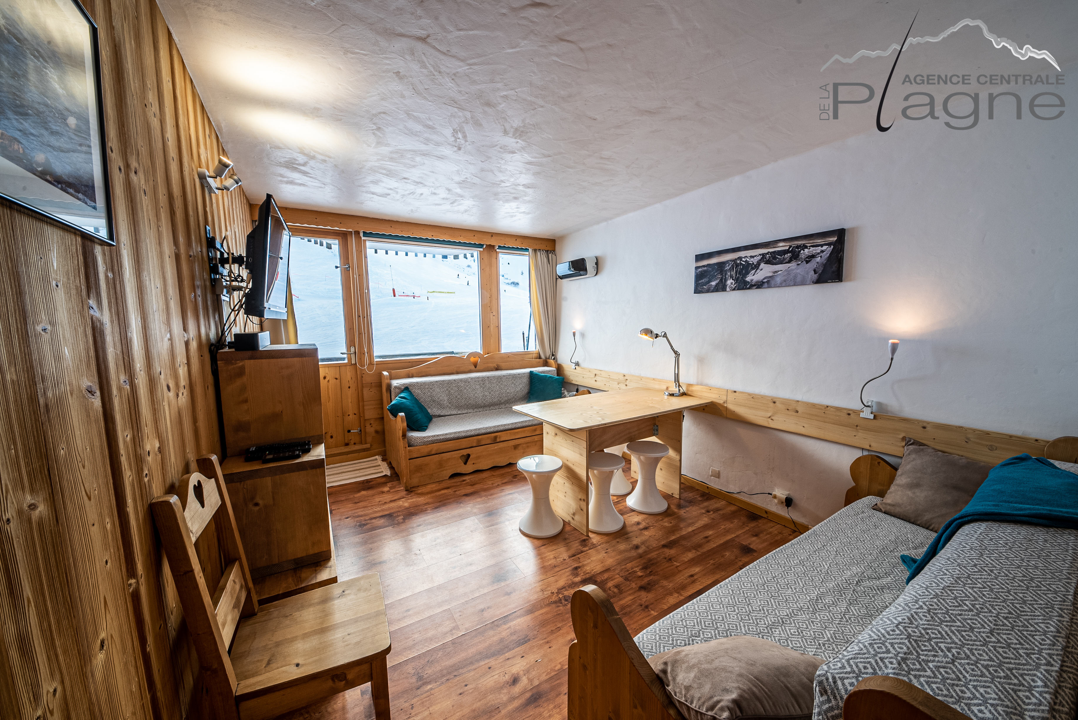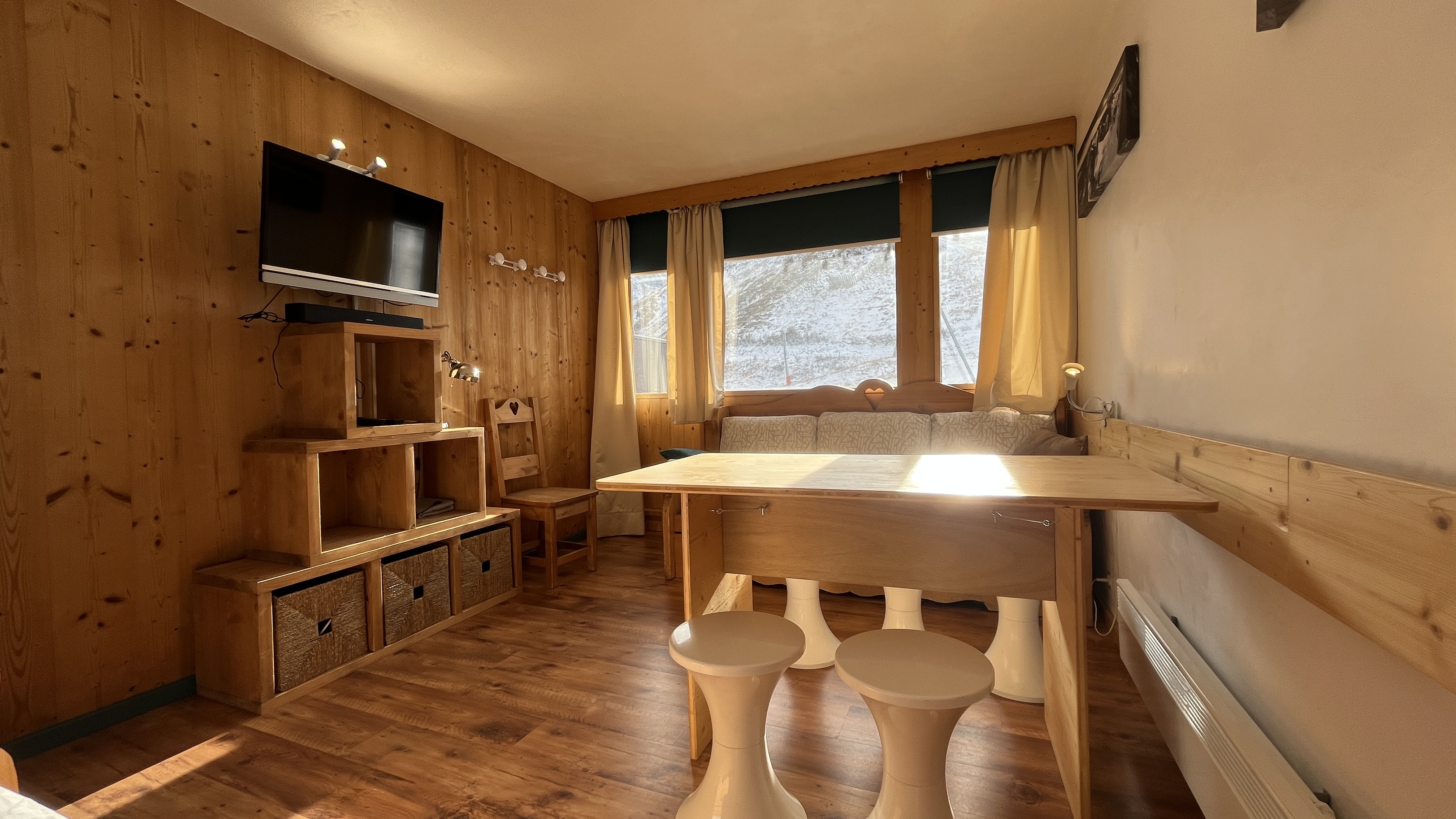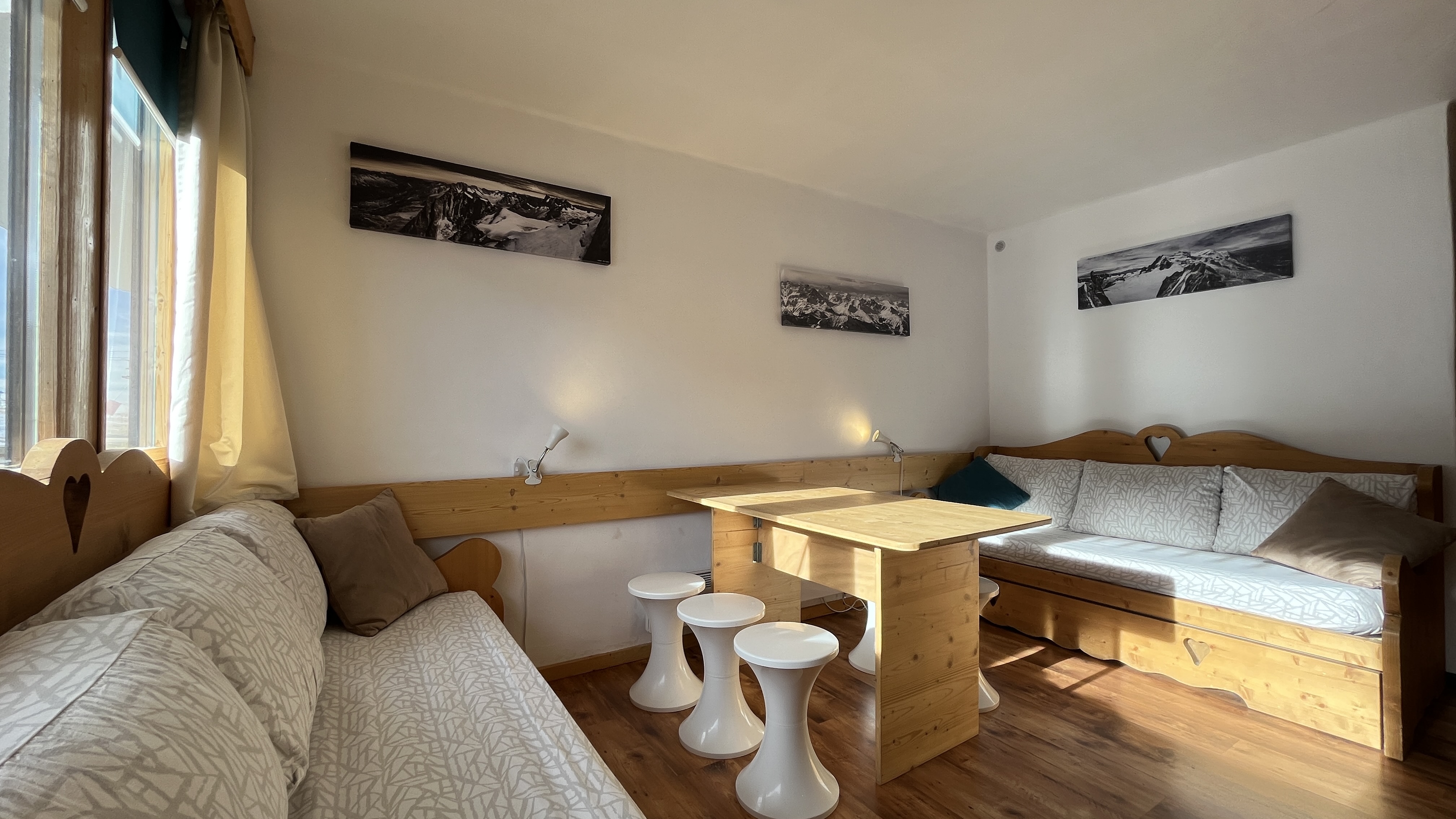 Ce très beau studio d'environ 26 m² entièrement rénové bénéficie d'un coin nuit et d'un balcon exposé Sud/Ouest avec vue sur les pistes.
