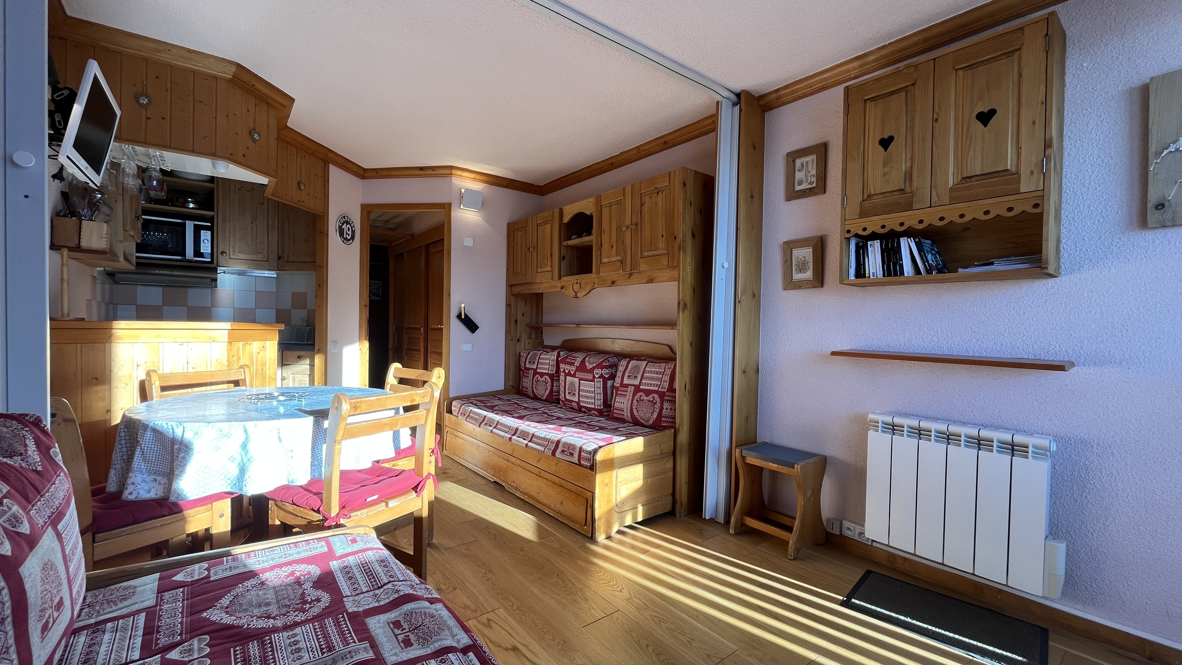 Ce joli studio d'environ 26 m² rénové bénéficie d'un balcon exposé Sud/Ouest avec vue sur les pistes.
