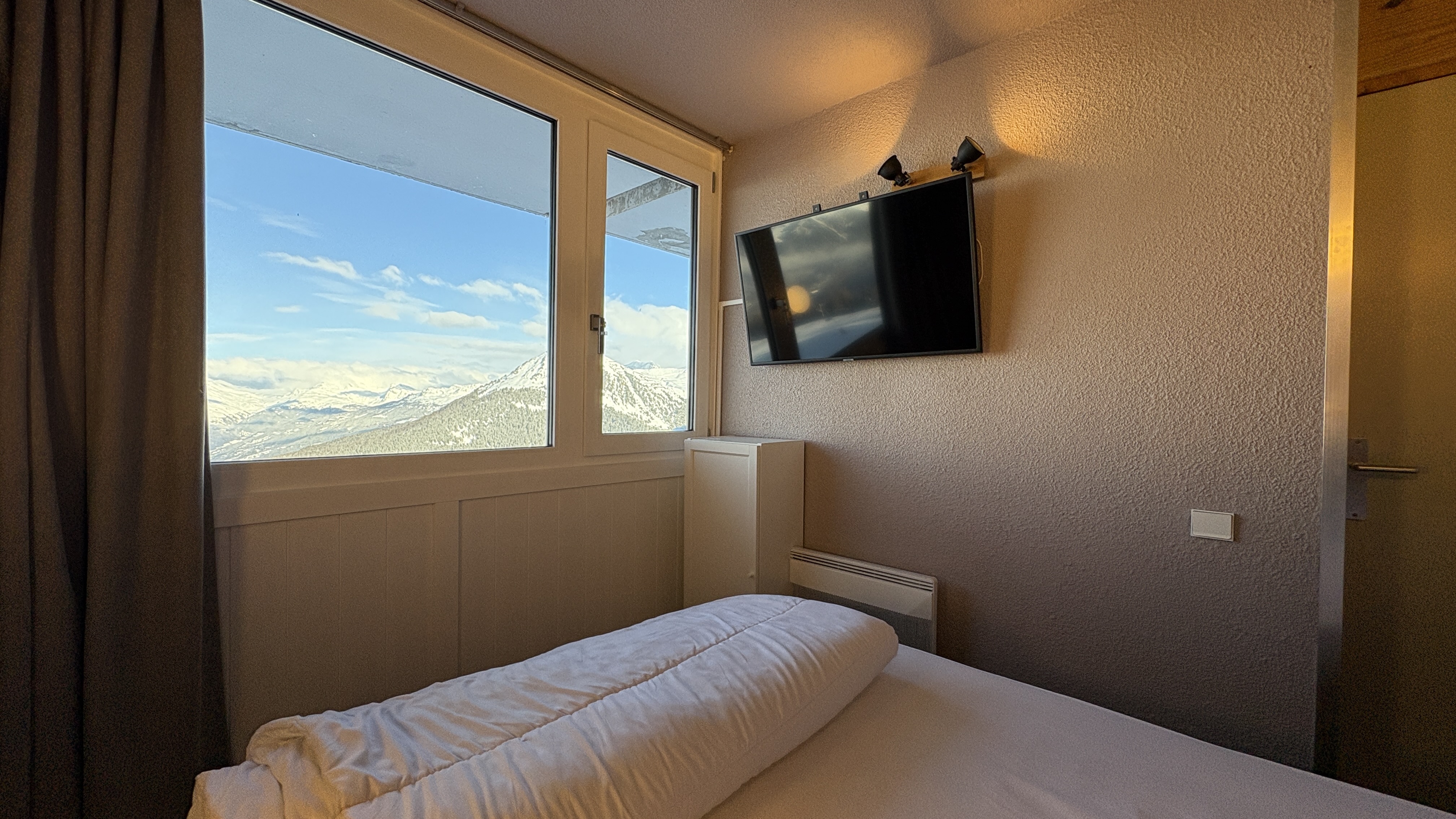 Immeuble situé au pied des pistes avec un départ direct vers 4 directions et stations différentes qui bénéficie d'une Galerie Commerciale intérieure avec tous ses commerces, loisirs et services à bord et qui est également reliée à la station de Plagne Centre par le Télémétro (6mns).