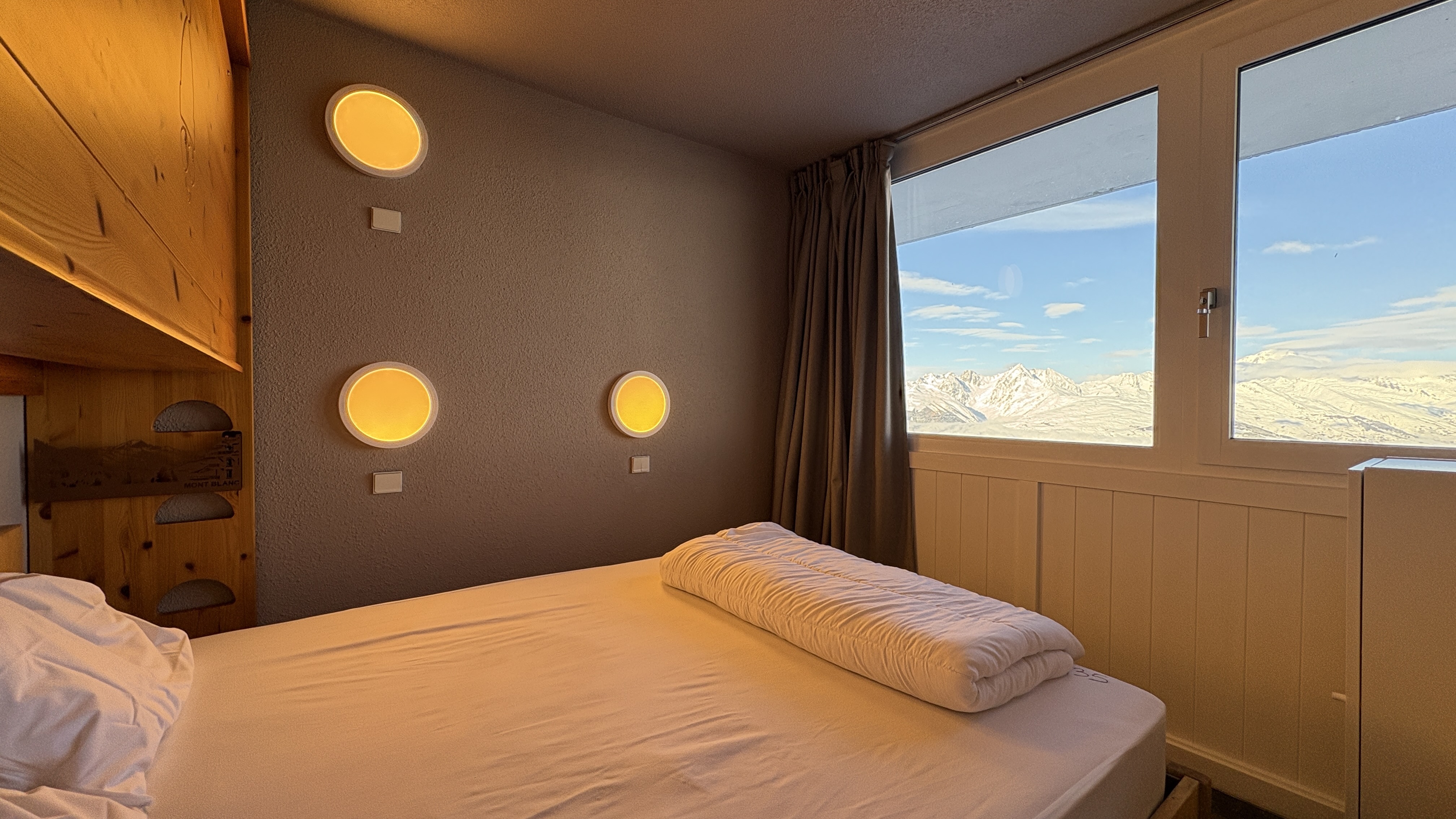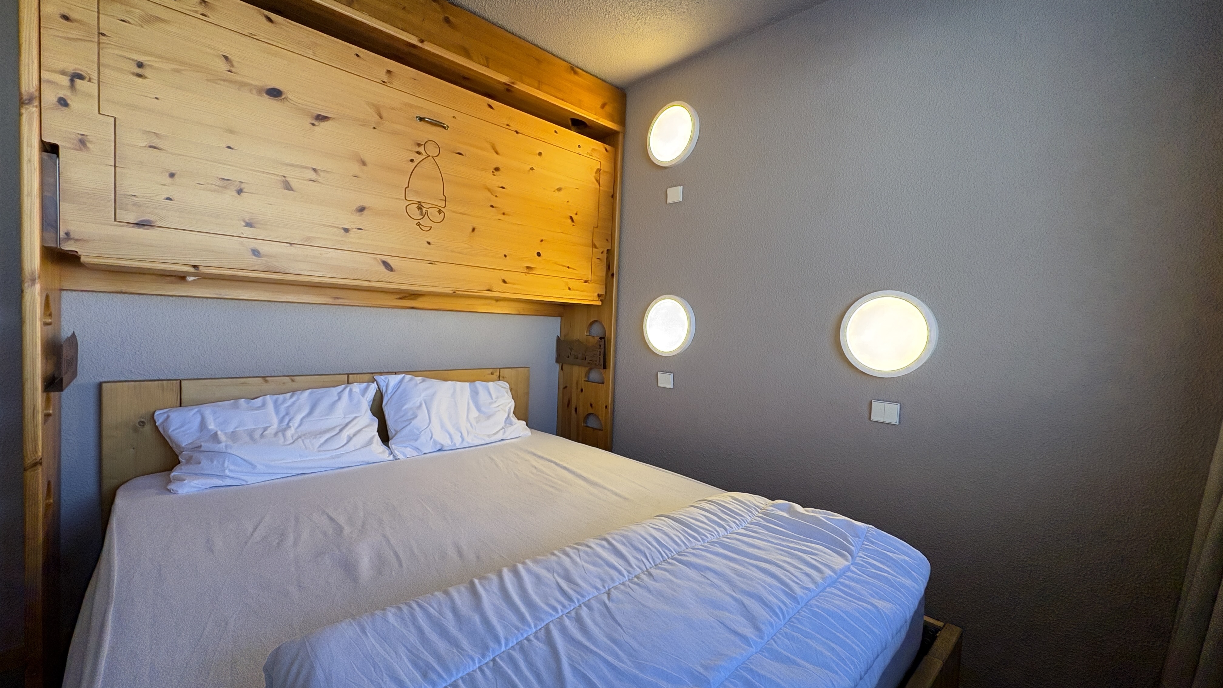 Chambre 1 : 1 lit double en 160 + 1 lit rabattable (couettes)