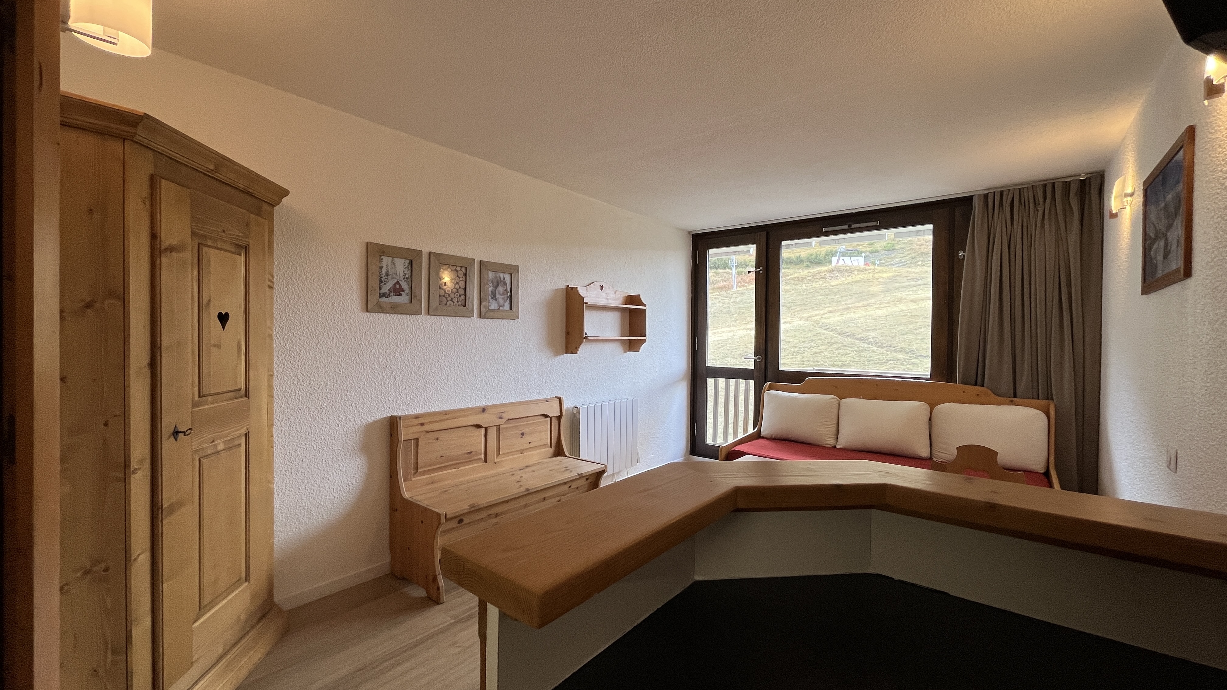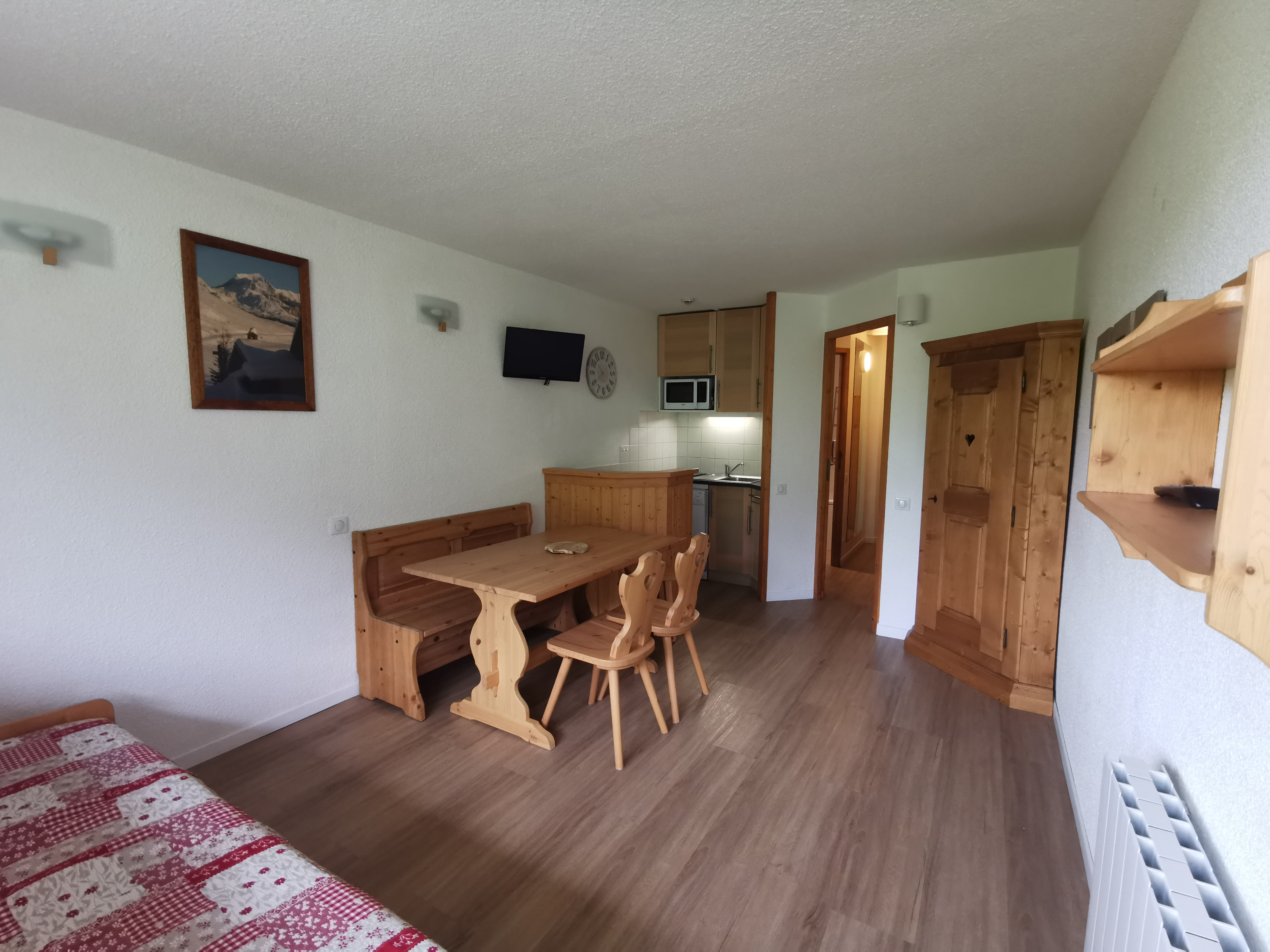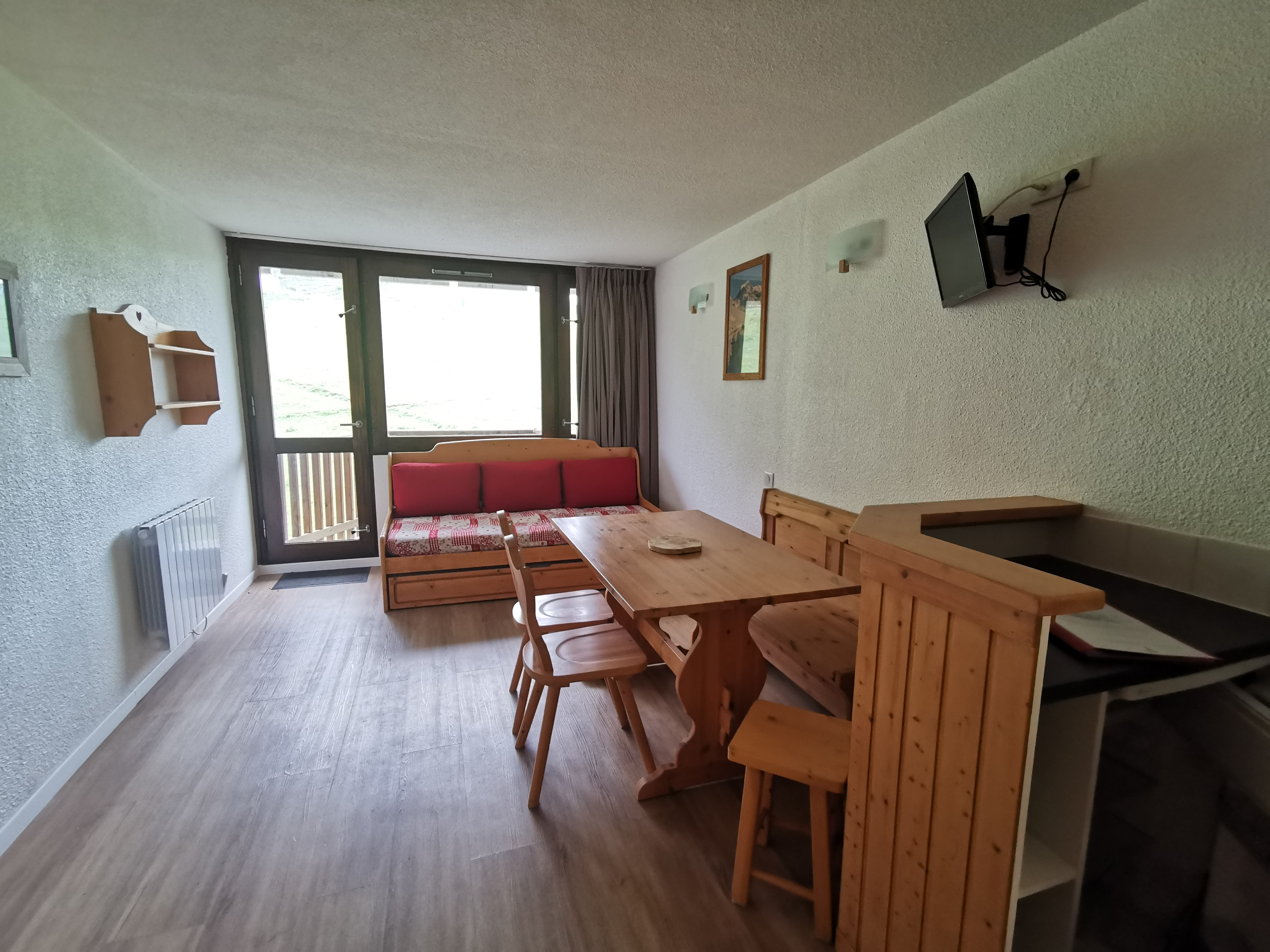 Ce joli studio d'environ 26 m² entièrement rénové bénéficie d'un coin nuit et d'un balcon exposé Sud/Ouest avec vue sur les pistes.