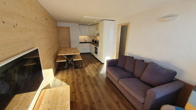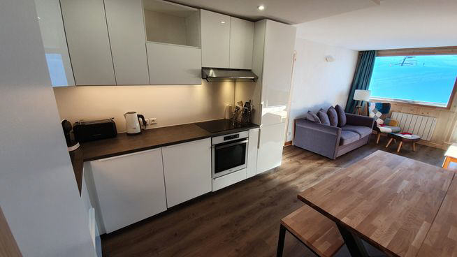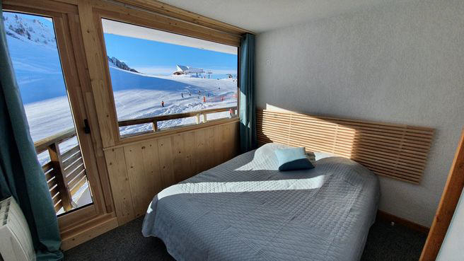 Très bel appartement d'environ 52 m² bénéficie d' 1 salle de bains avec douche, baignoire et WC, un WC séparé, une cuisine ouverte sur séjour, deux chambres et un grand balcon exposé Sud/Ouest avec vue sur les pistes.