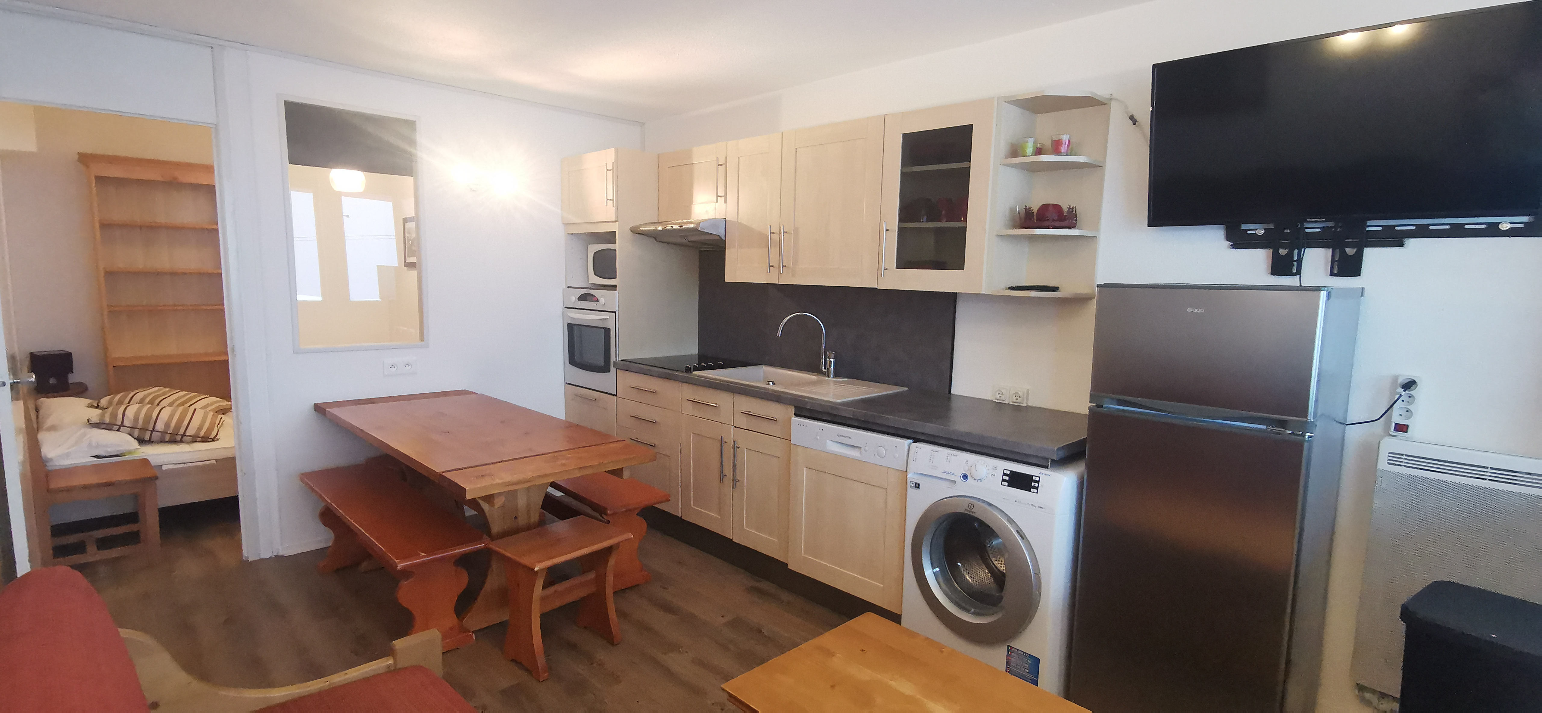 * Une cuisine équipée :1 Lave vaisselle, 1 grand frigo+congélateur, 1 four, 1 micro ondes, 4 plaques vitro, 1 lave linge, 1 cafetière électrique