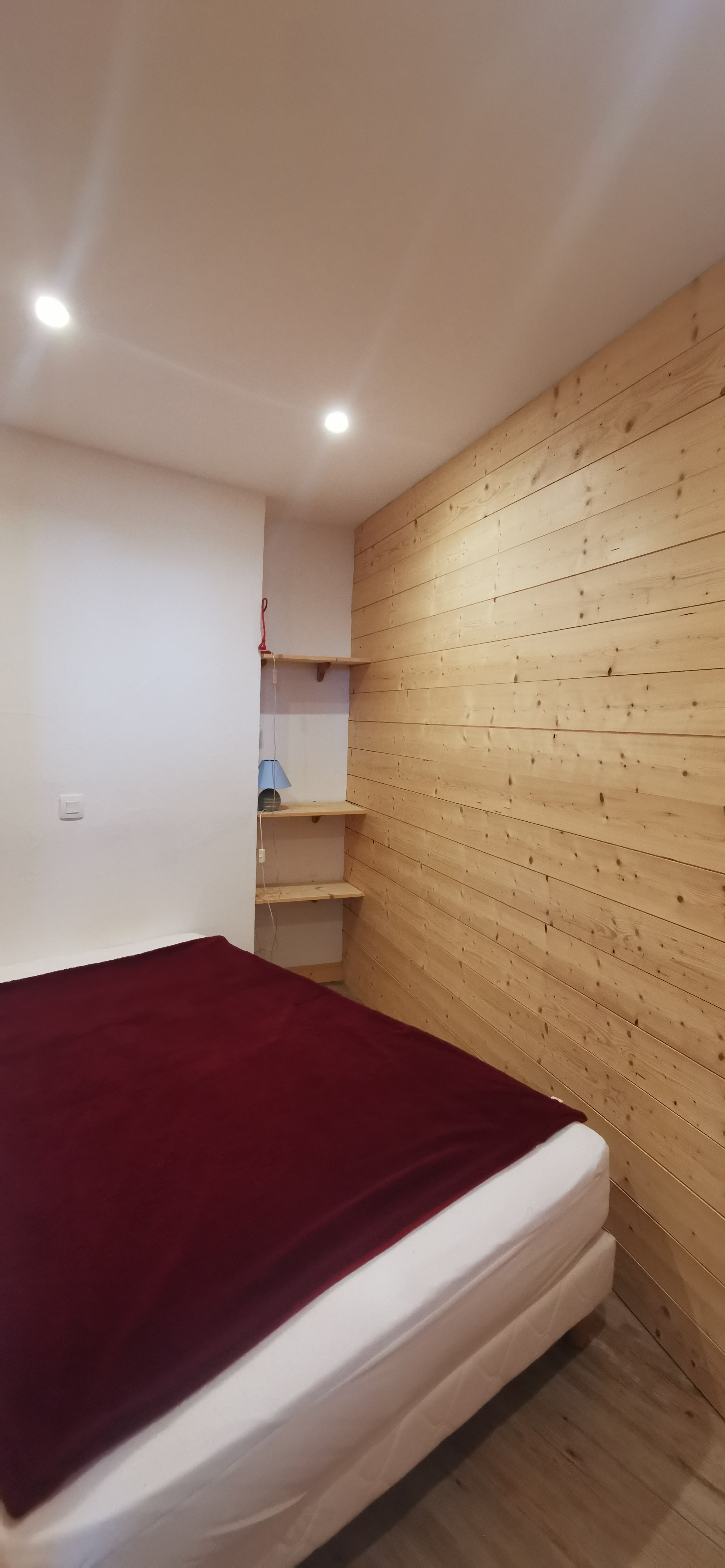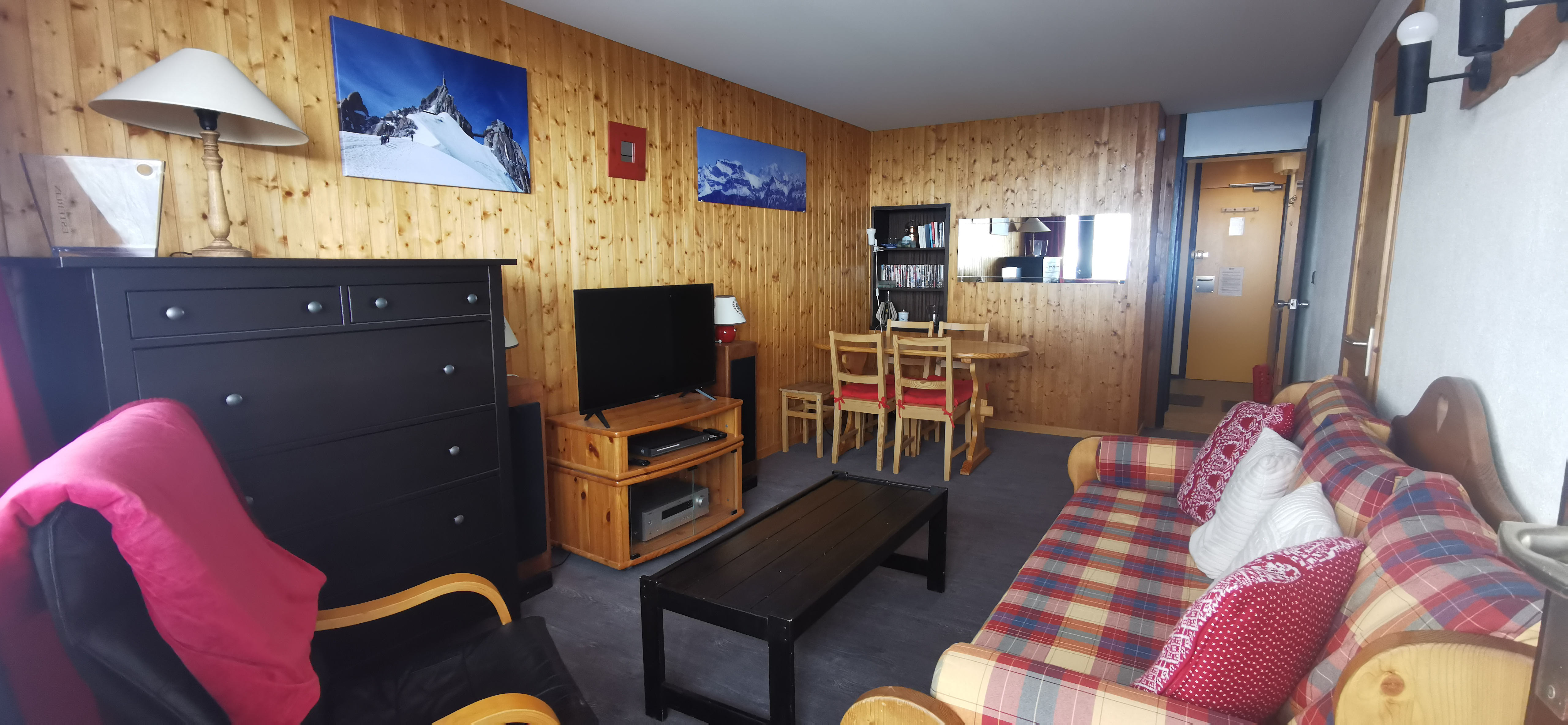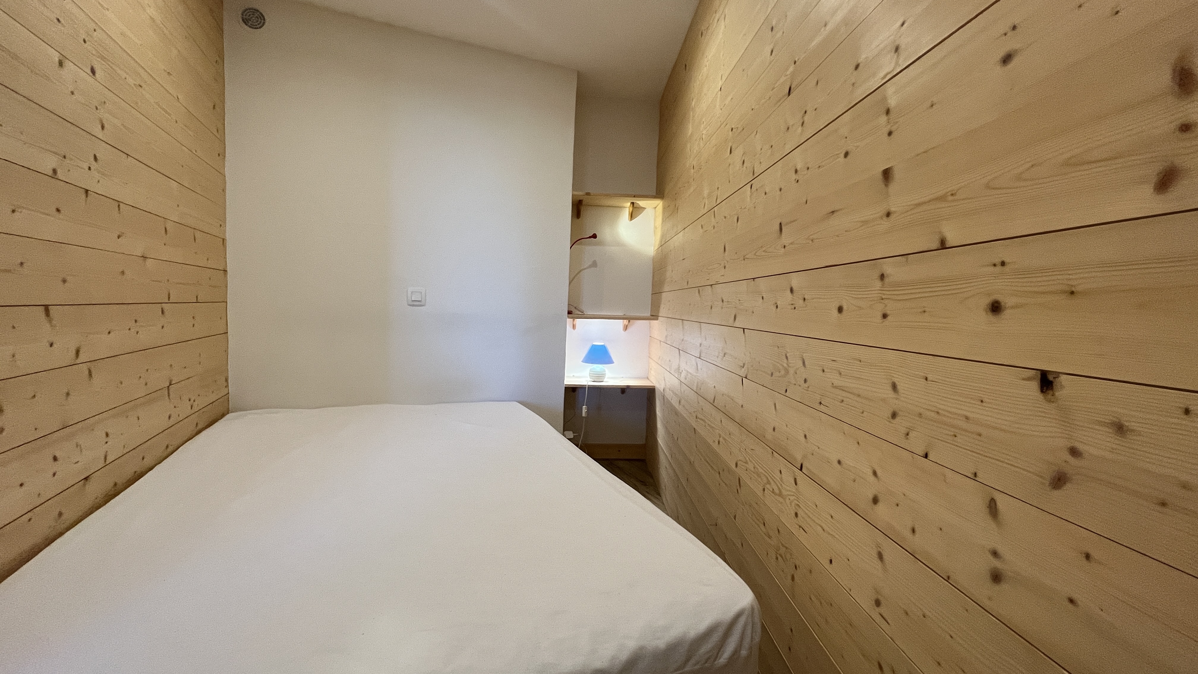 Ce studio d'environ 28 m² bénéficie d'un surface agréable avec un coin nuit fermé équipé d'un lit double. Un balcon avec une très belle vue sur le Mont-Blanc