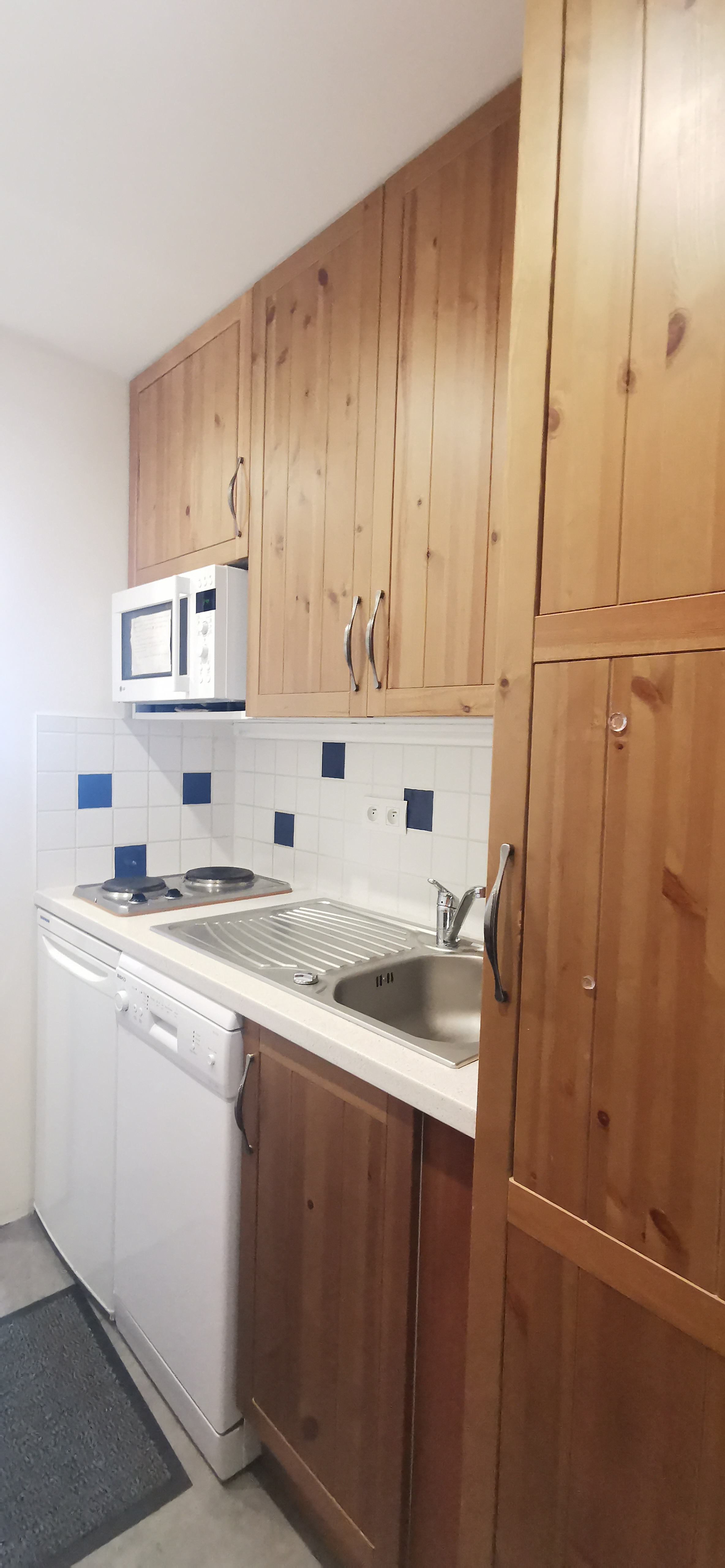 Cuisine : 2 Plaques électriques, 1 micro ondes mixte, 1LV, 1 cafetière électrique