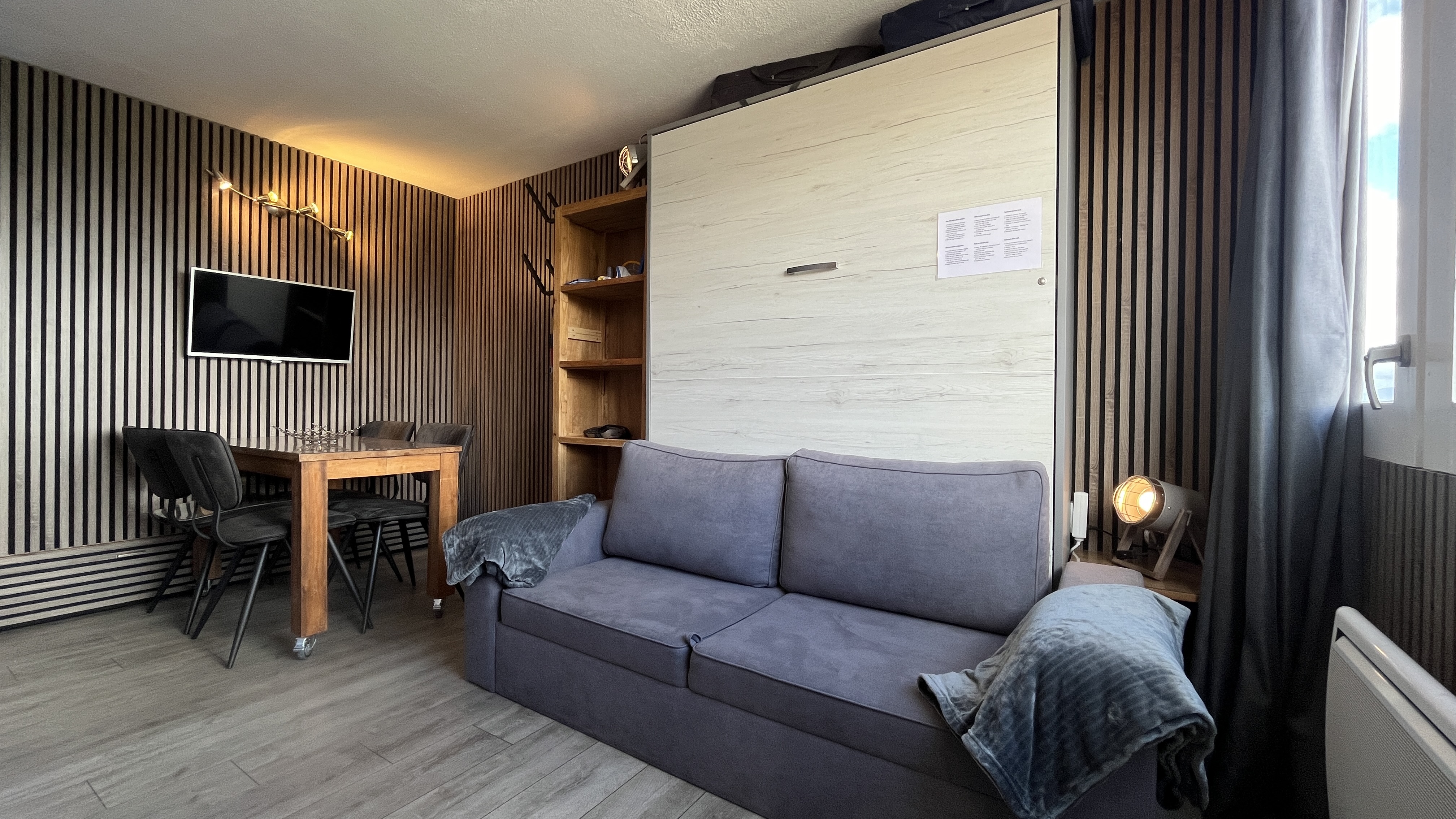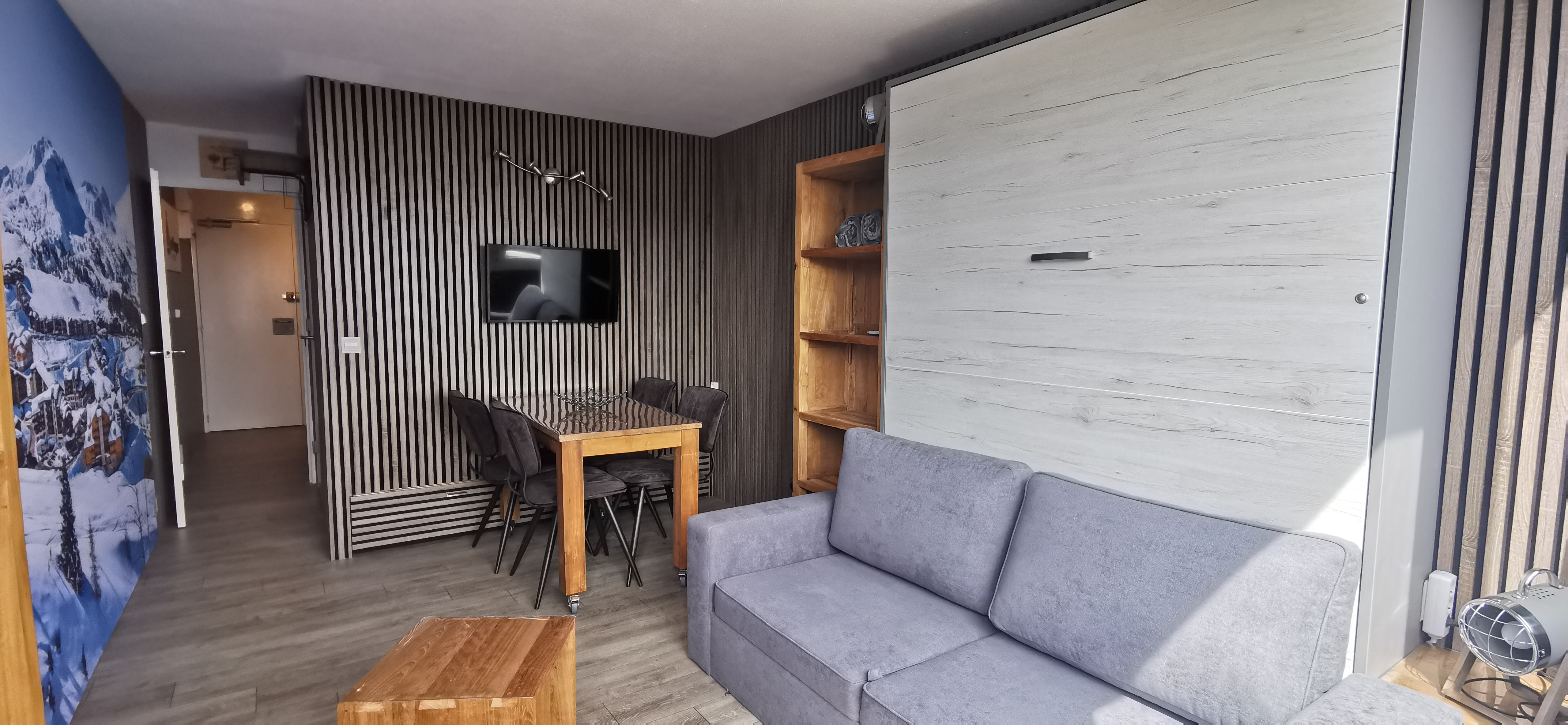 Joli studio d'environ 26 m² entièrement rénové bénéficiant d'un coin nuit fermée , d'un balcon avec une jolie vue Mont-Blanc
