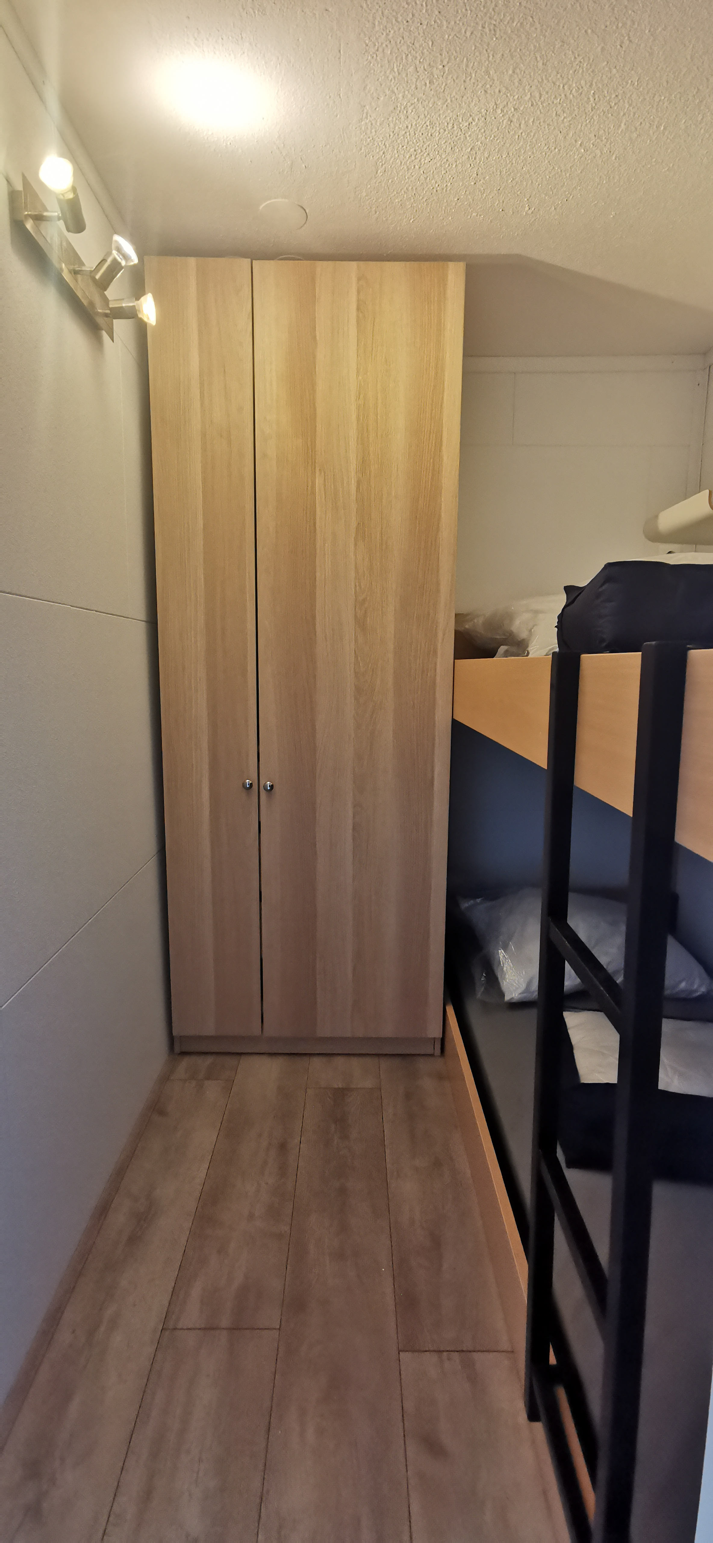 Coin nuit : 2 Lits superposés (couettes) + 1 lit BB