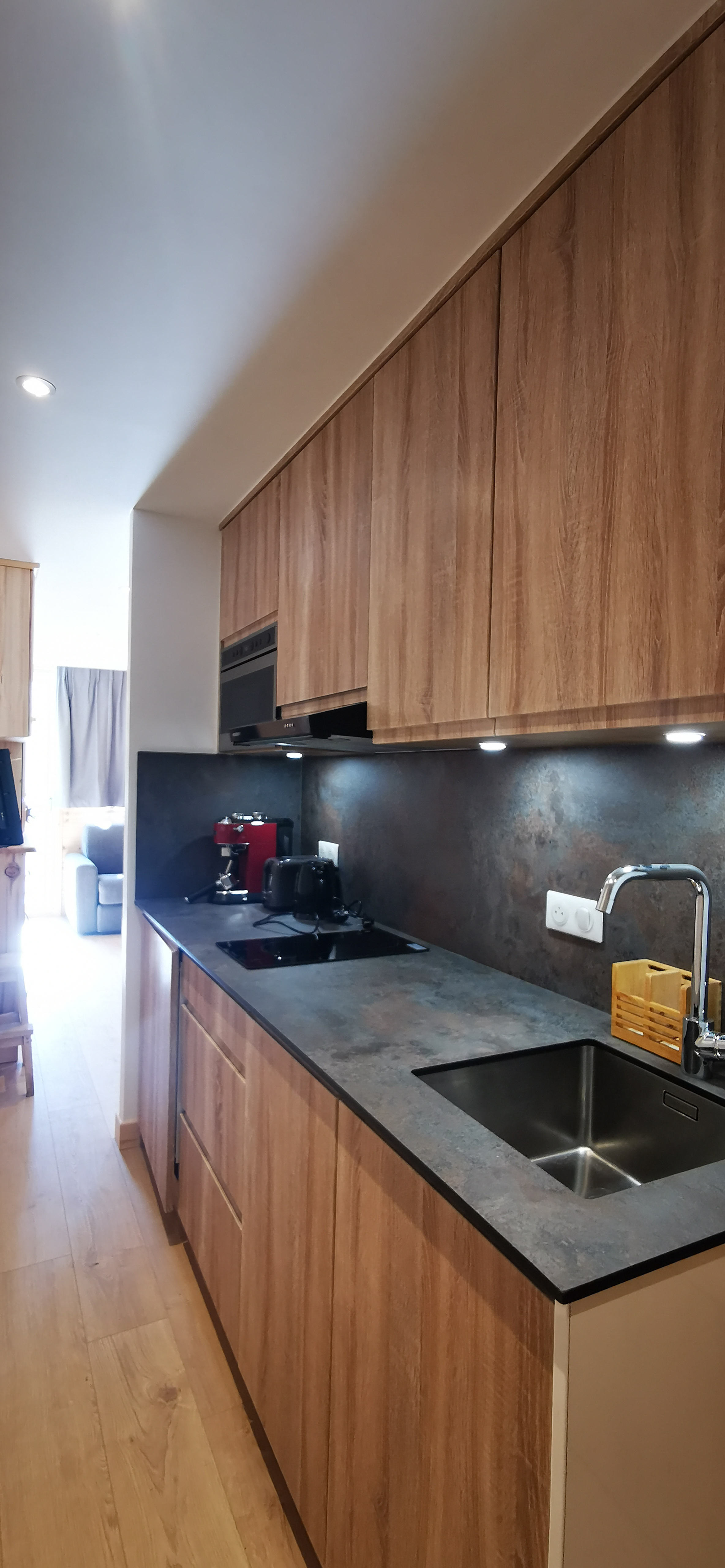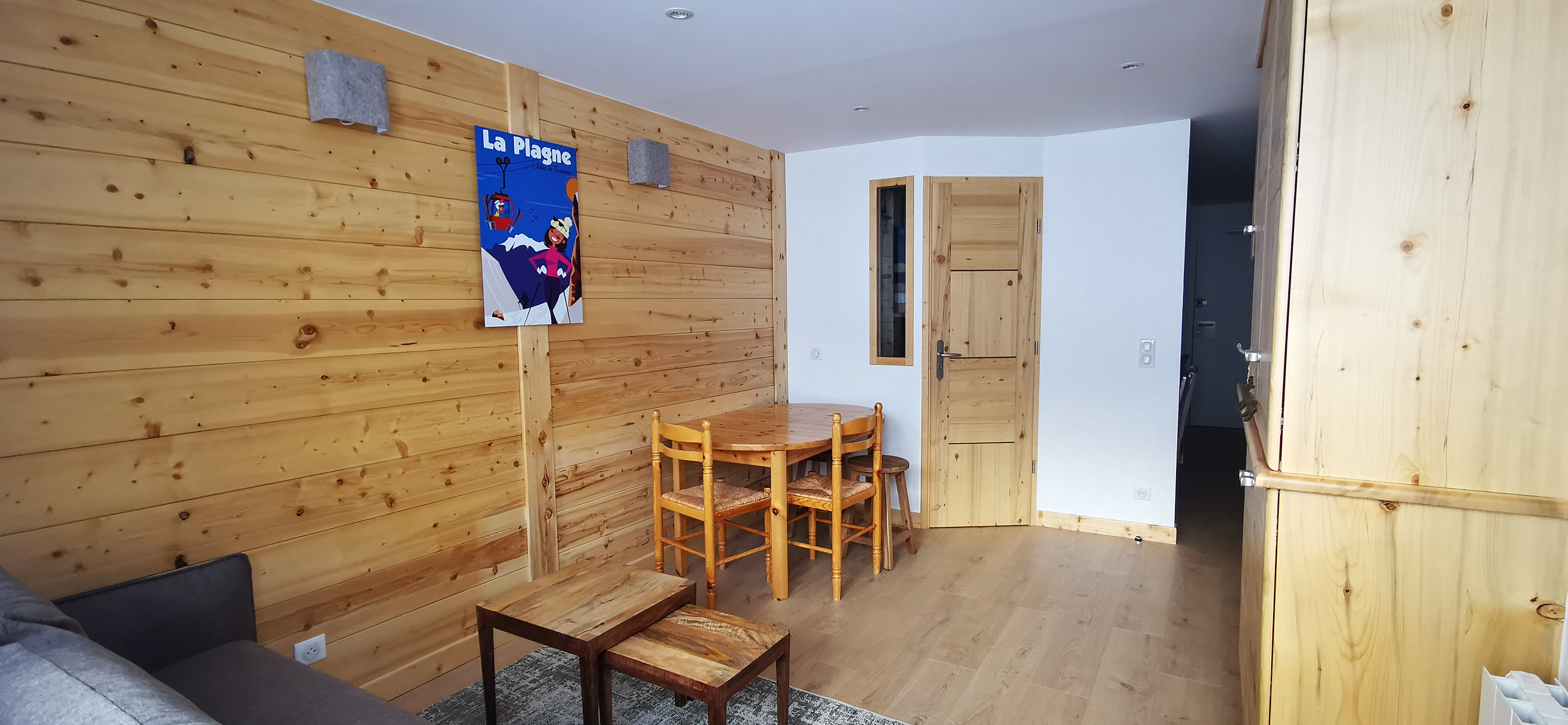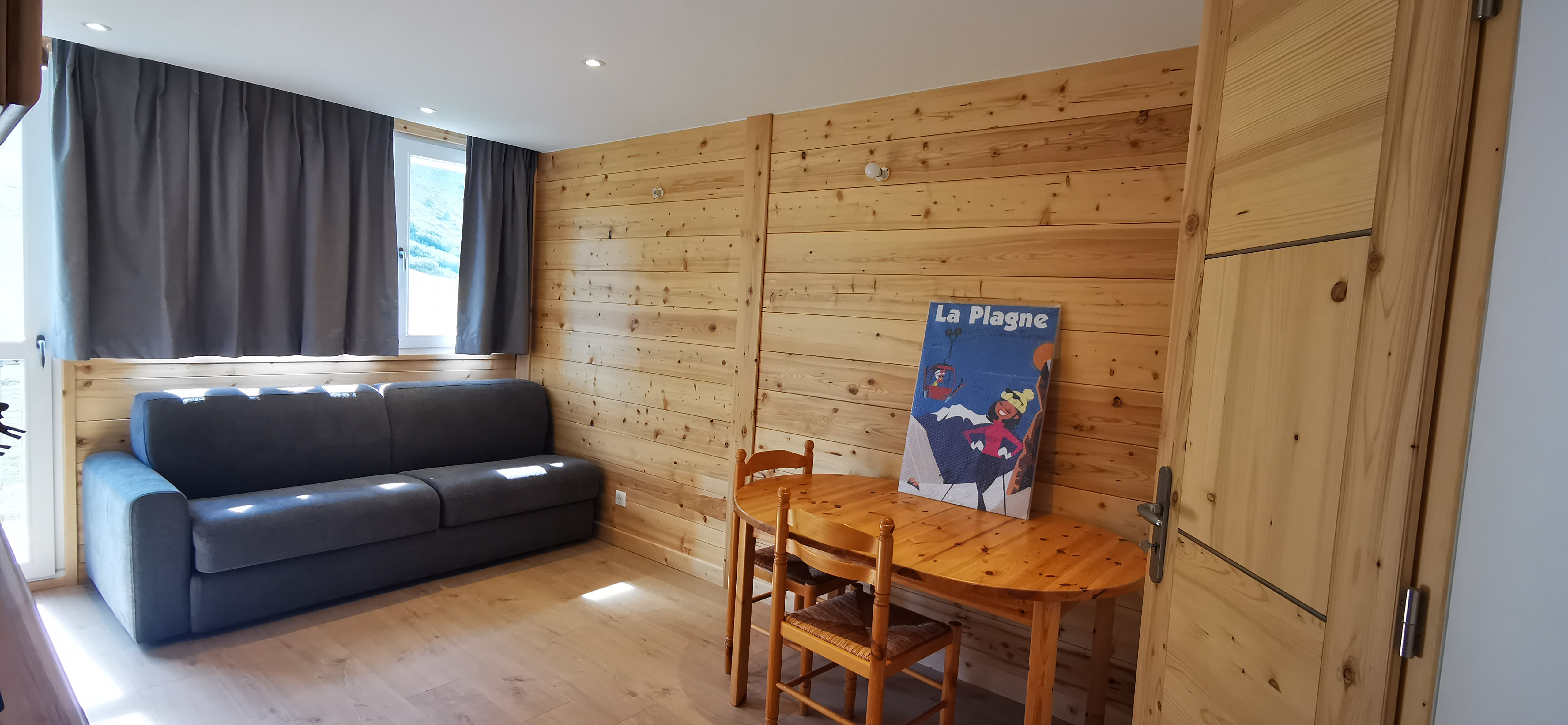 Ce très beau studio d'environ 26 m² entièrement rénové bénéficie d'un coin nuit fermé et d'un balcon exposé Sud/Ouest avec vue sur les pistes.