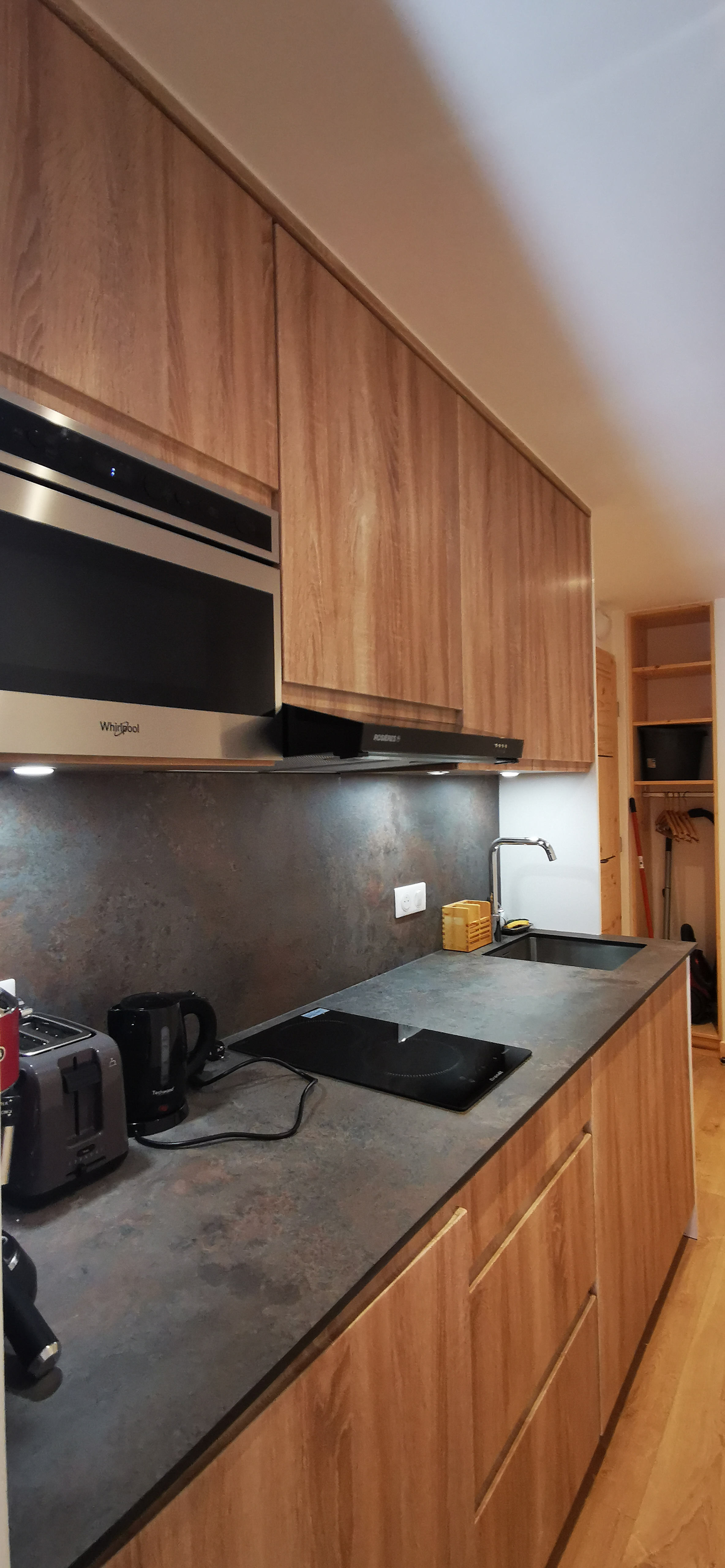 Cuisine : 2 Plaques induction, 1 micro ondes (mixte), 1 LV, 1 MO mixte, 1 hotte, cafetière PERCOLATEUR DELONGHI (cafe poudre)