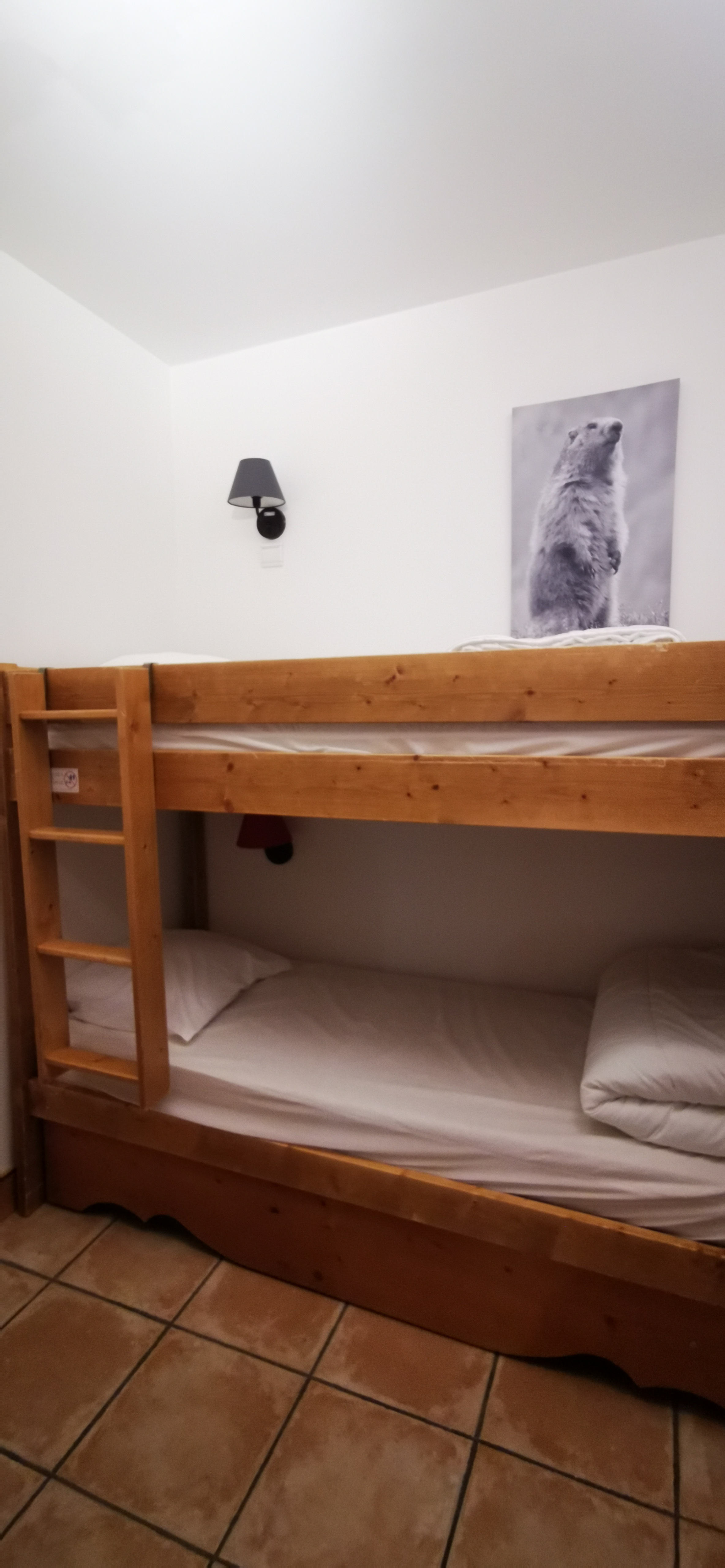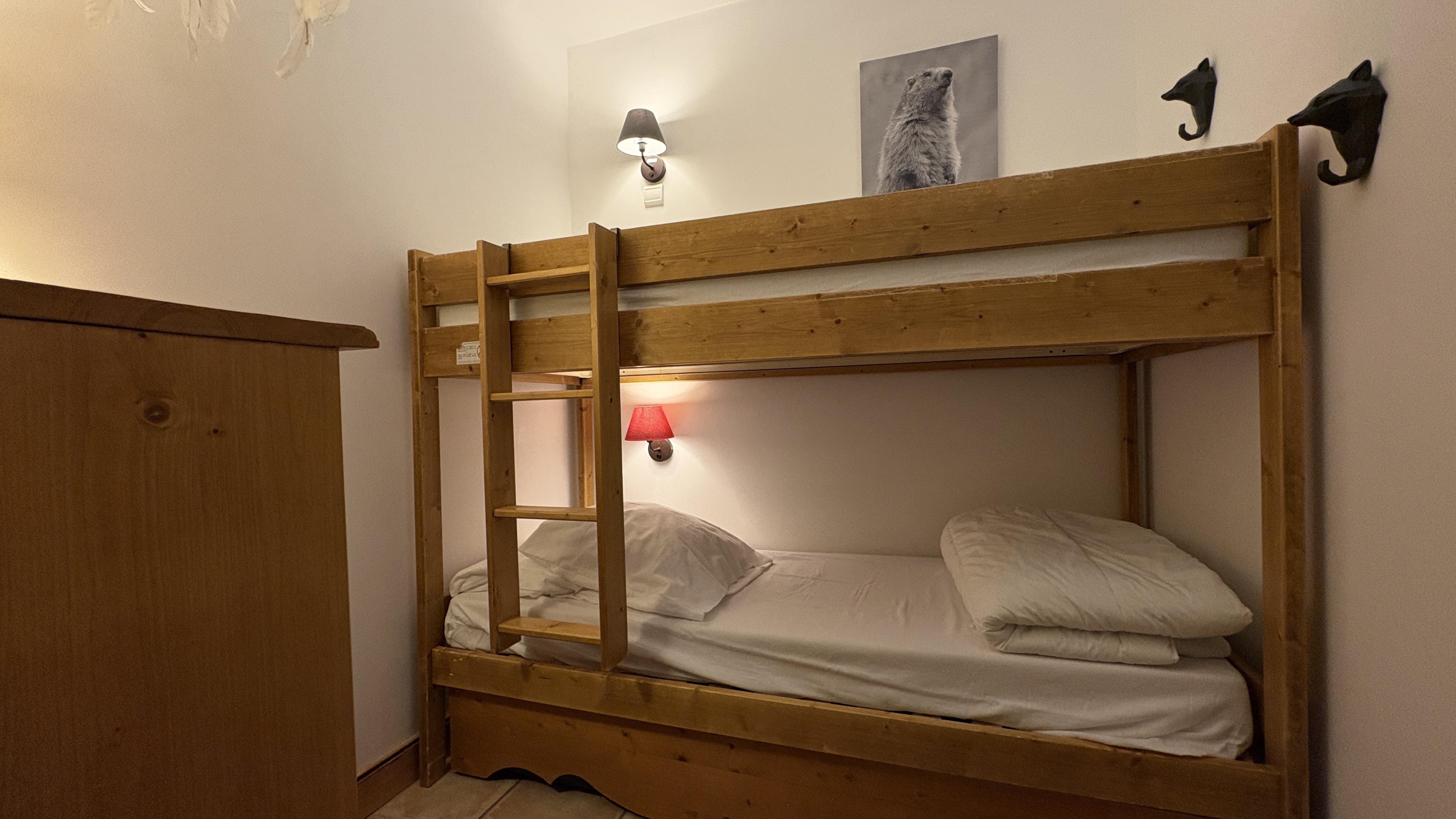 Chambre 2 : 2 Lits superposés + 1 lit gigogne (couettes)