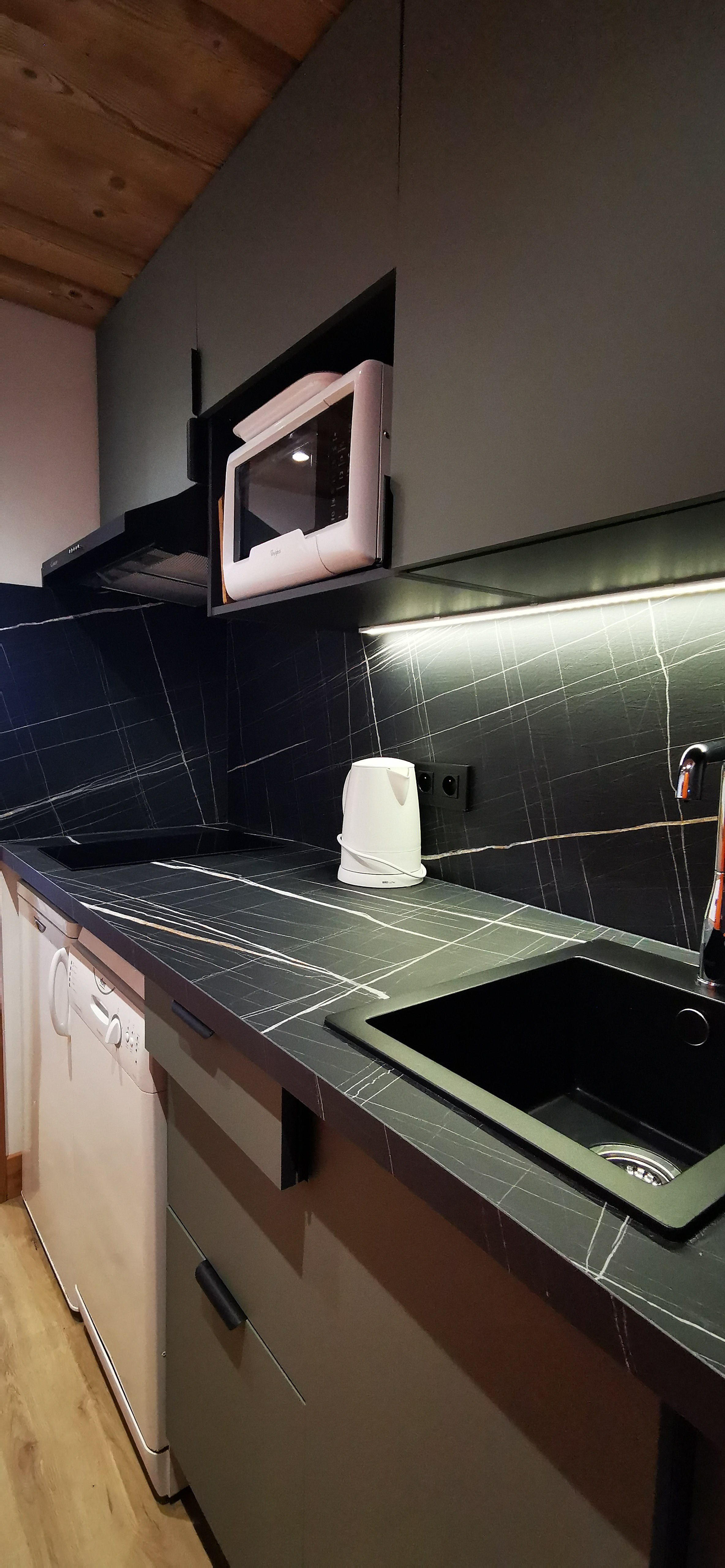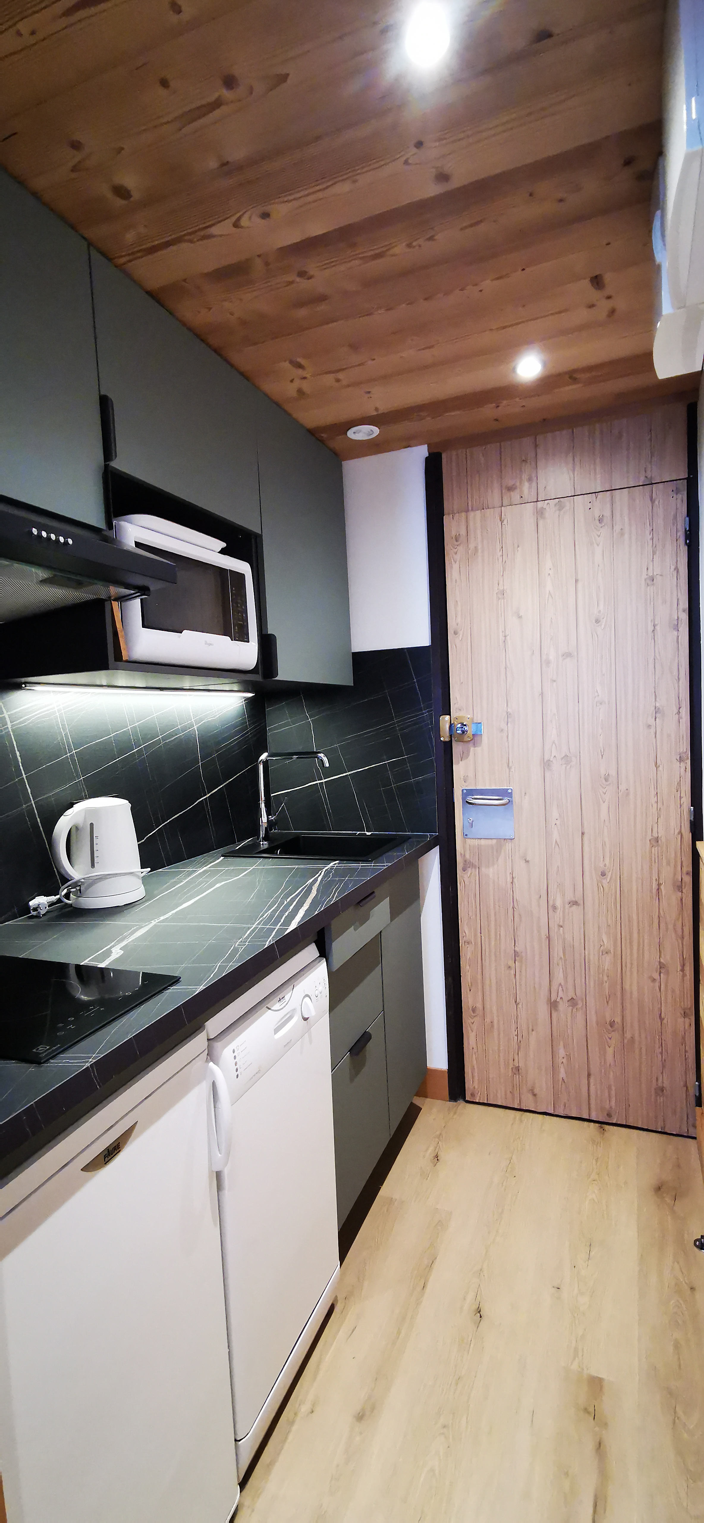 Cuisine : 2 Plaques vitro, 1 micro ondes (mixte), 1 LV, cafetière électrique