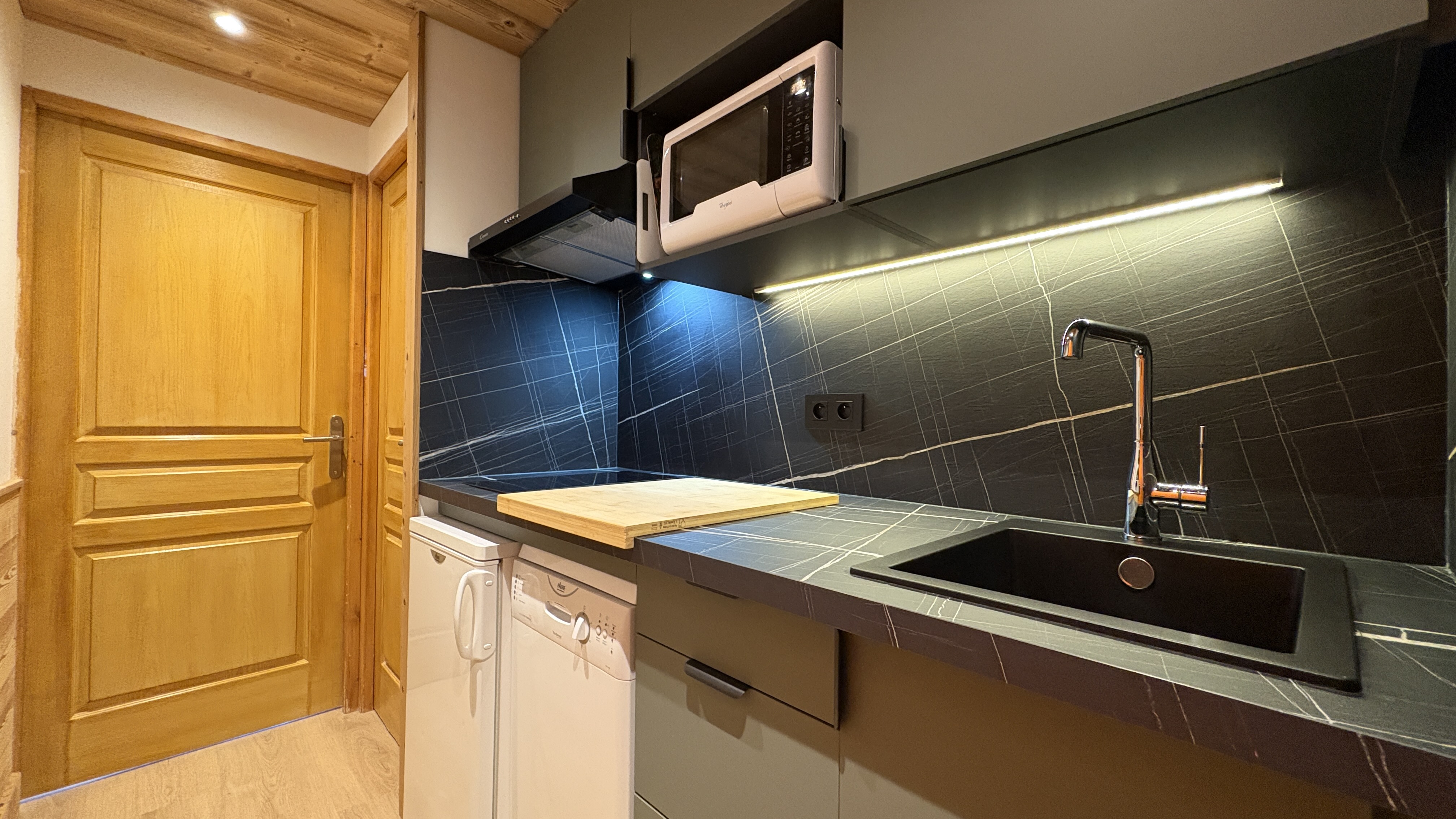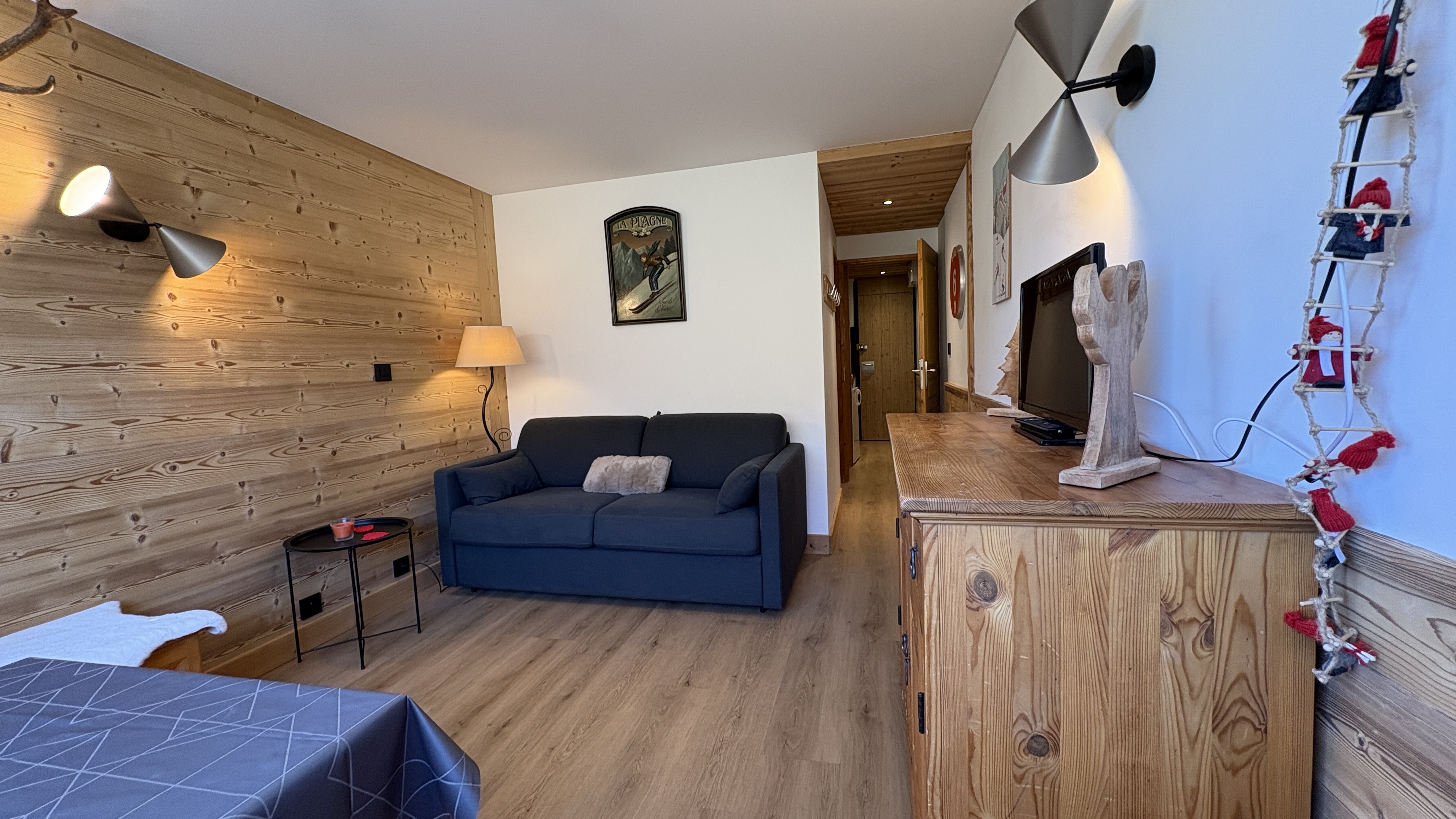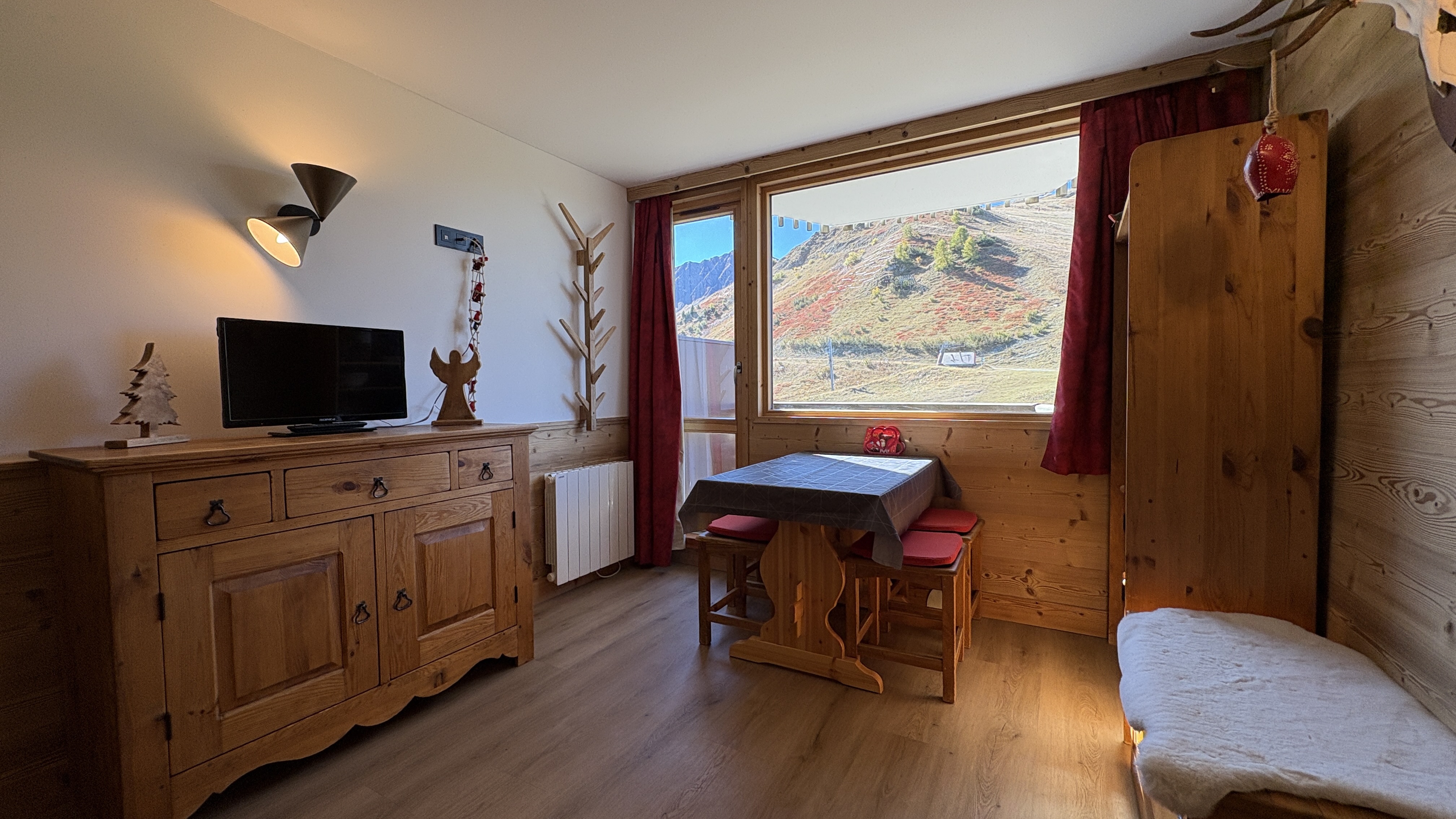 Ce très joli studio entièrement rénové bénéficie d'une petite chambre fermée et d'un balcon exposé Sud/Ouest avec vue sur les pistes.