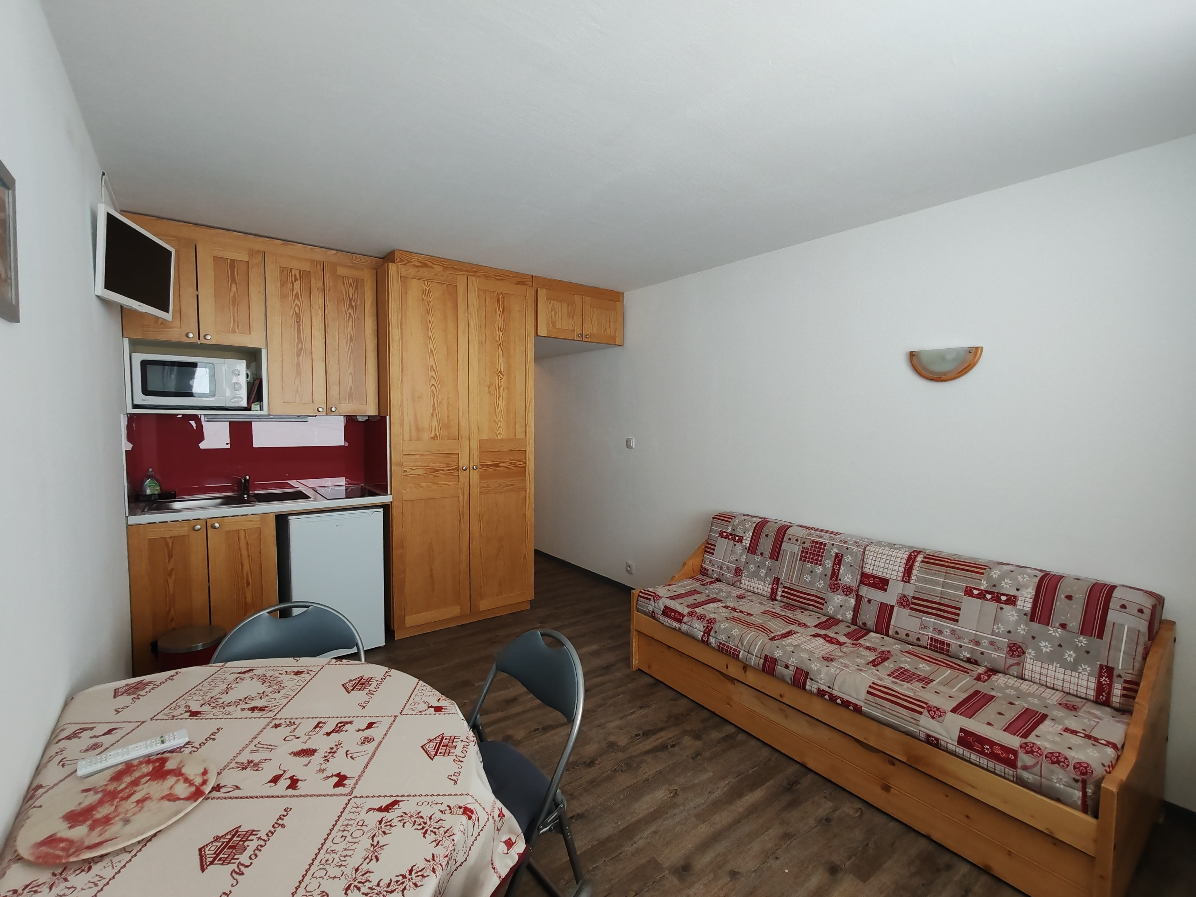 Ce joli studio d'environ 20m² équipé pour 2/3 personnes est situé dans la Résidence AIME 2000-FLECHE. Résidence au pied des pistes bénéficiant d'une galerie commerciale centrale avec tous les commerces à bord.