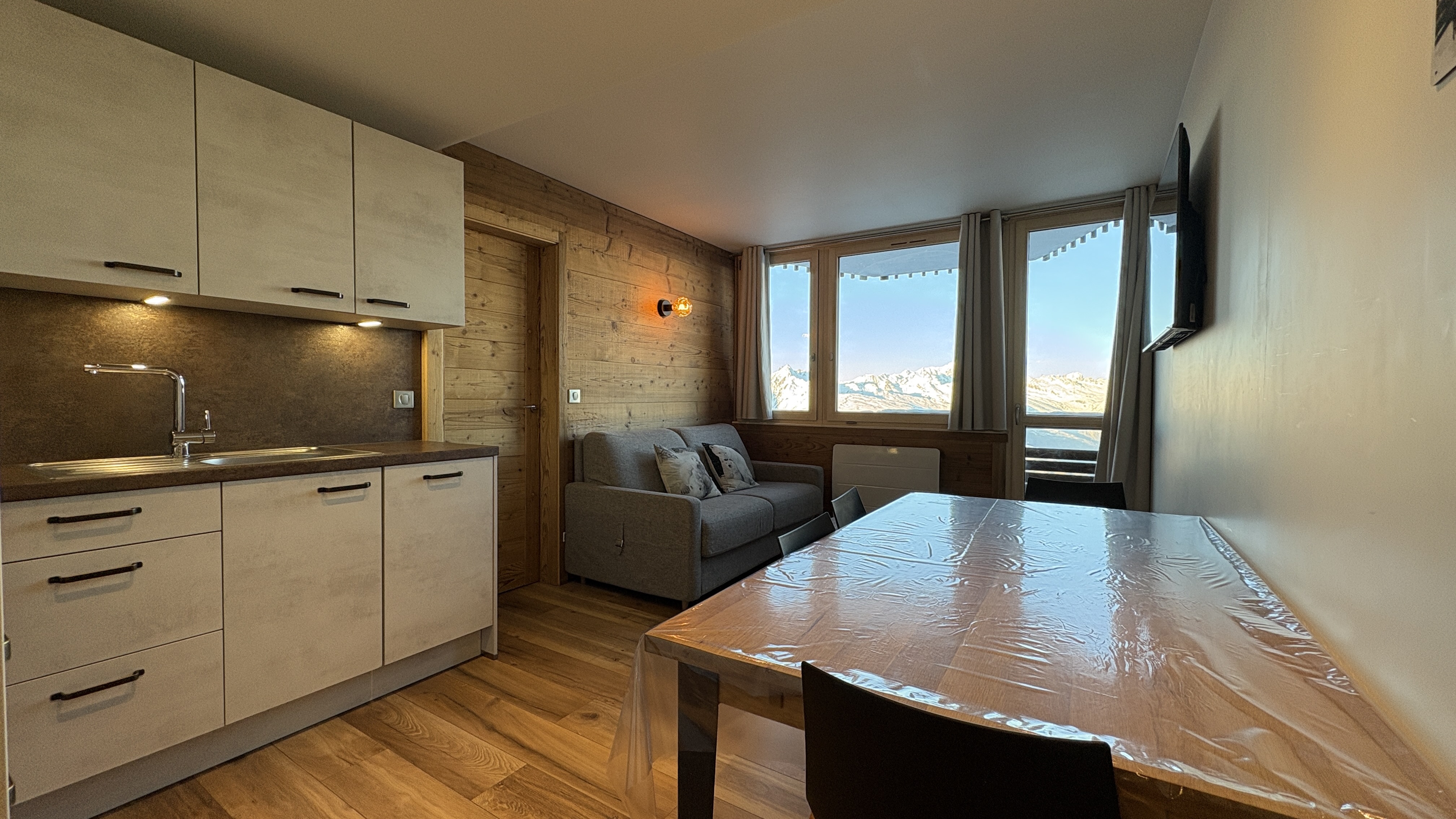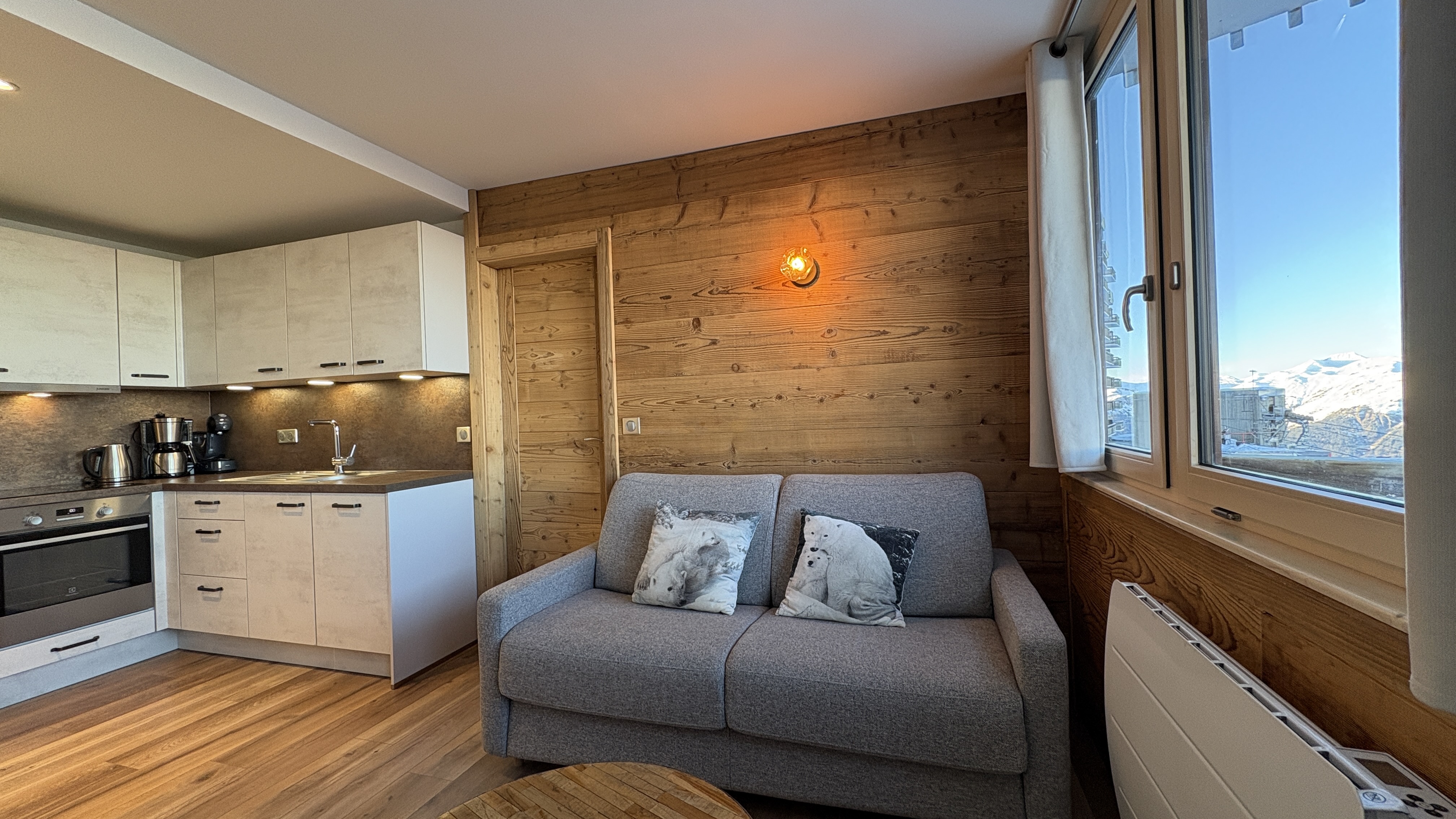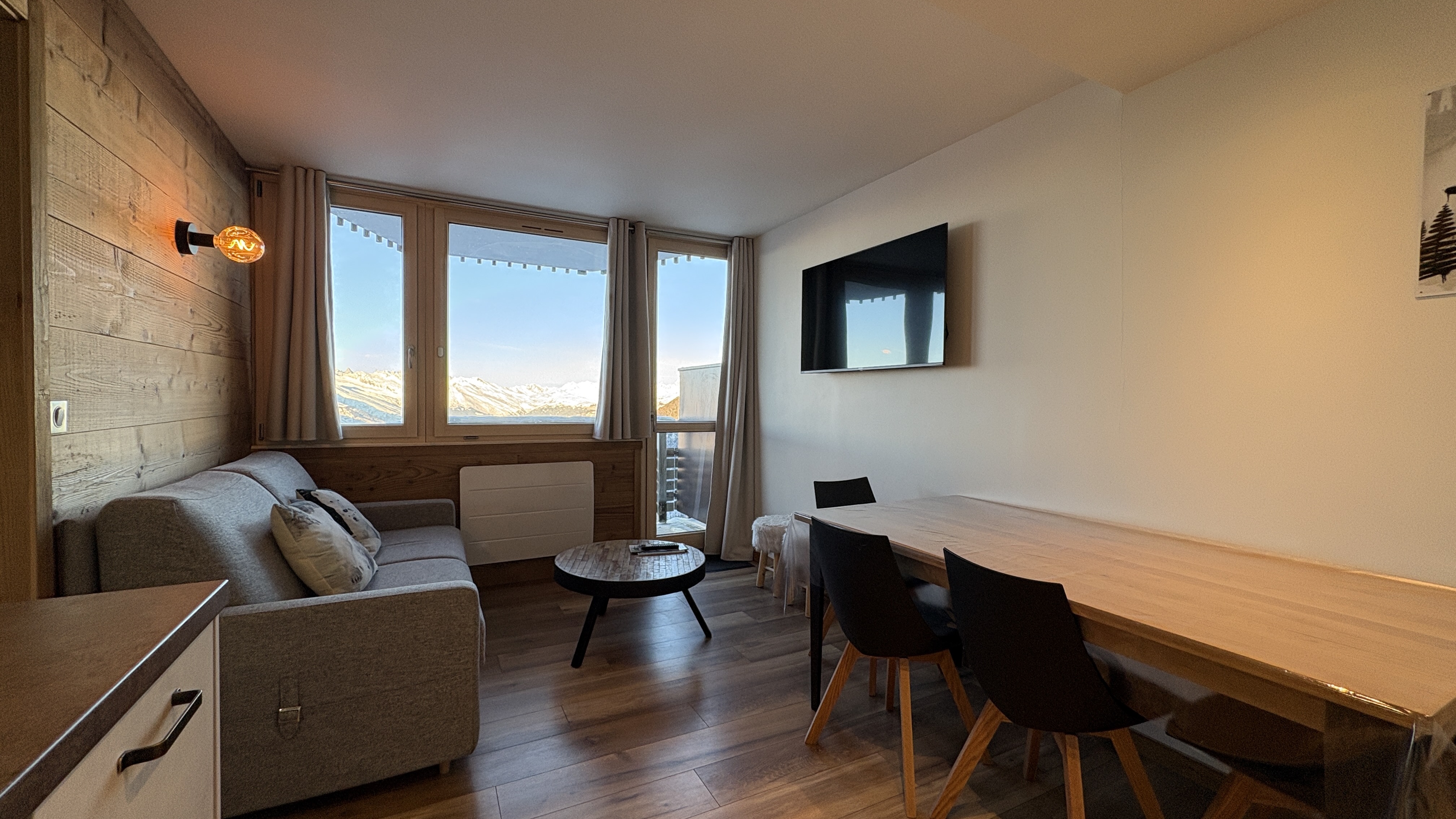 Immeuble situé au pied des pistes avec un départ direct vers 4 directions et stations différentes qui bénéficie d'une Galerie Commerciale intérieure avec tous ses commerces, loisirs et services à bord et qui est également reliée à la station de Plagne Centre par le Télémétro (6mns).