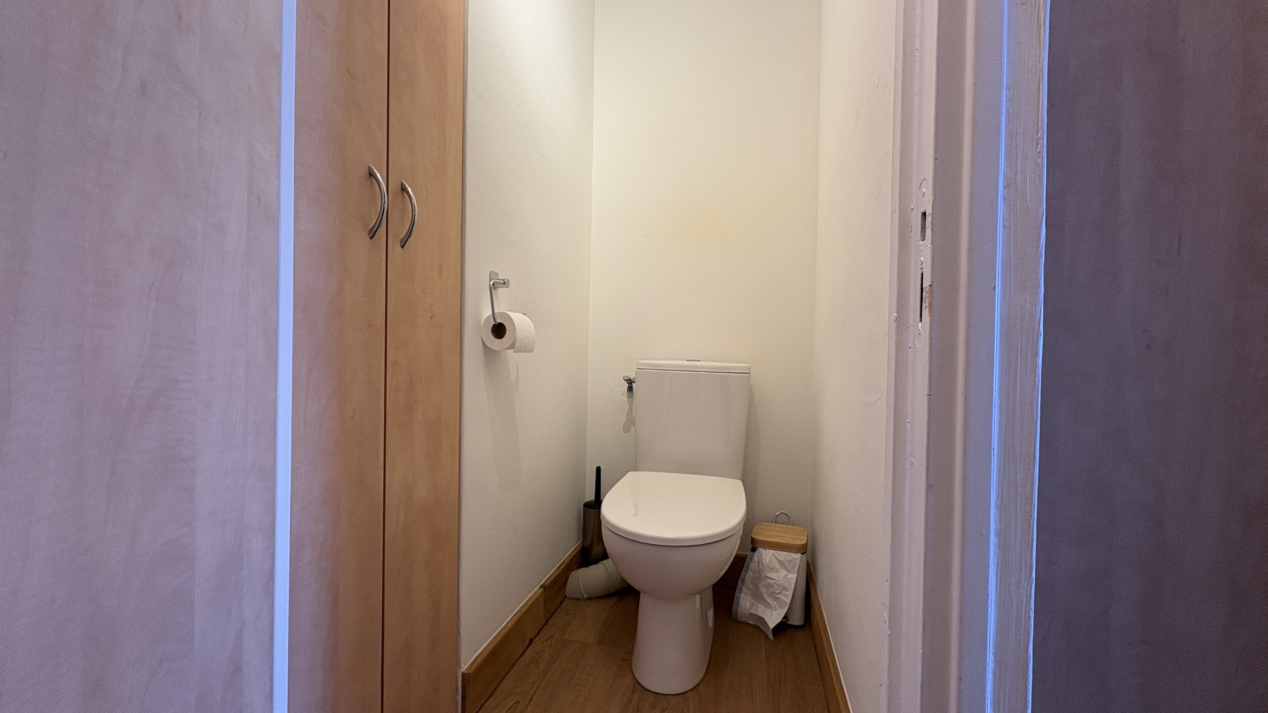 Chambre 2 : 1 lit double en 140 + TV + salle bains avec douche et WC indépendants (couette)