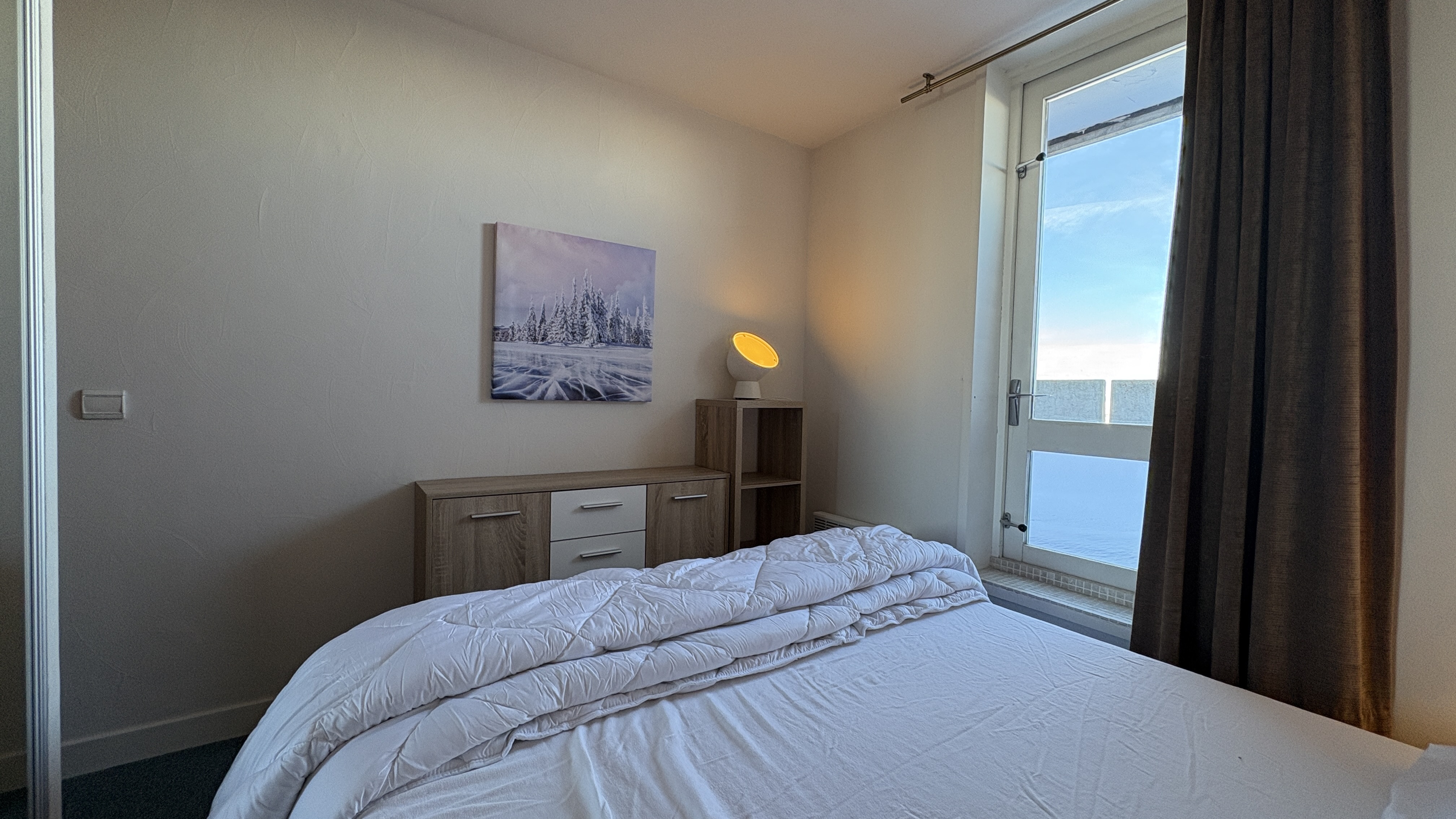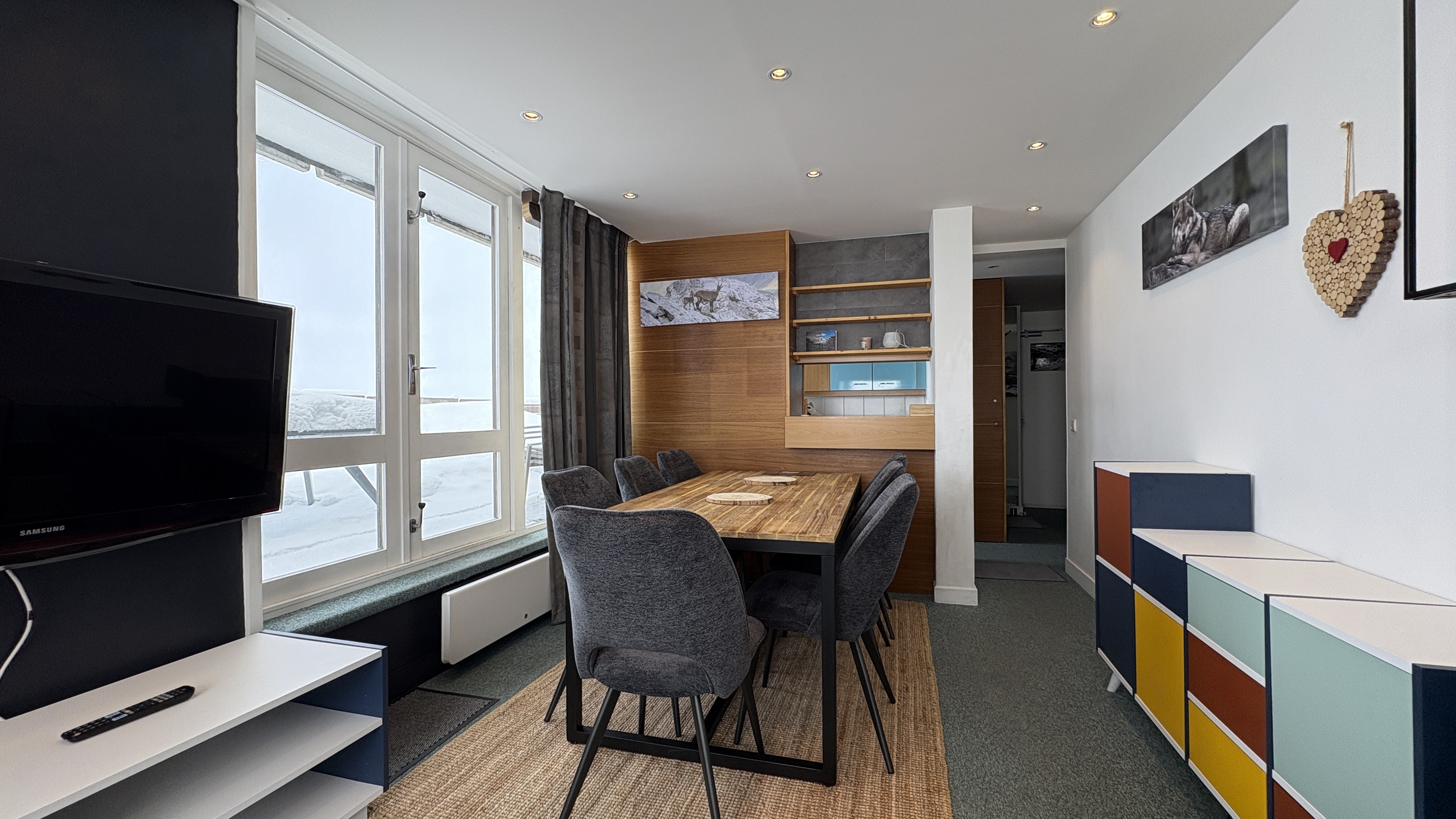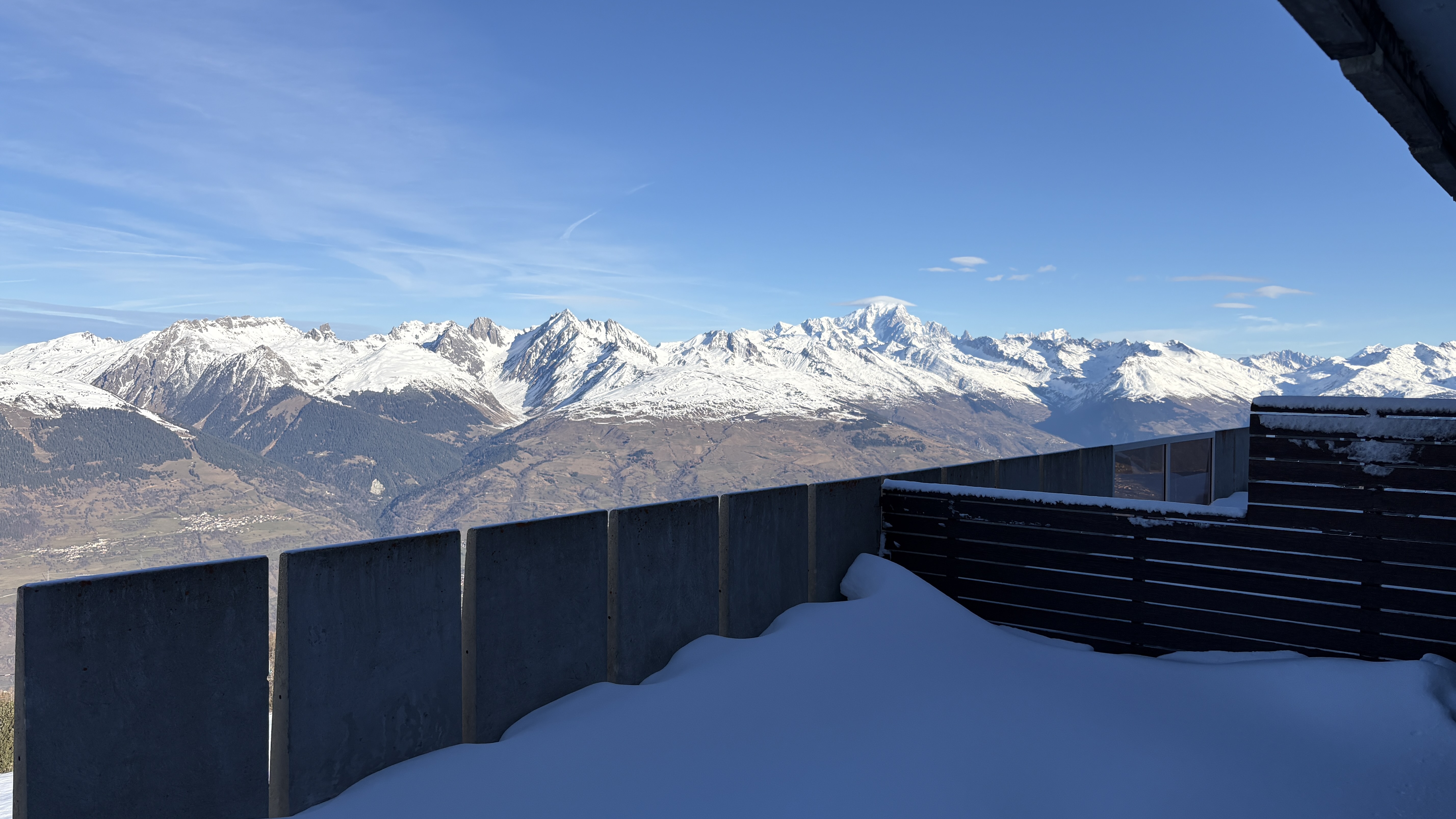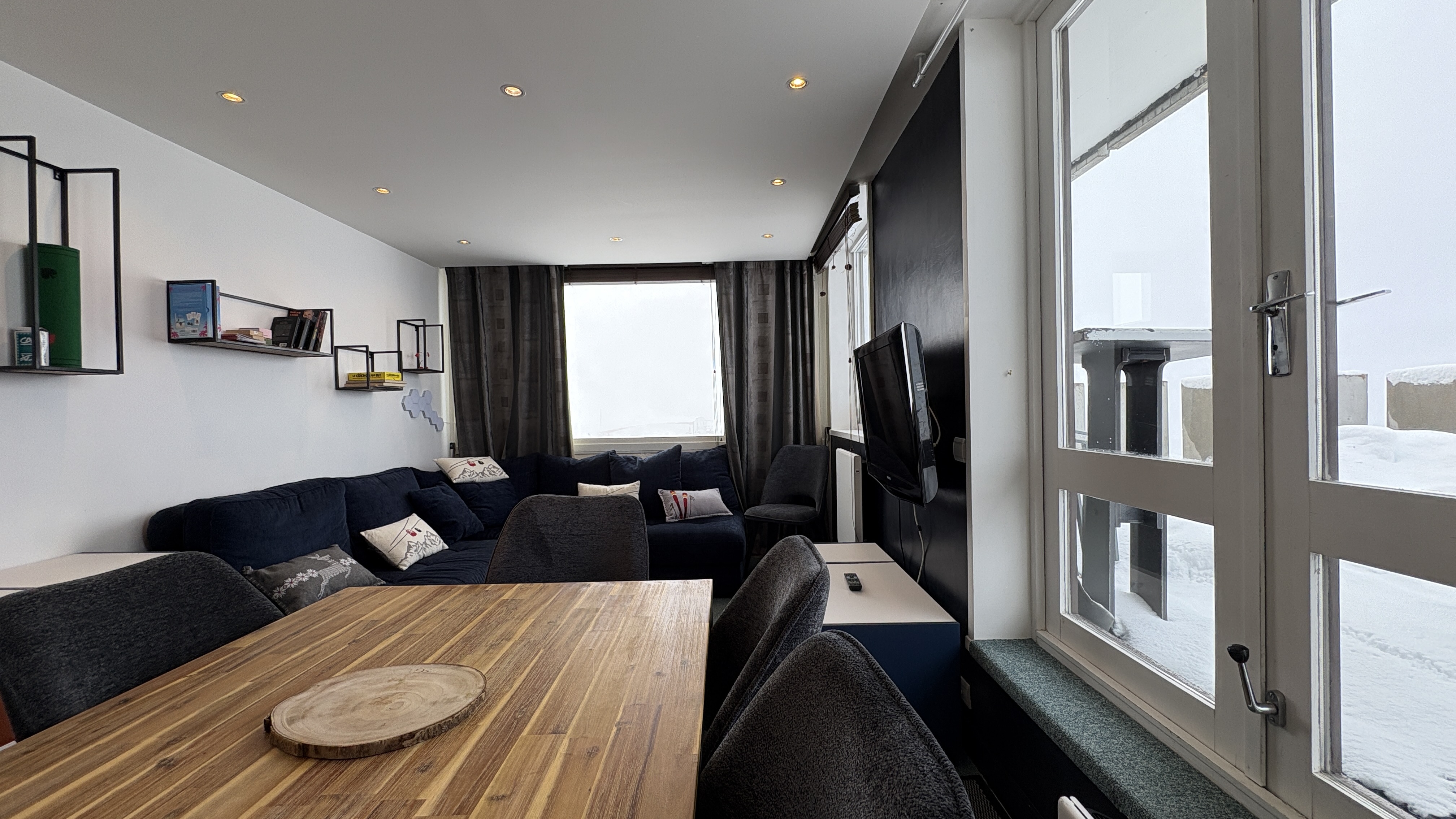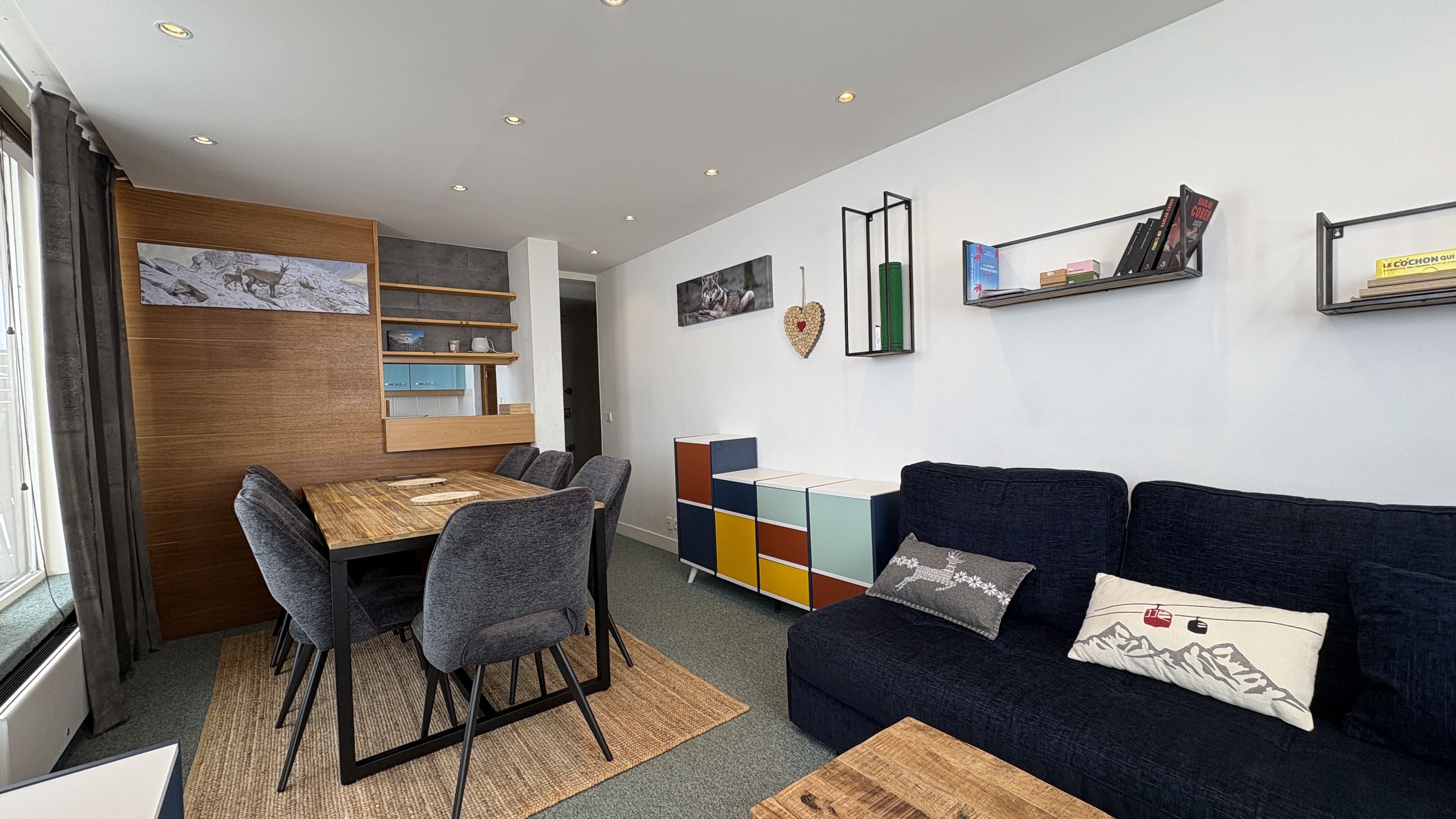 Appartement 3 pièces d'environ 52M² bénéficiant d'une grande terrasse double exposition Sud/Ouest/Ouest, étage élevé, vue pistes et Mont-Blanc.