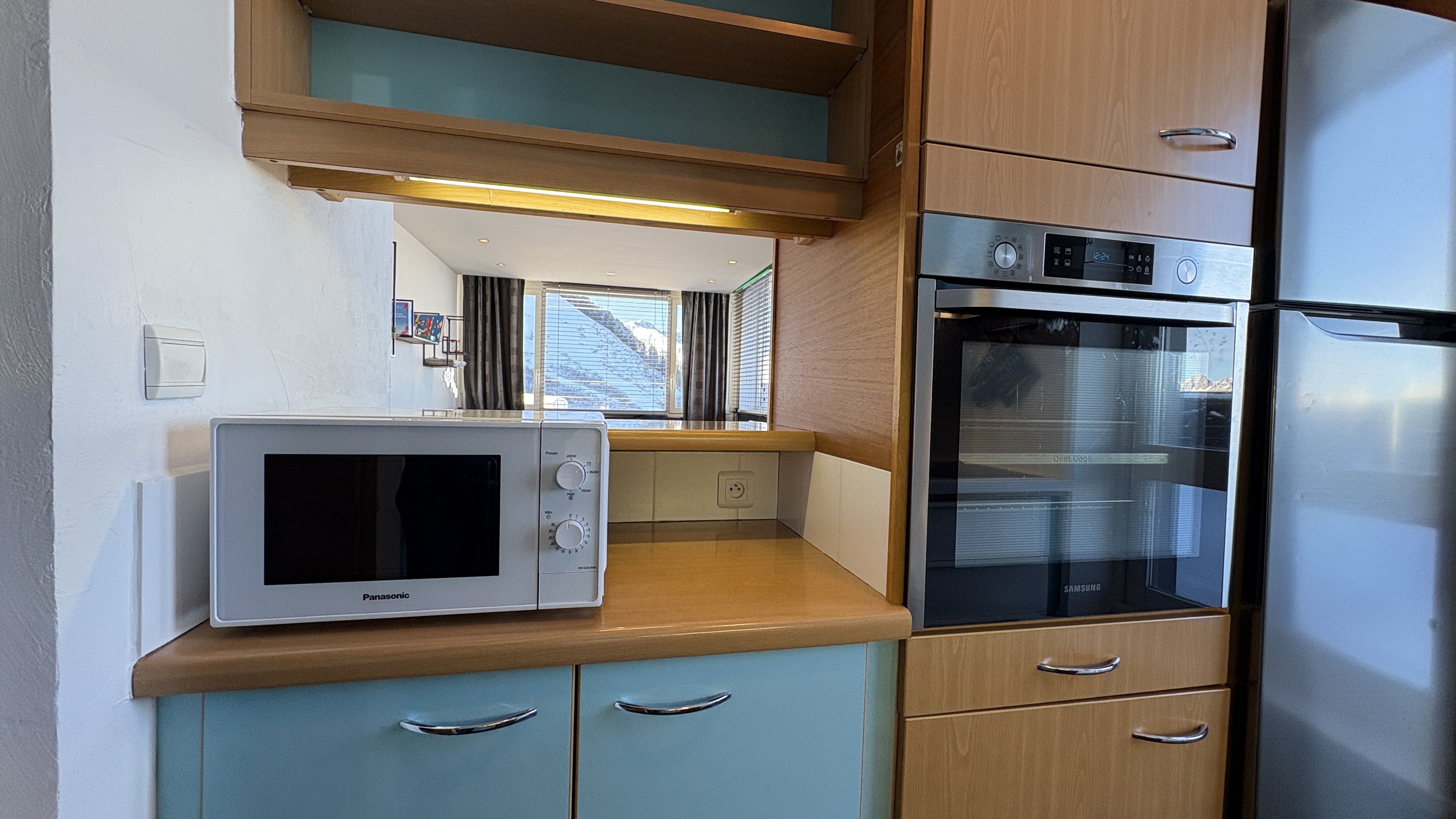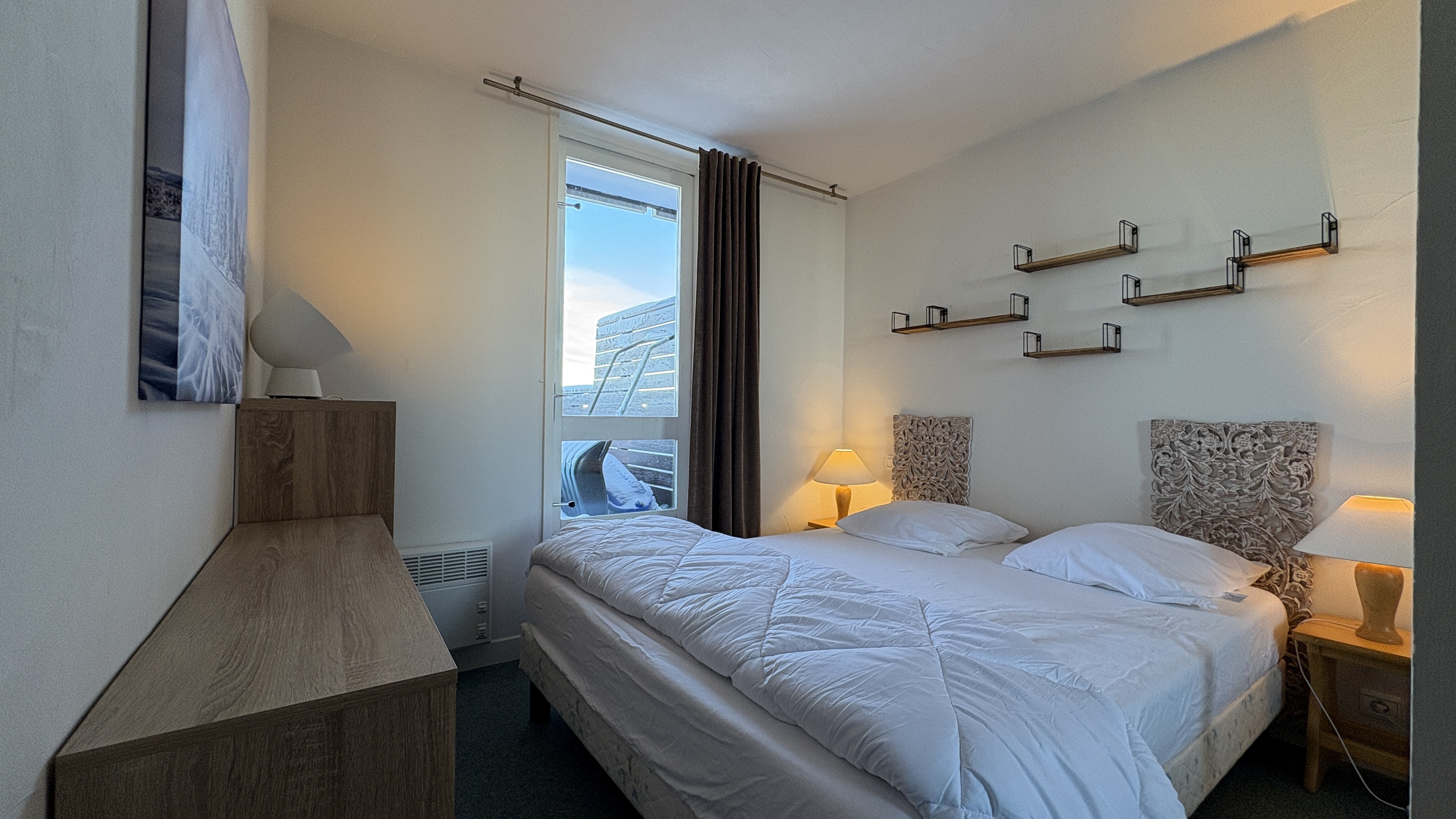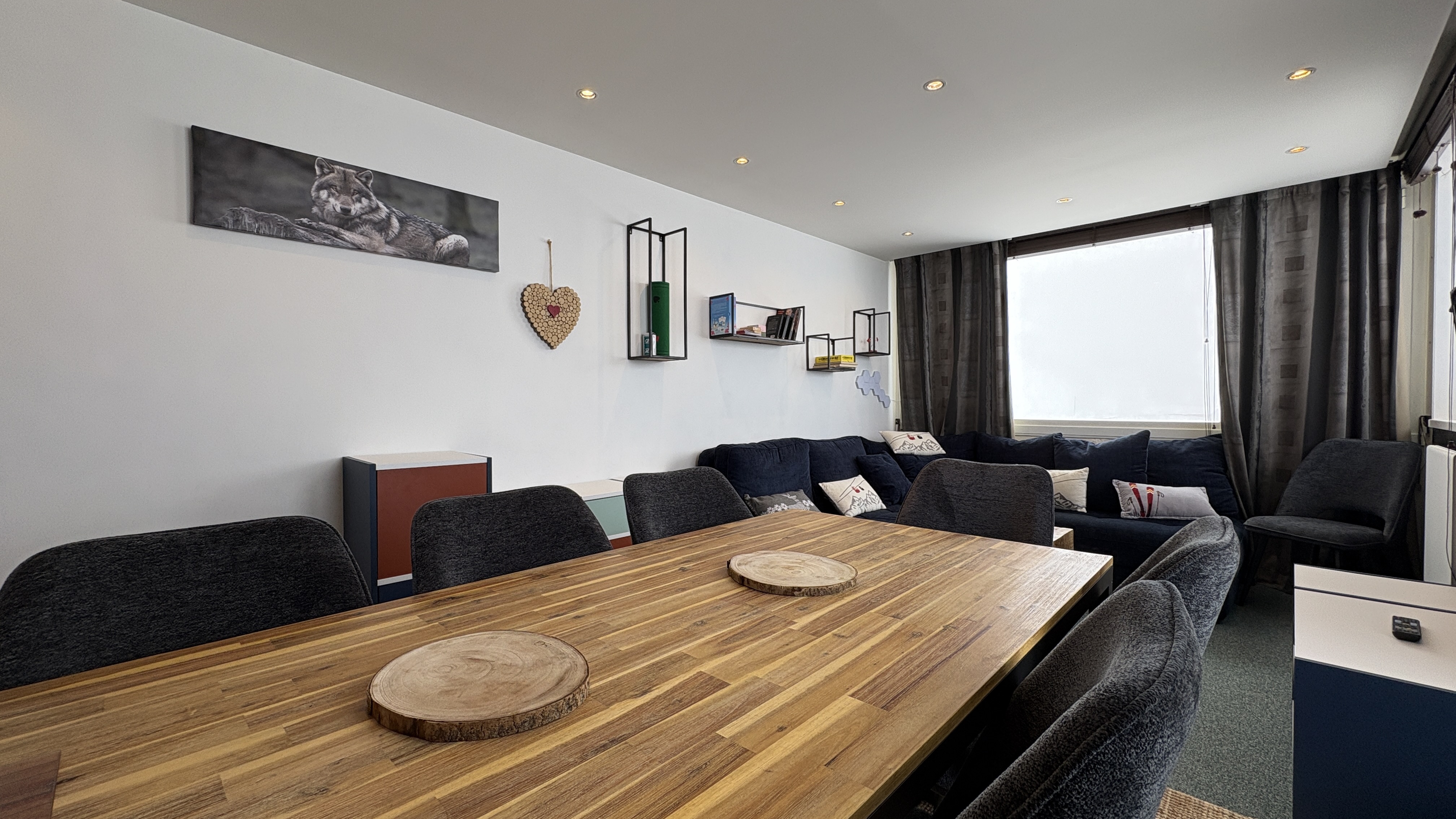 Immeuble situé au pied des pistes avec un départ direct vers 4 directions et stations différentes qui bénéficie d'une Galerie Commerciale intérieure avec tous ses commerces, loisirs et services à bord et qui est également reliée à la station de Plagne Centre par le Télémétro (6mns).