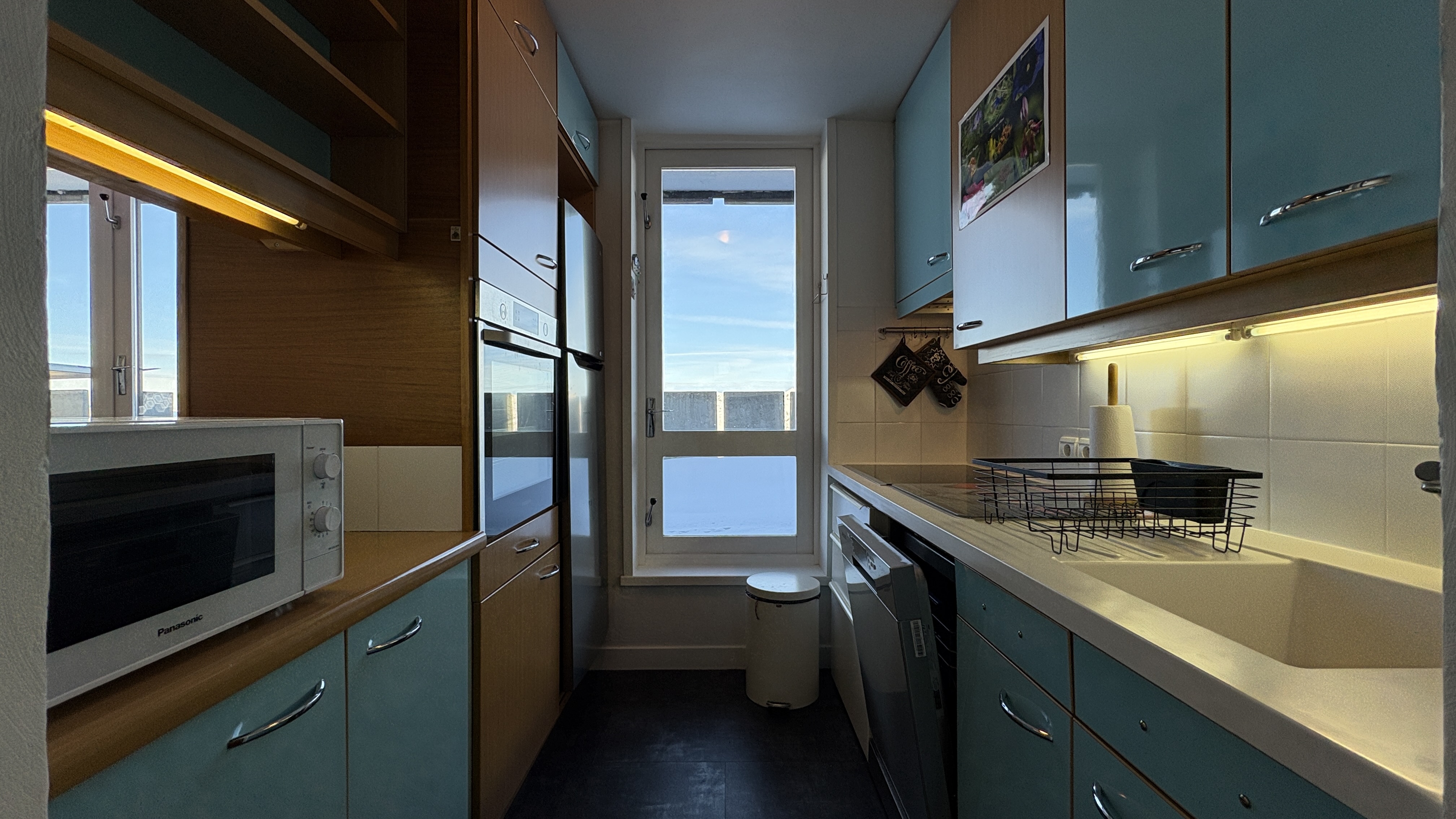 Cuisine : 3 plaques induction, 1 four, 1 micro-ondes, 1 hotte, 1 grand frigo + congélateur, 1 lave vaisselle, 1 grille pain, 1 cafetière électrique,1 cafetière SENSEO