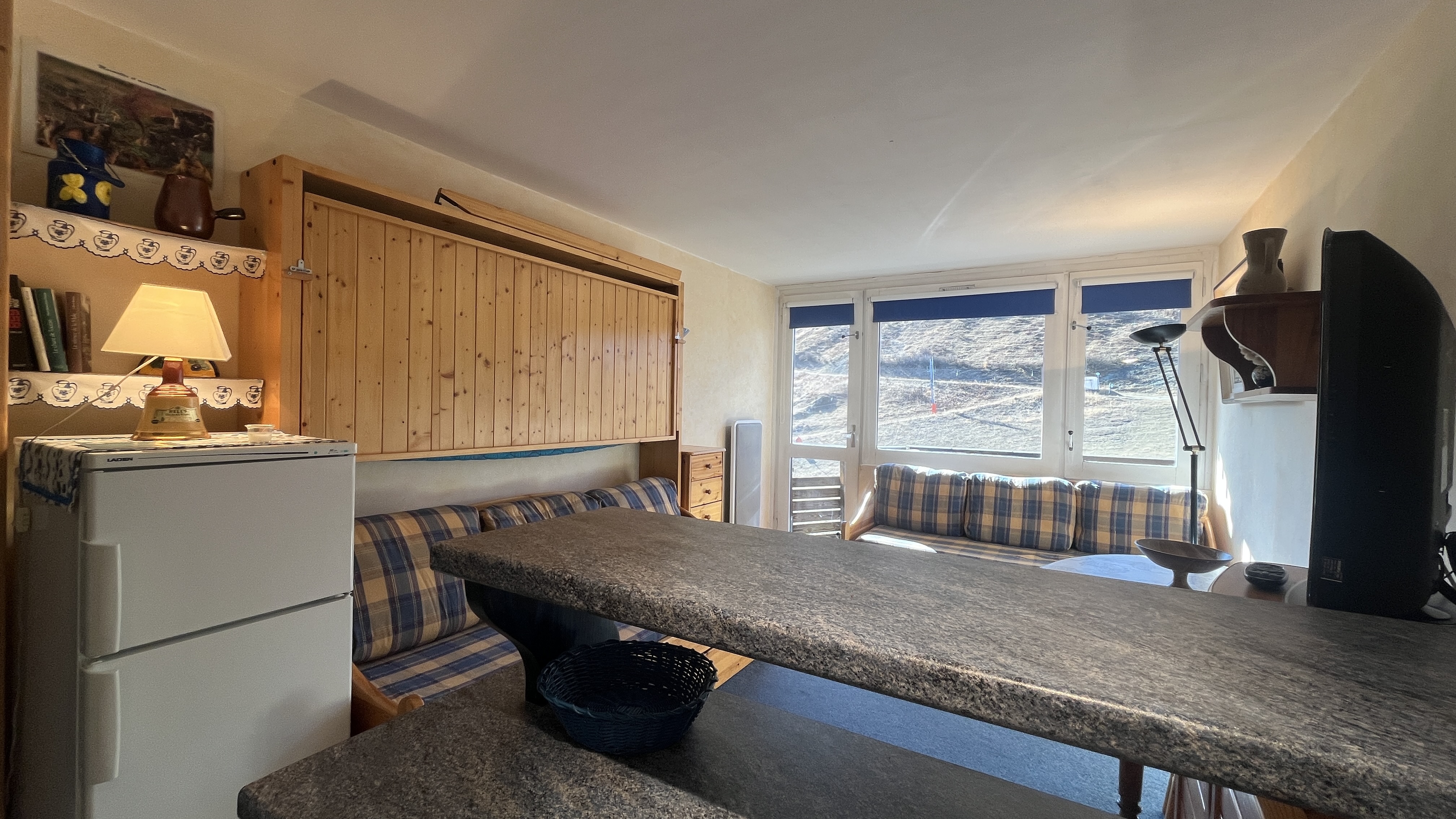 Ce studio d'environ 26 m² rénové bénéficie d'un balcon exposé Sud/Ouest avec vue sur les pistes.