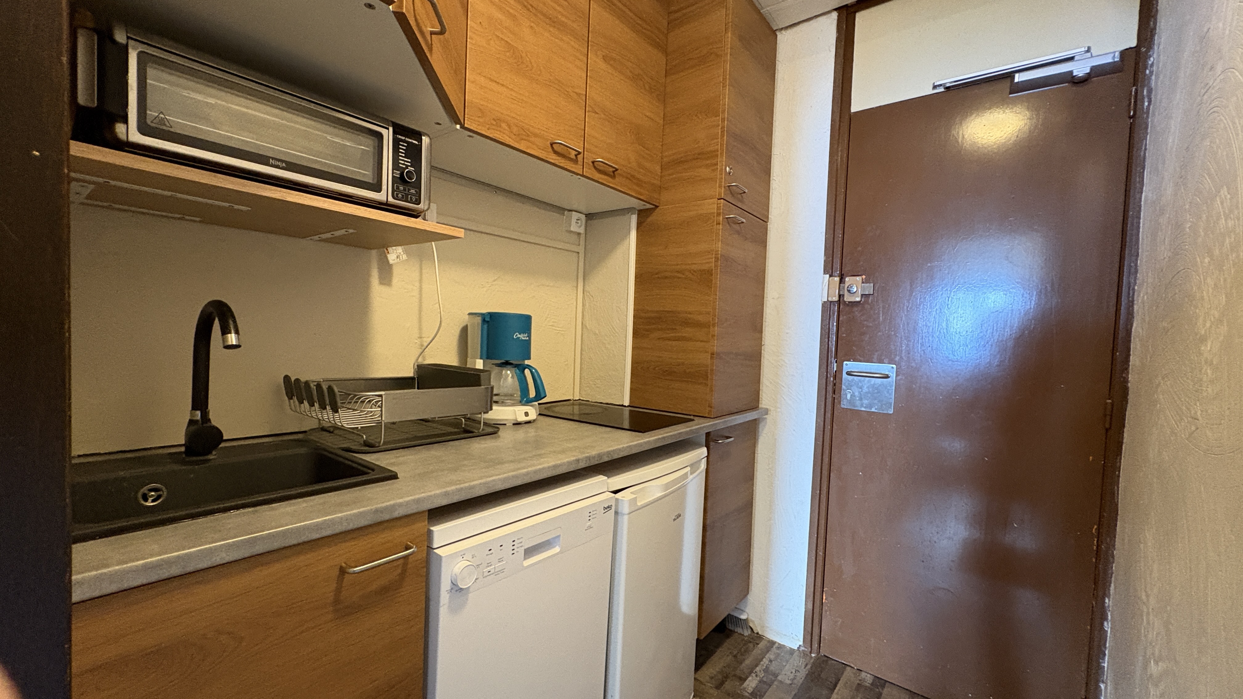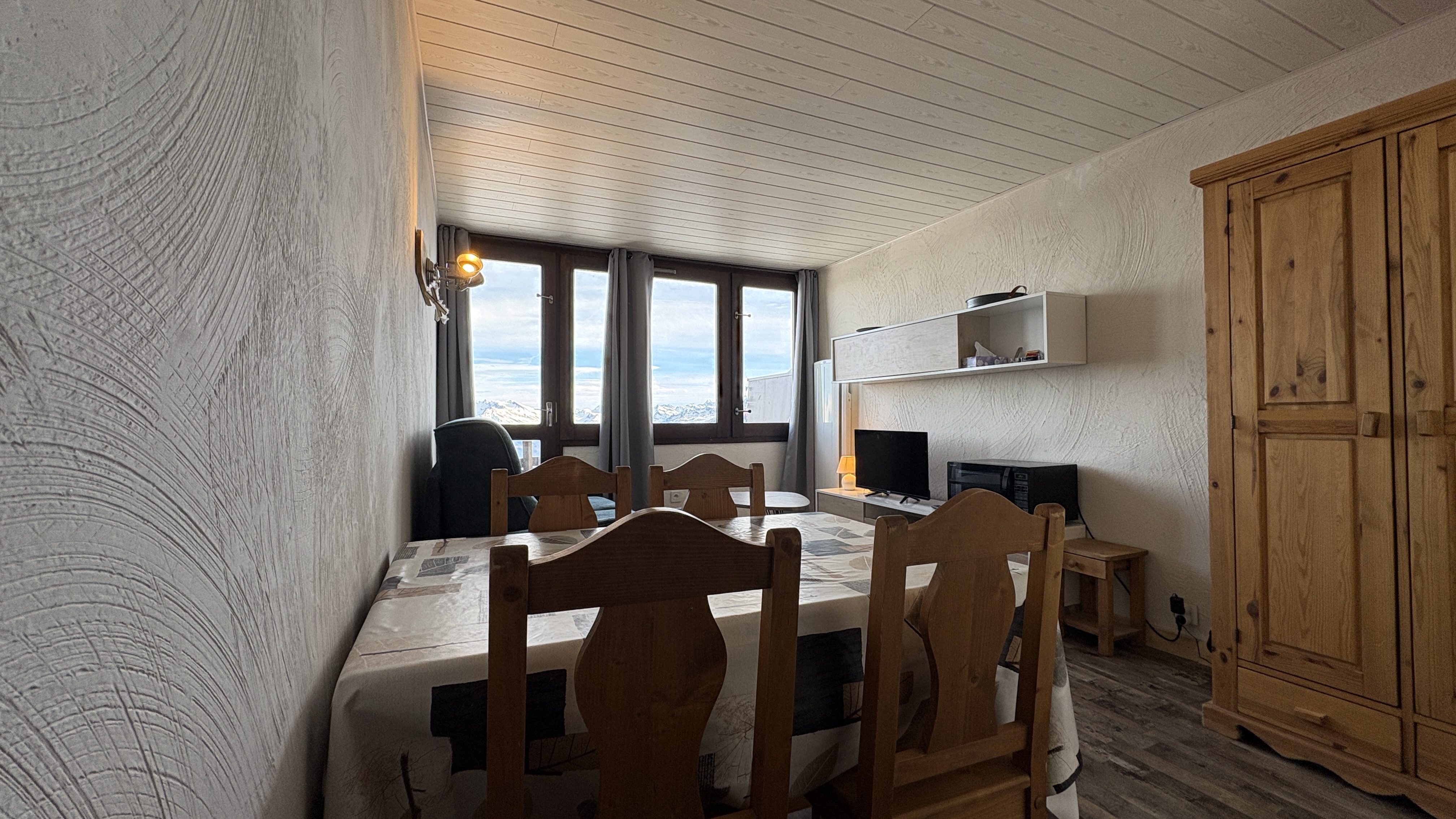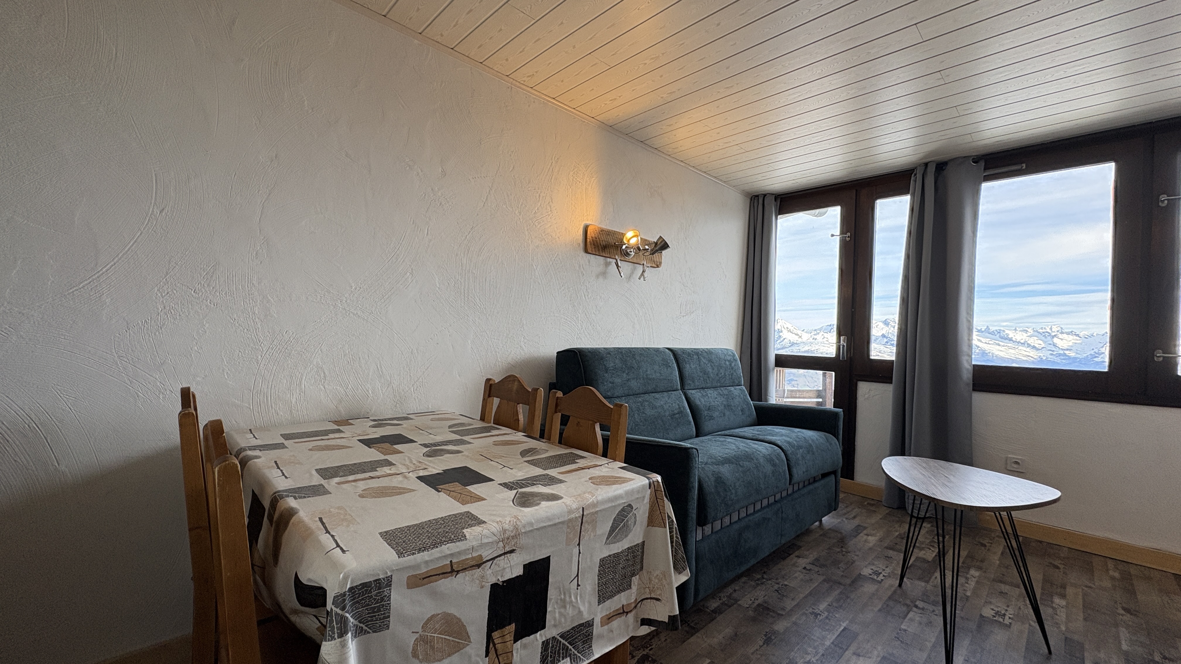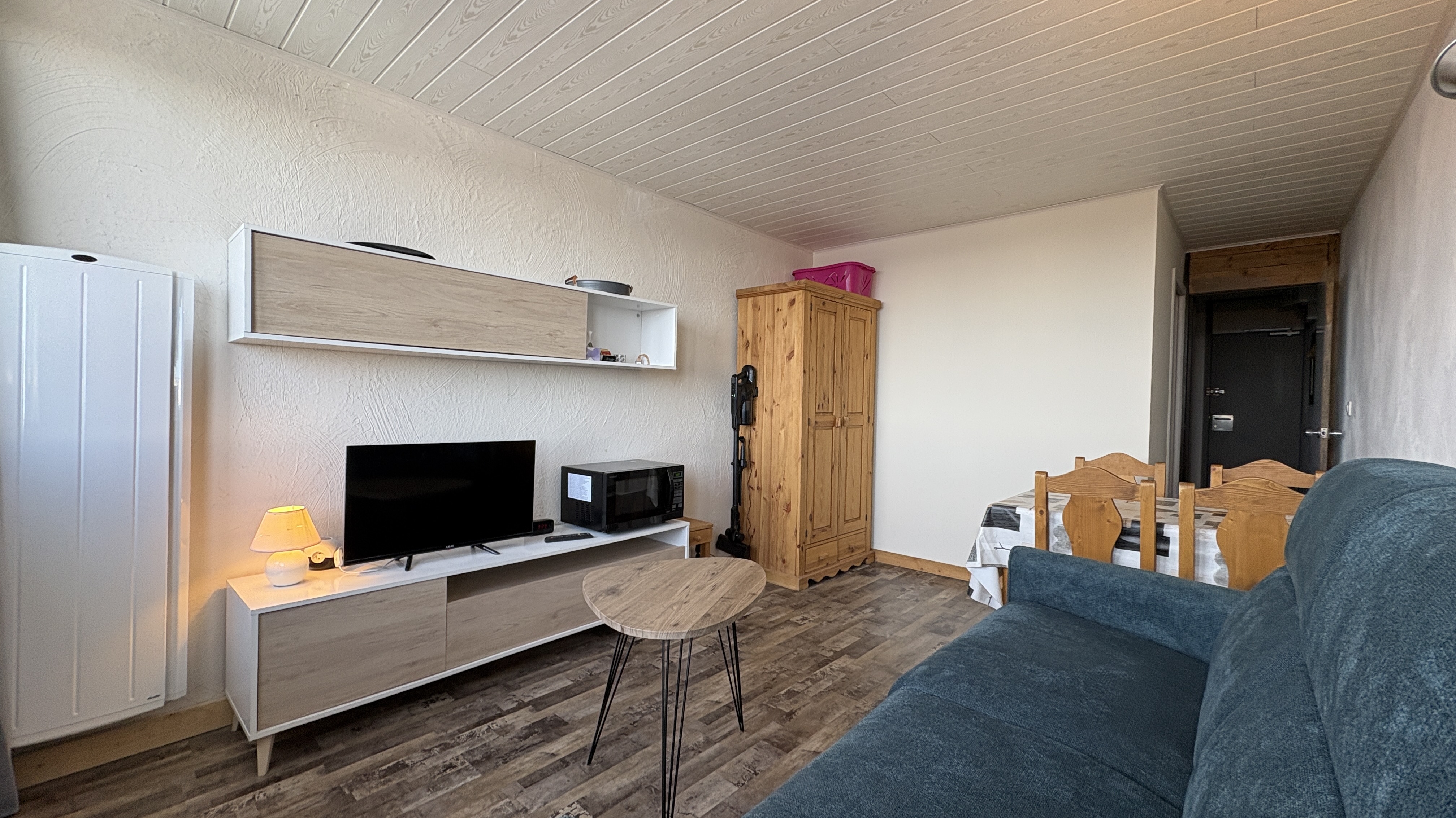 Joli studio d'environ 26 m² bénéficie d'un coin nuit fermé et d'un balcon exposé Nord/Est avec une magnifique vue sur le Mont-Blanc