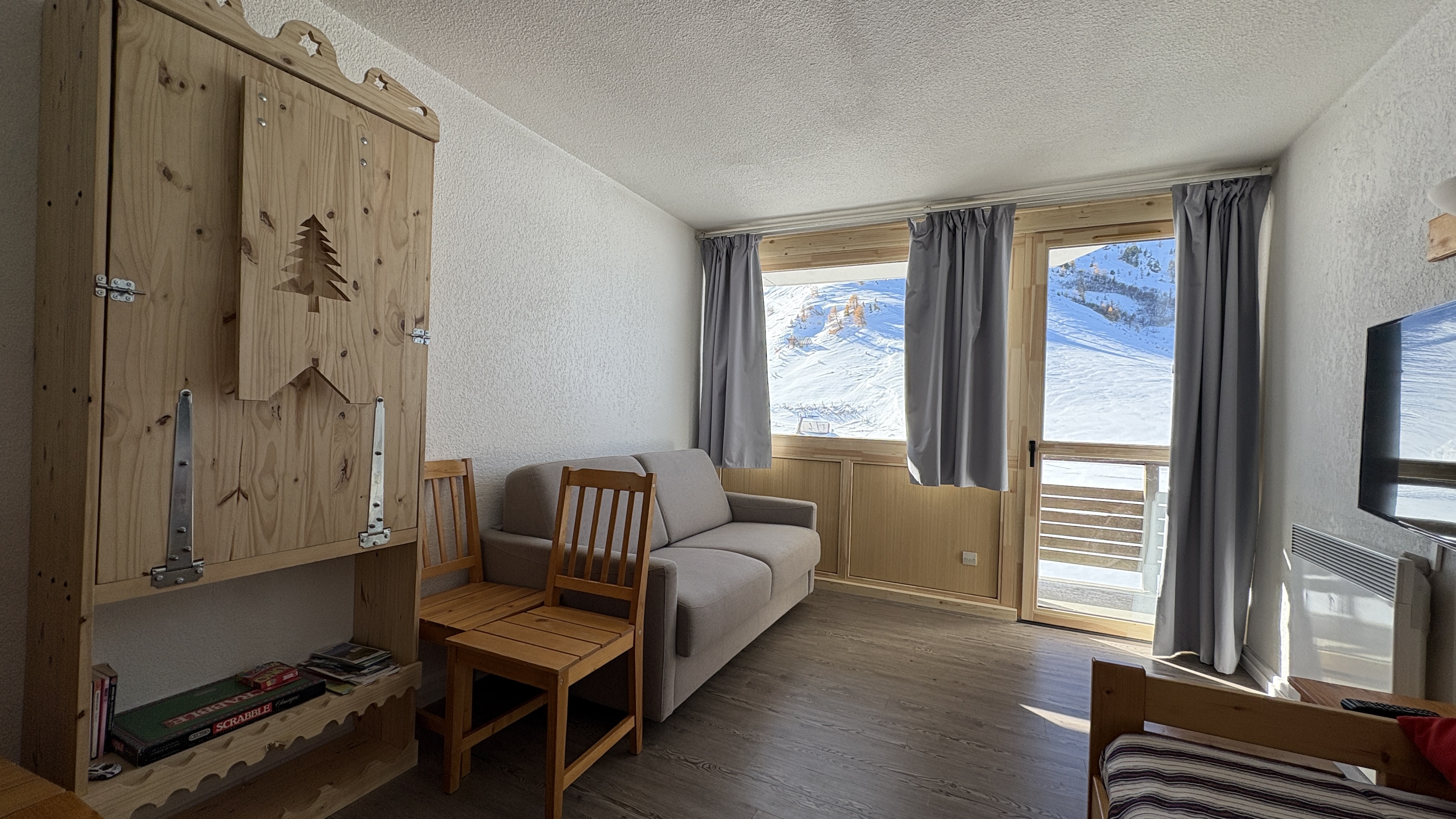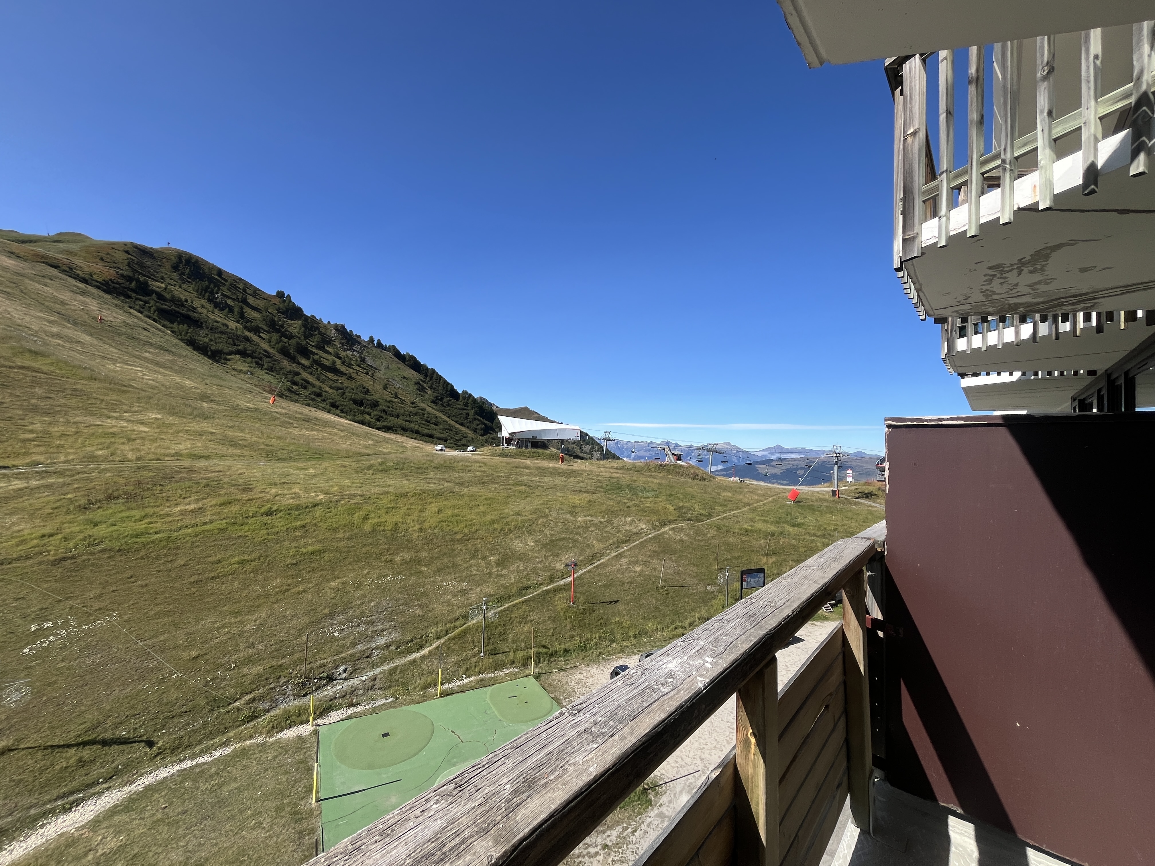 Balcon vue pistes , exposition Sud/Ouest. Accessible en fauteuil