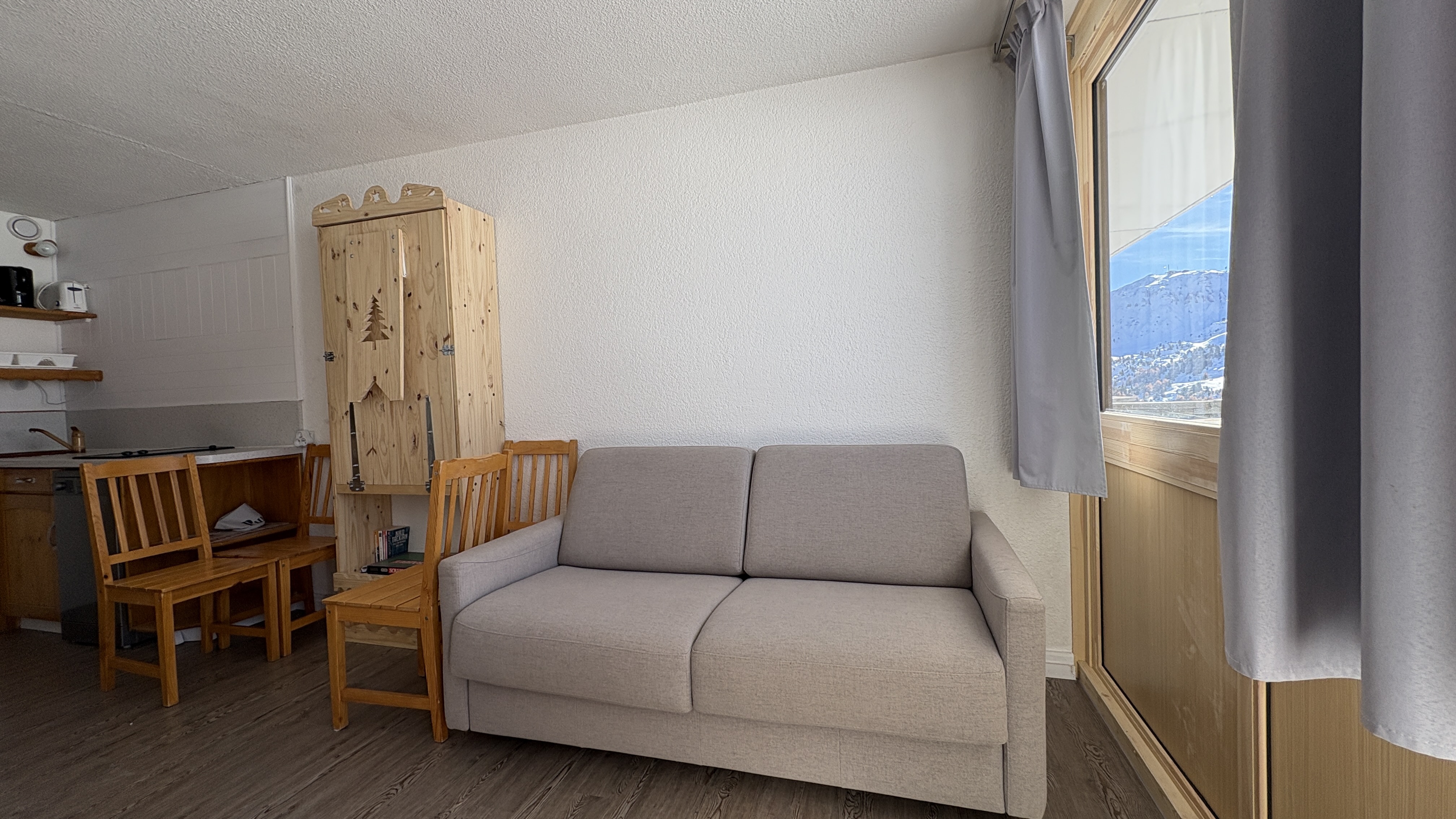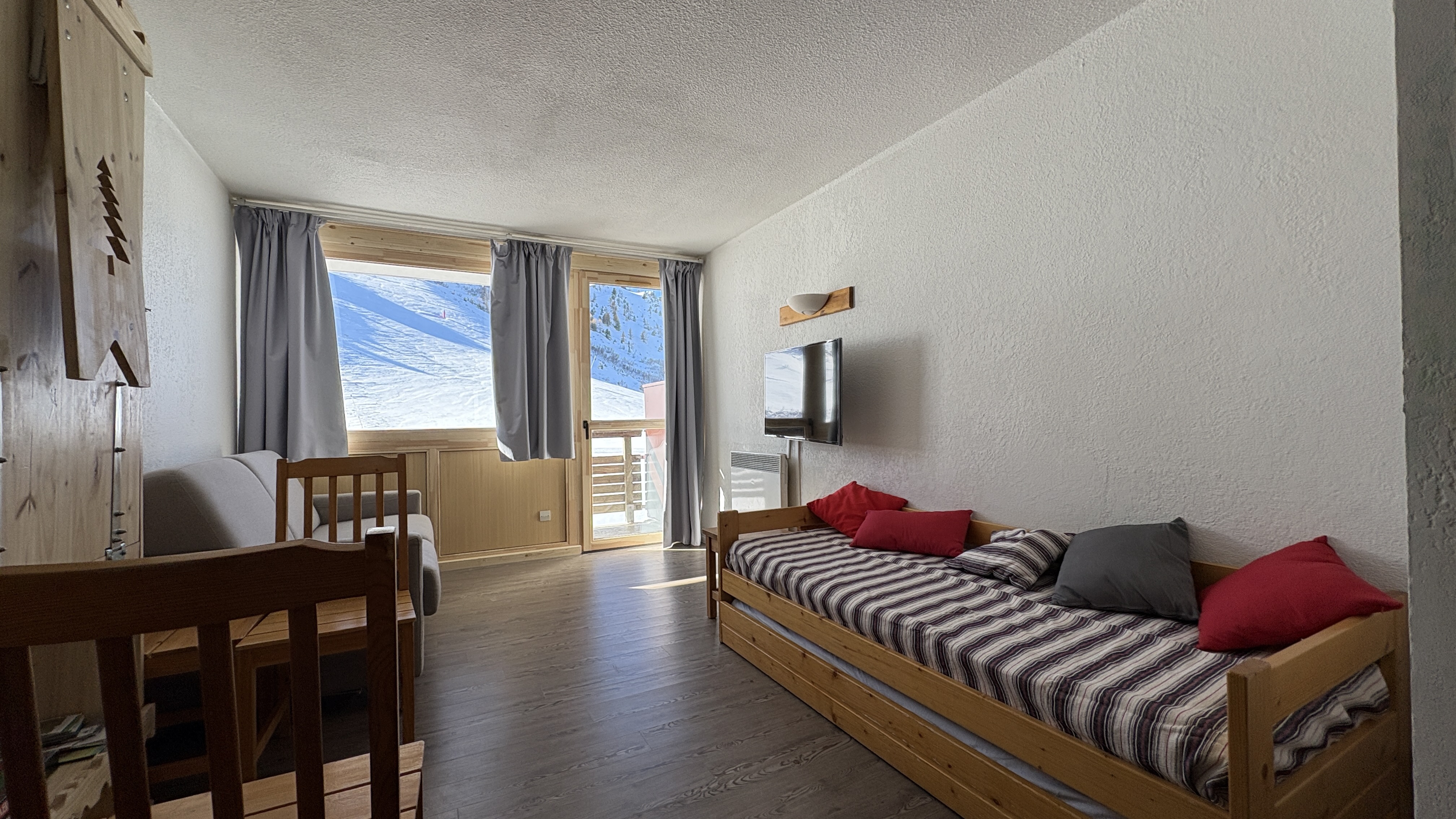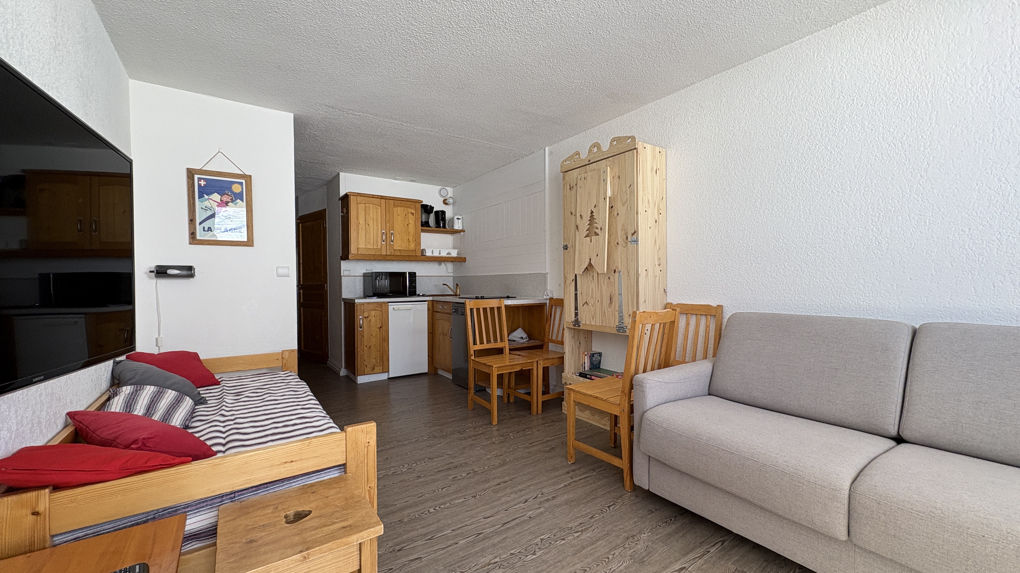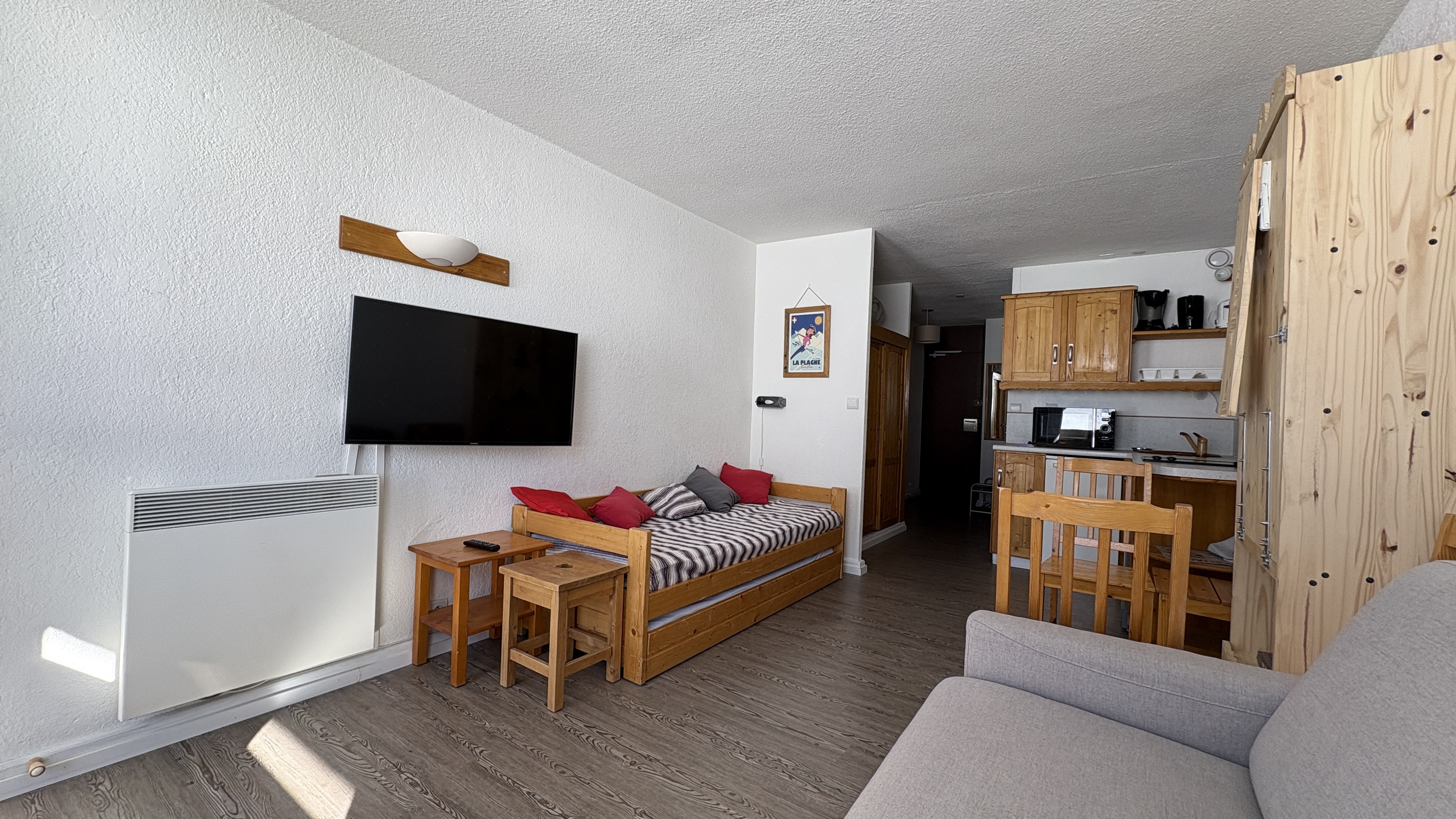 Immeuble situé au pied des pistes avec un départ direct vers 4 directions et stations différentes qui bénéficie d'une Galerie Commerciale intérieure avec tous ses commerces, loisirs et services à bord et qui est également reliée à la station de Plagne Centre par le Télémétro (6mns).